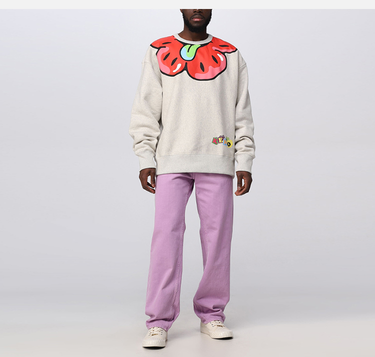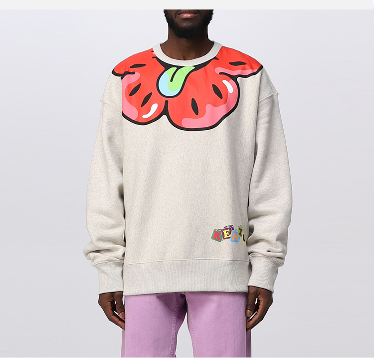 KENZO 高田贤三 男士棉质花朵徽标印花长袖卫衣 灰色 FD55 SW476 4MB 93