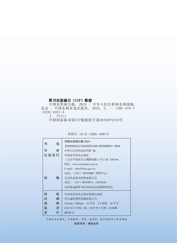 主要内容包括:综述,综合介绍我国2024年水情,包括降水量、地表水、地下水、供水量、用水量等数据;水资源量,详细介绍全国各地的水资源量,包括地表水、地下水;蓄水动态,详细介绍我国2024年水资源蓄积状况,包括湖泊水和水库水;水资源开发利用,详细介绍我国2024年水资源开发利用情况,包括用水量和供水量;水体水质,详细介绍我国2024年水污染及防治情况;重要水事,详细介绍我国2023年发生的重大水利事项。