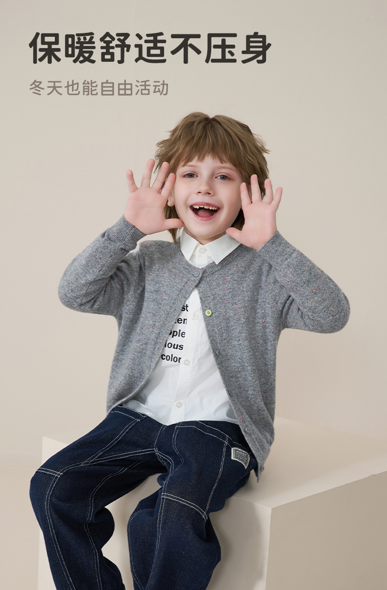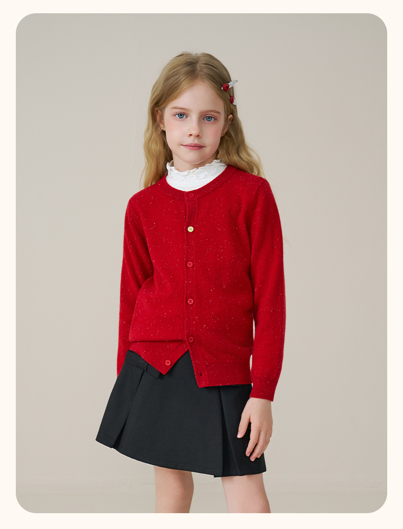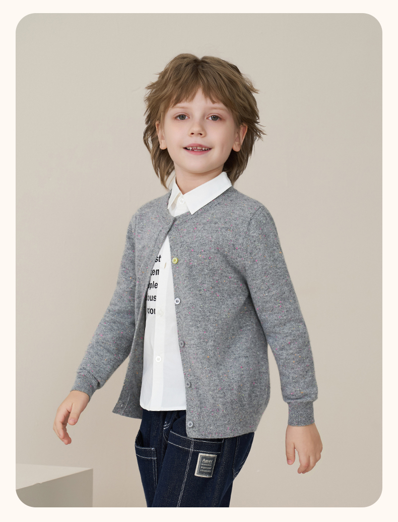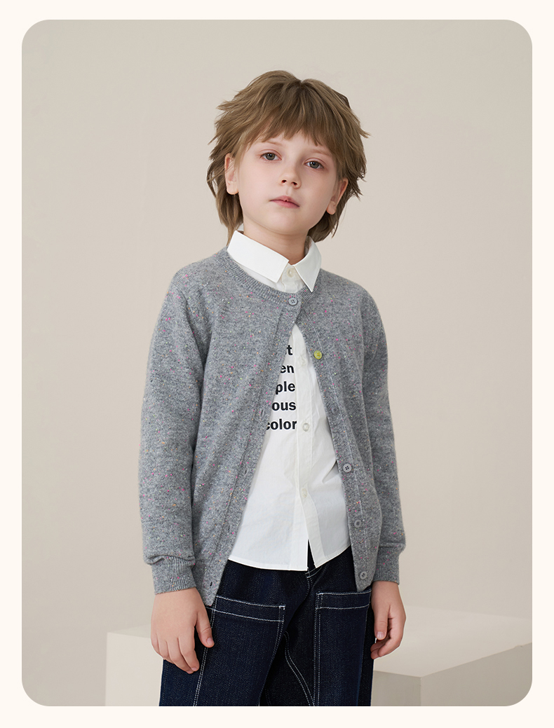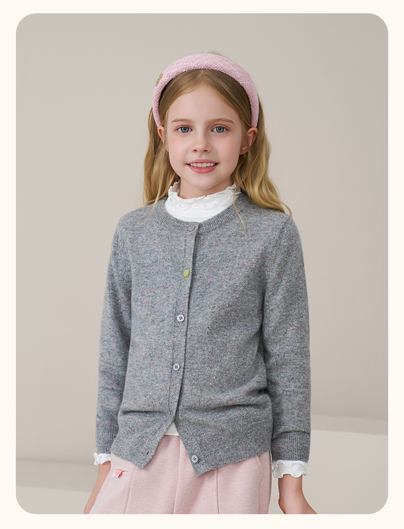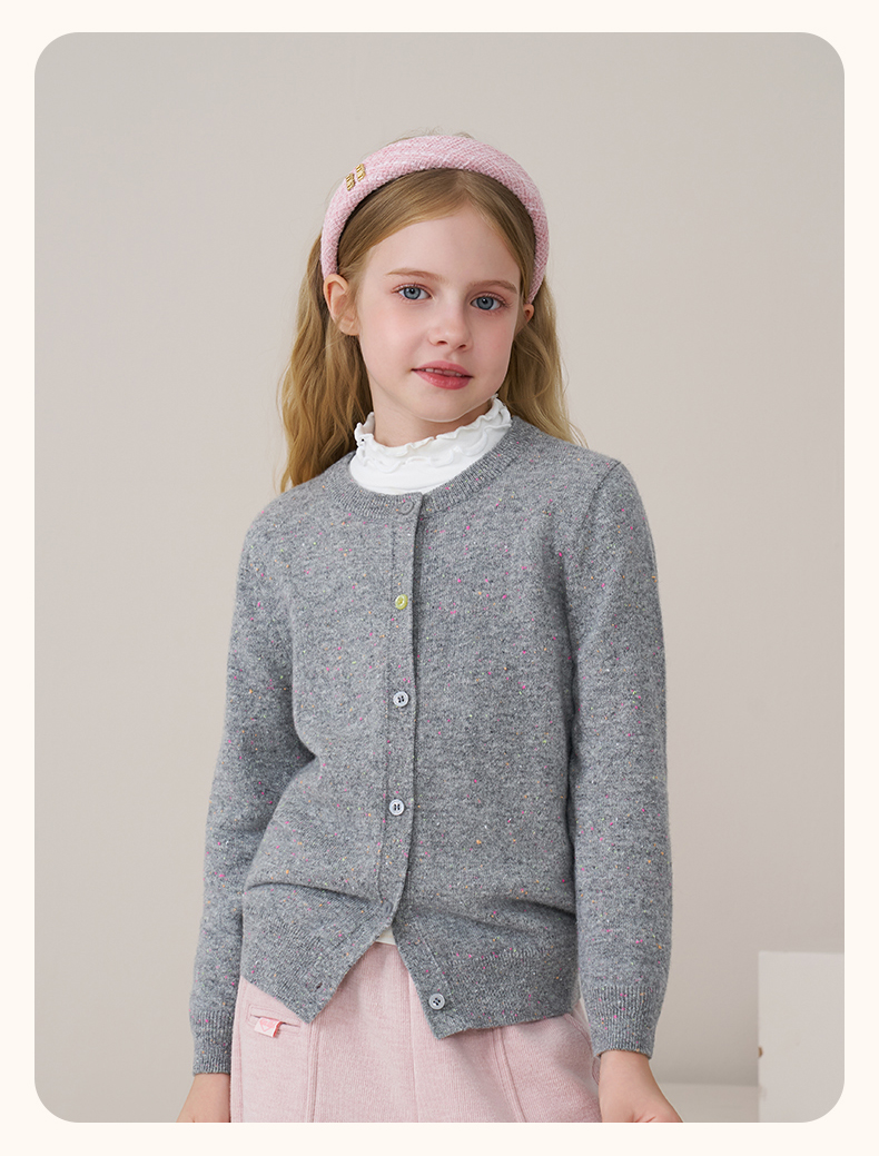 mettekids儿童100%羊绒衫2025秋冬女童彩色点子纱开衫男童毛衣