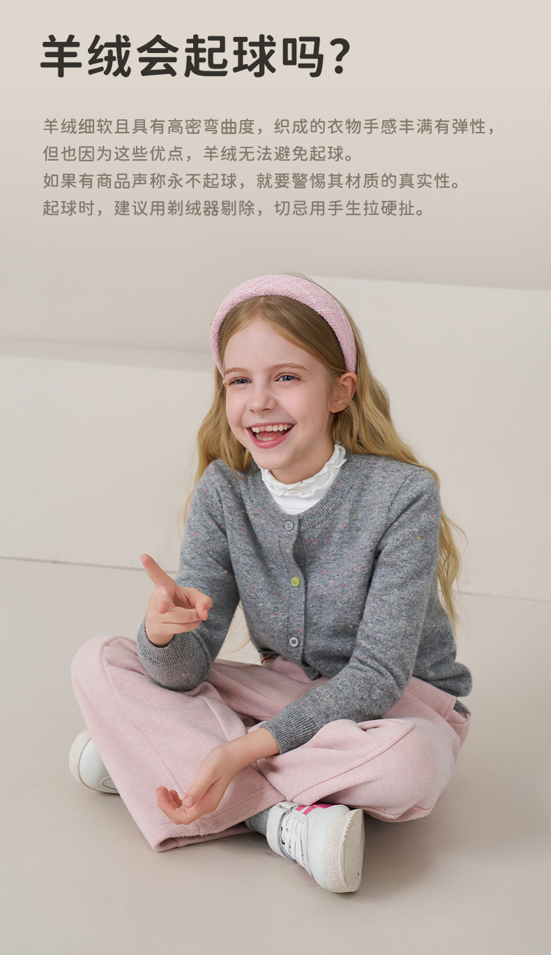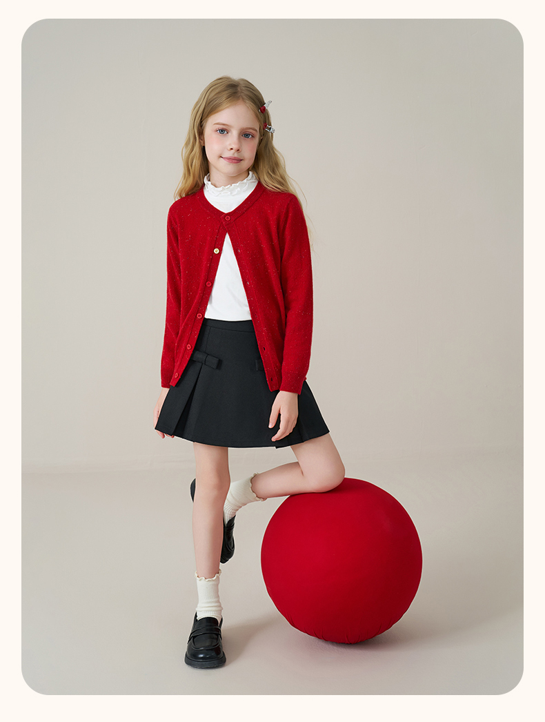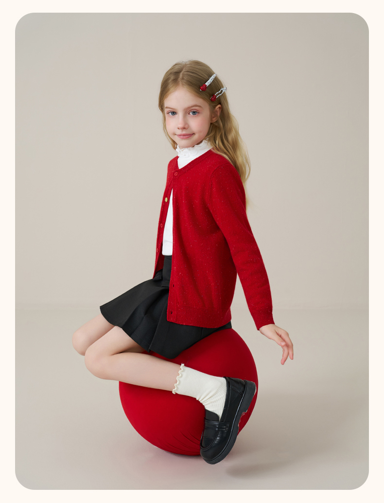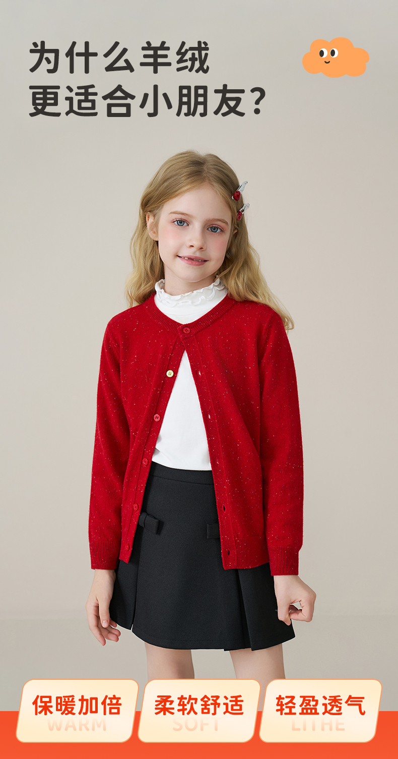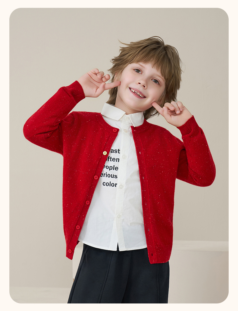 mettekids儿童100%羊绒衫2025秋冬女童彩色点子纱开衫男童毛衣