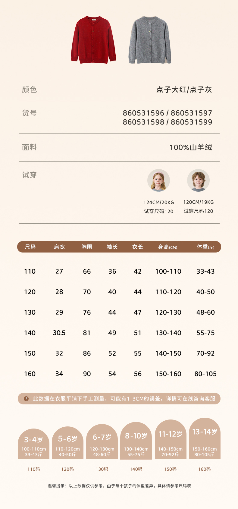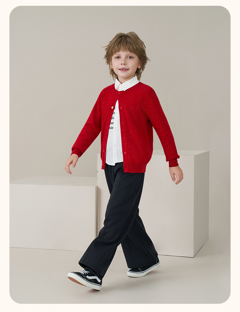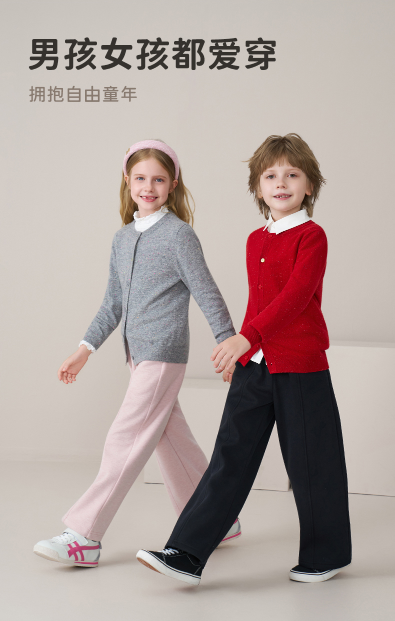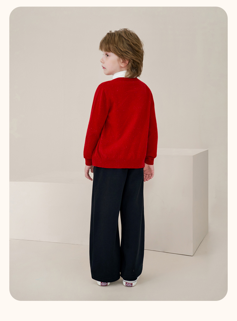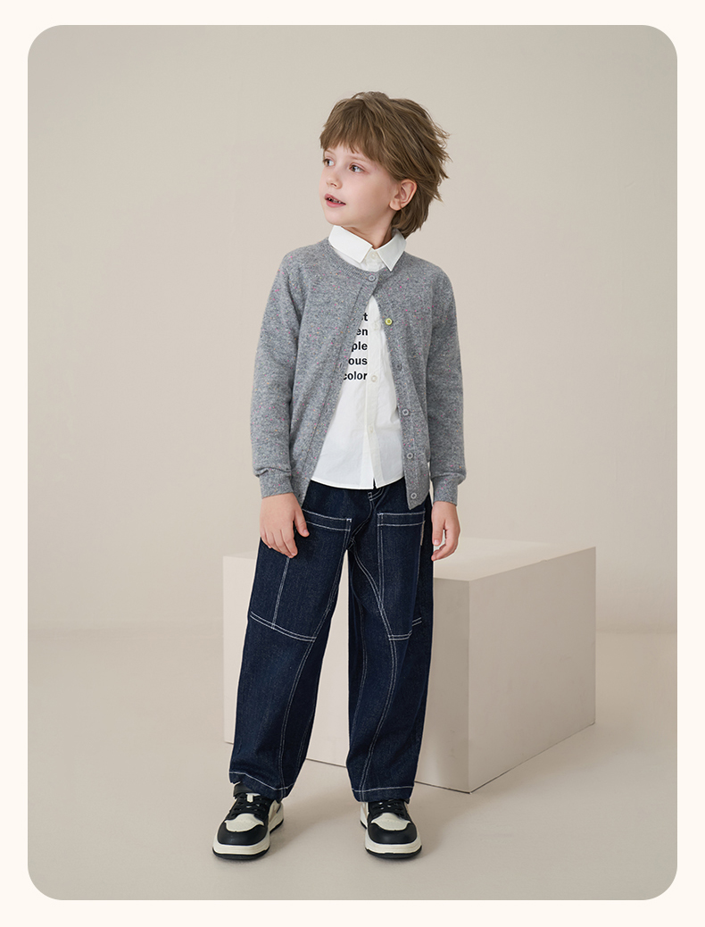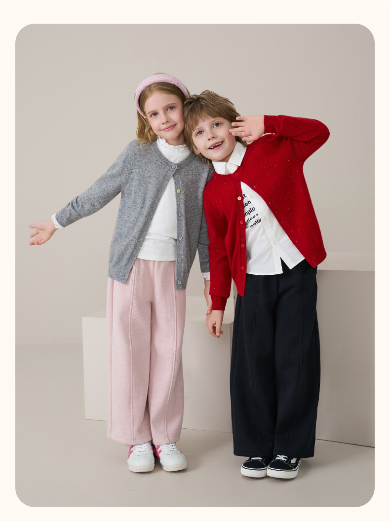 mettekids儿童100%羊绒衫2025秋冬女童彩色点子纱开衫男童毛衣