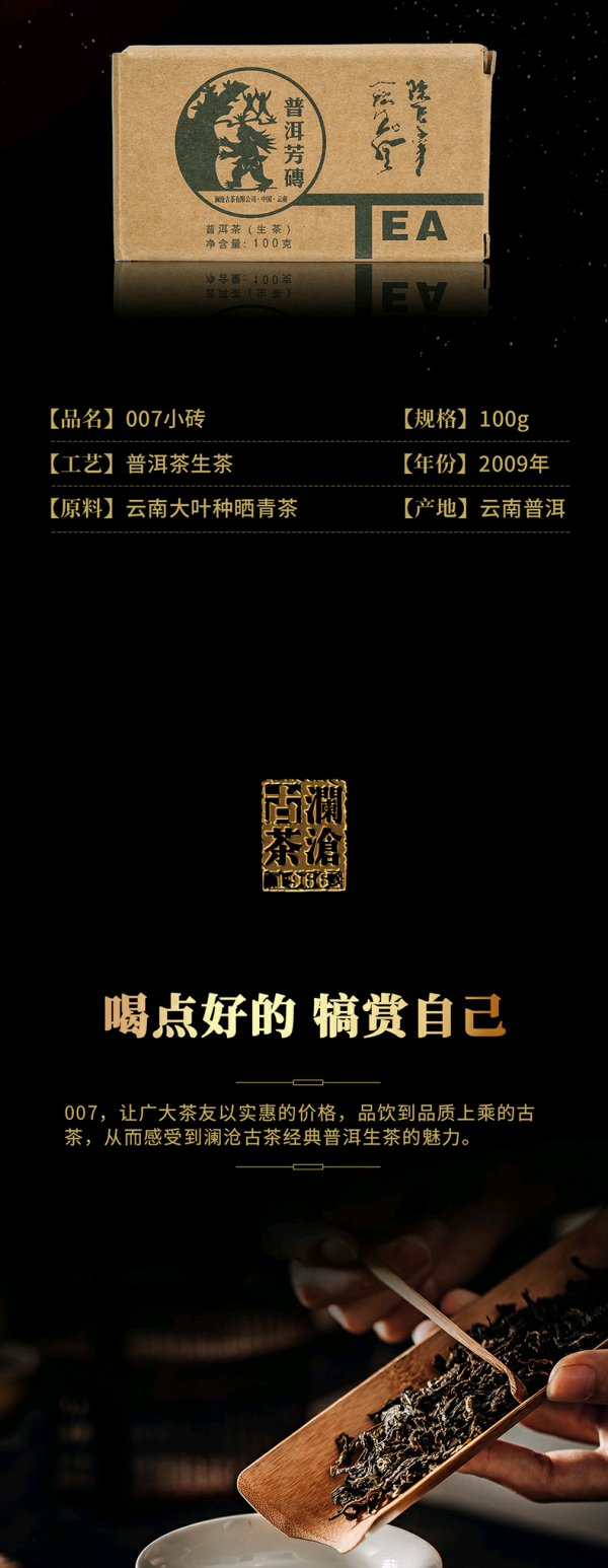 【815开仓】澜沧古茶2009年007小砖普洱茶生茶云南砖茶古树老树100g