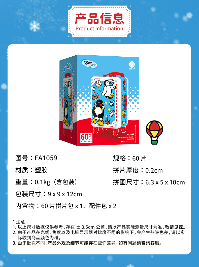60片 FA1059 Pingu系列行李箱拼图 兄妹旅行团