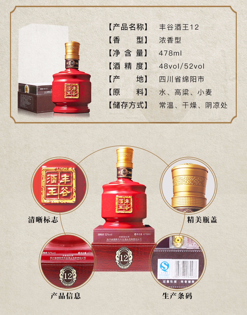 丰谷酒王经典酒 浓香型 白酒52度500ml