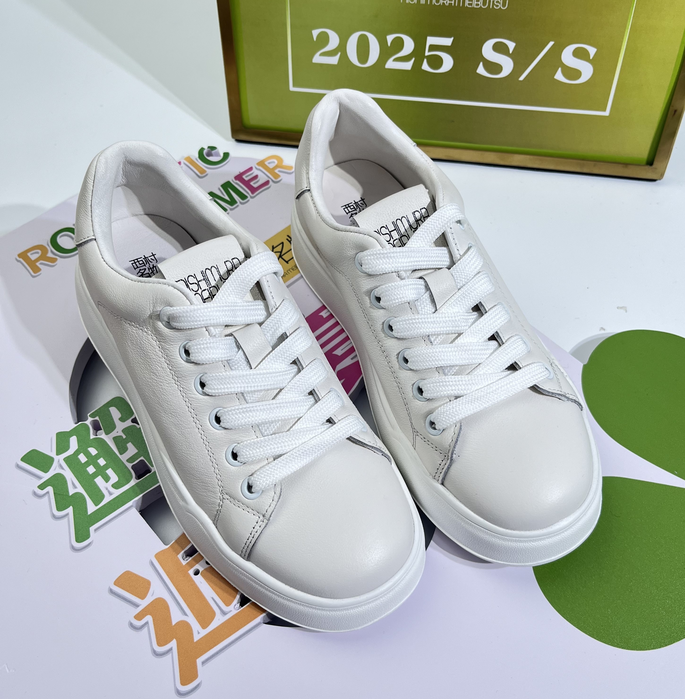 西村名物2025年春季新款超轻舒适软底系带休闲鞋运动鞋小白鞋T25CM38941