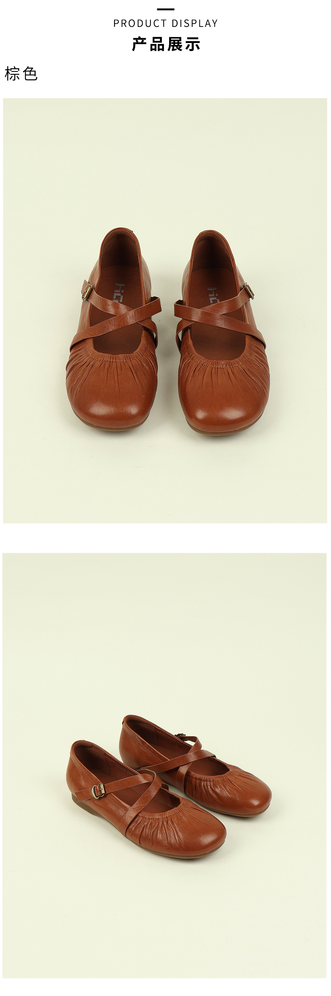 和诚行2026春季新款打蜡羊皮复古平底芭蕾舞玛丽珍浅口休闲鞋1930120