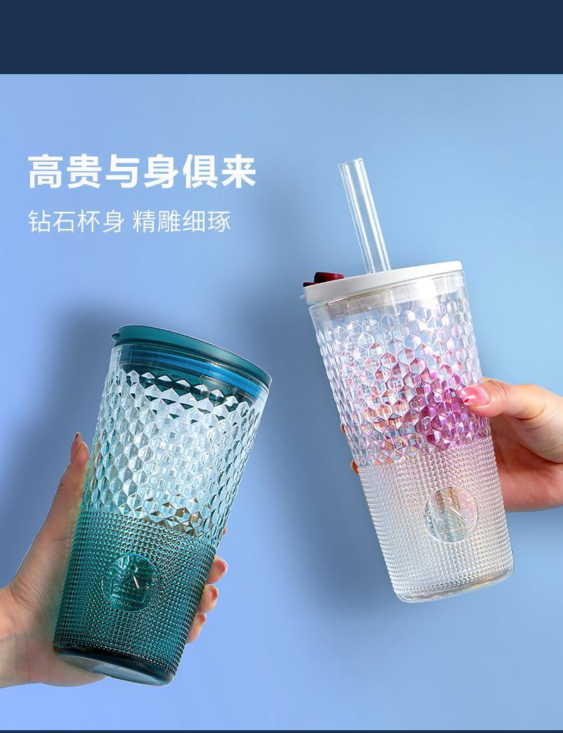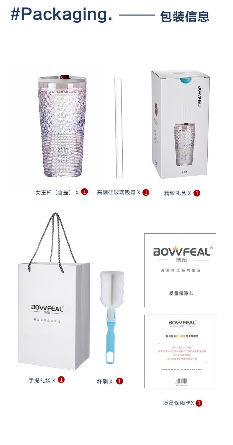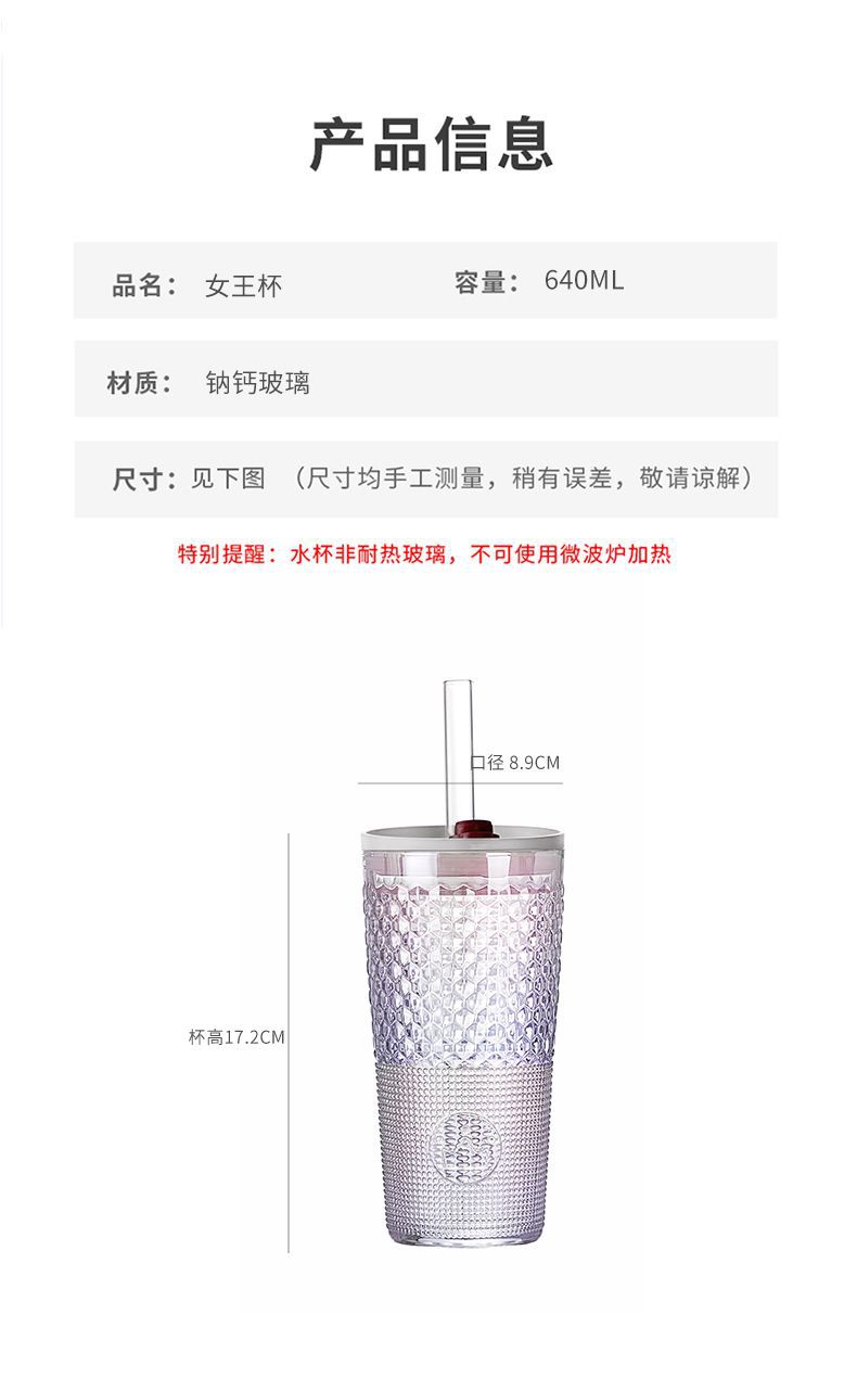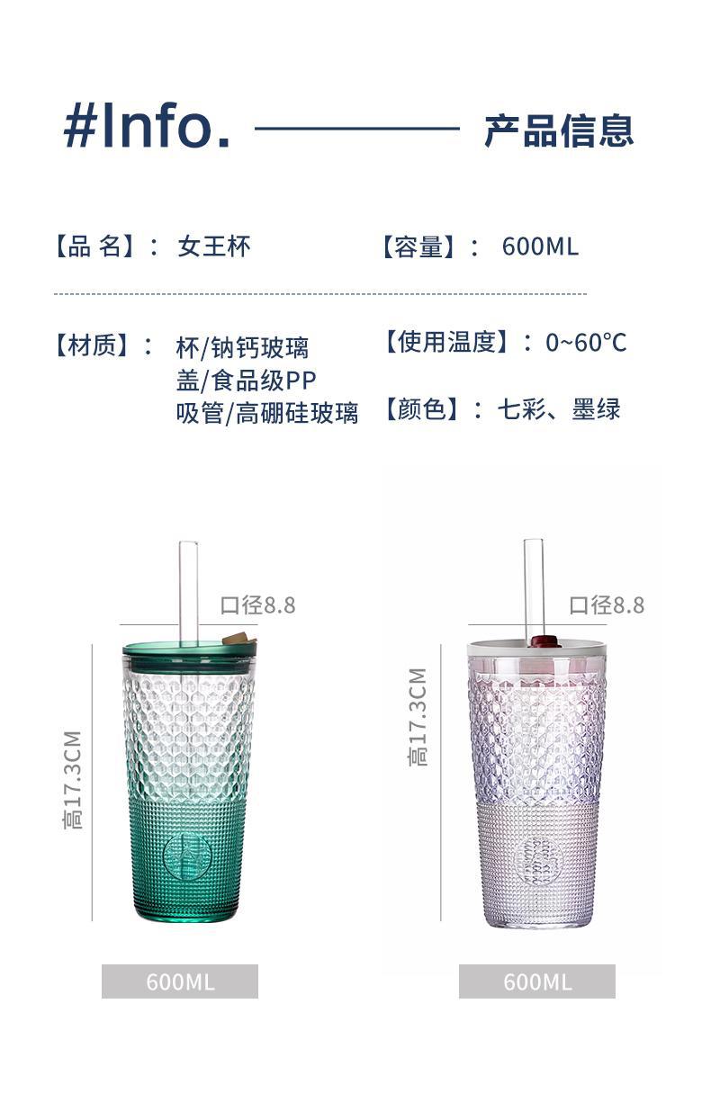 高颜值女王杯礼盒装玻璃吸管杯ins风家用杯子加厚大容量喝水杯子冷饮杯