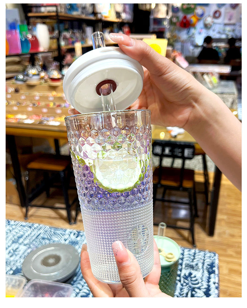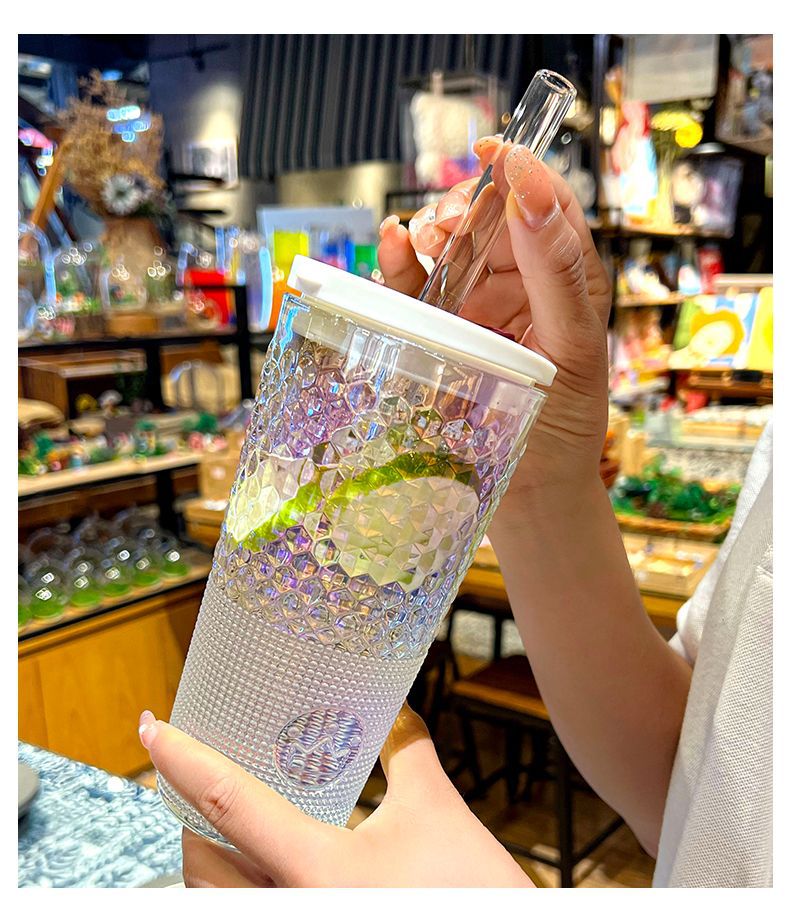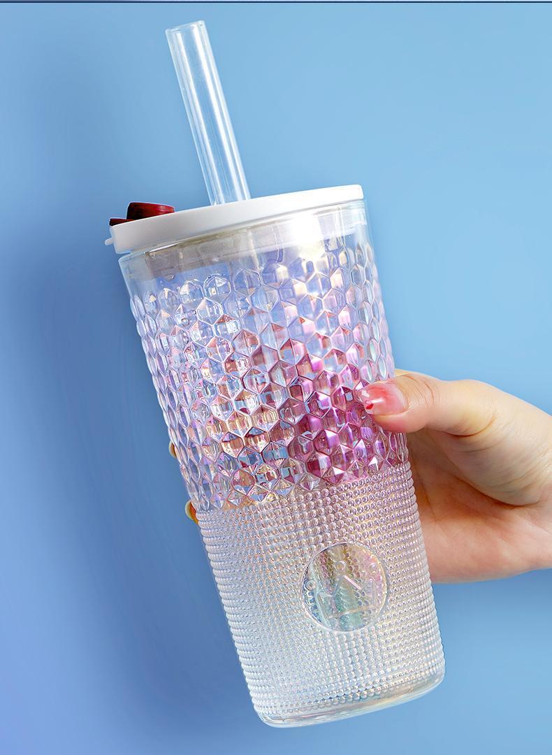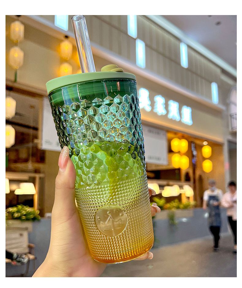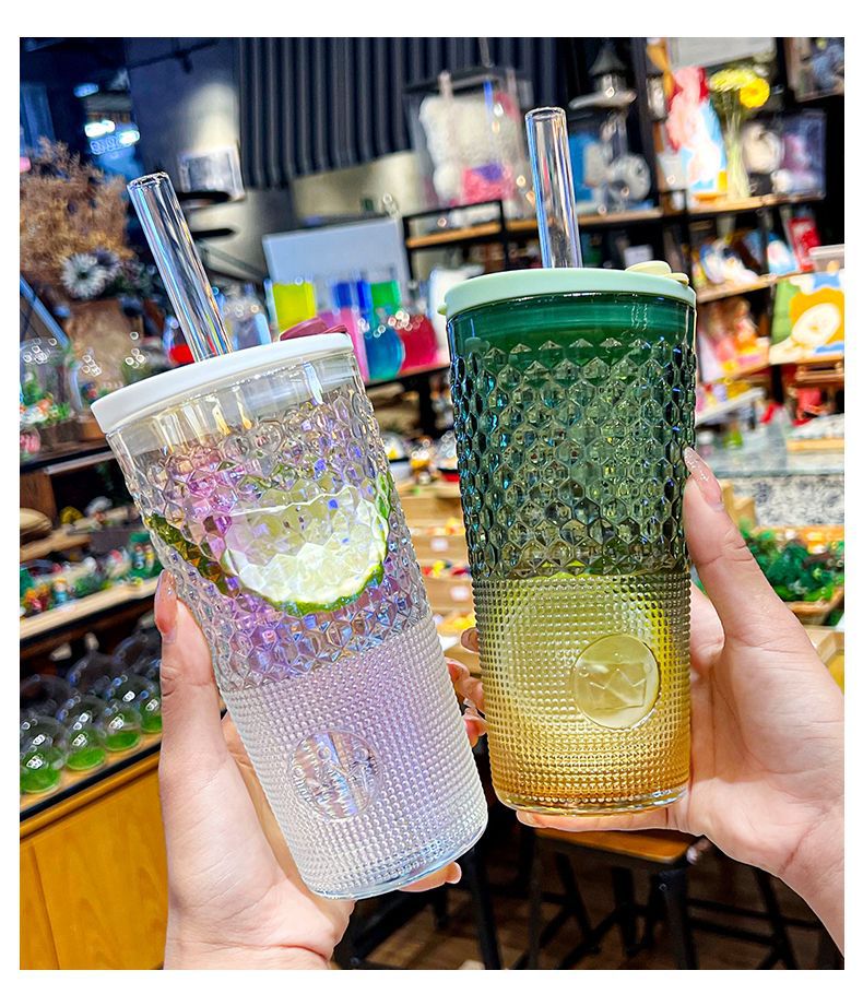 高颜值女王杯礼盒装玻璃吸管杯ins风家用杯子加厚大容量喝水杯子冷饮杯