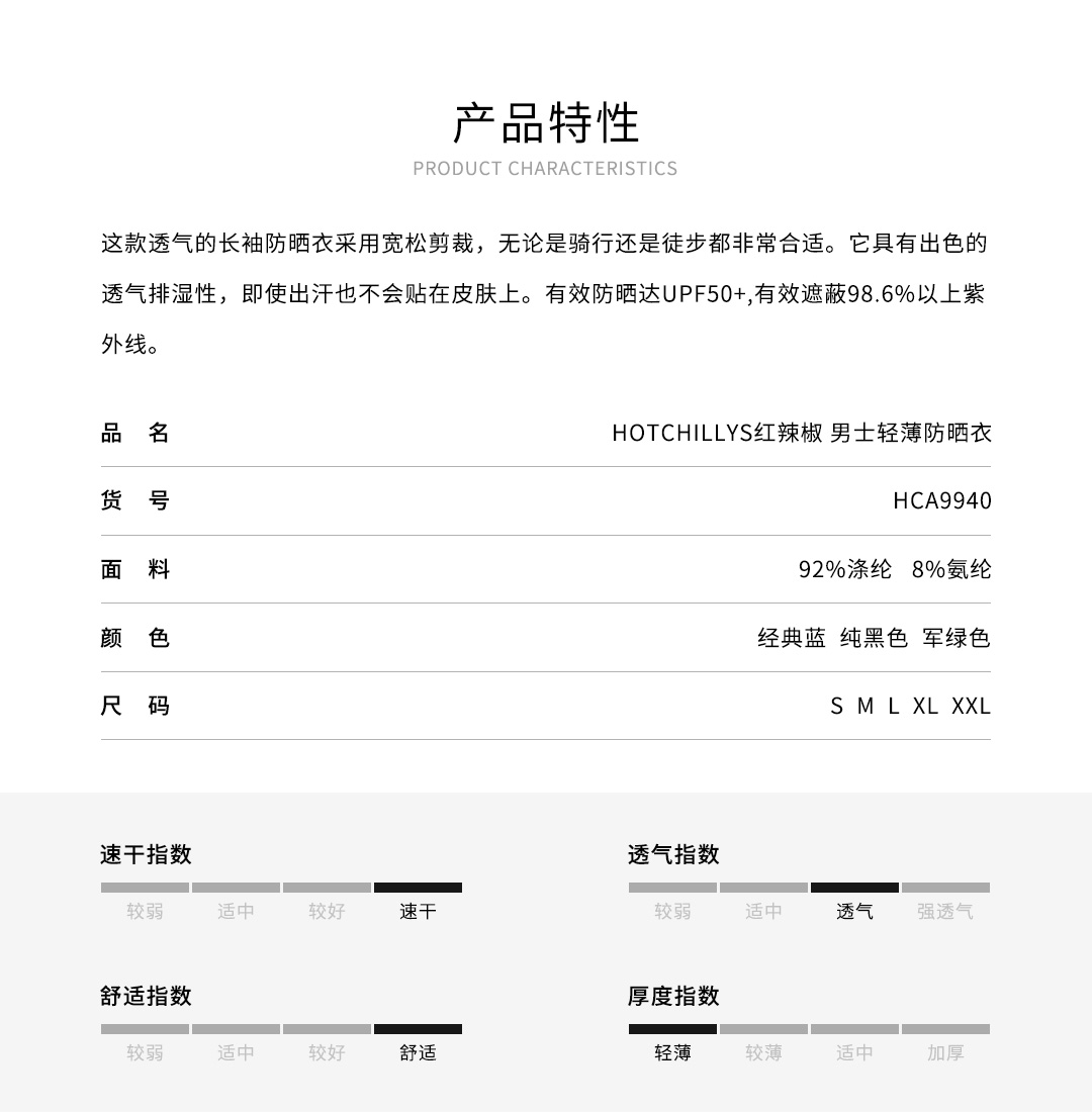 【99秒杀】HOTCHILLYS热椒男士防晒服户外登山徒步旅游春夏新款透气防晒衣9940