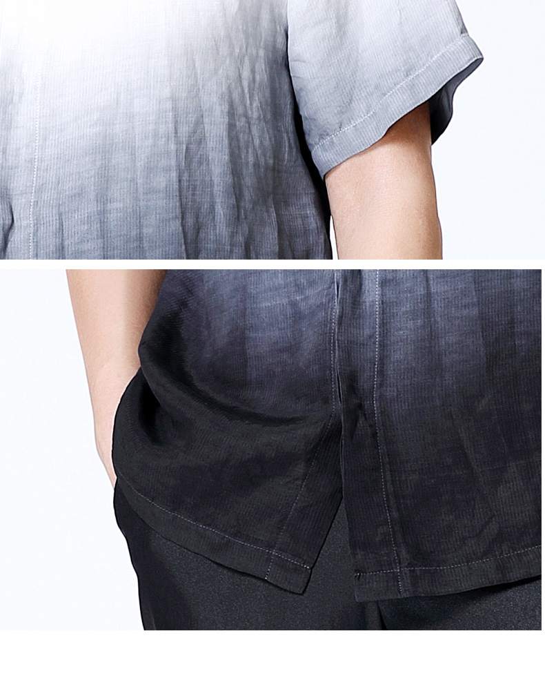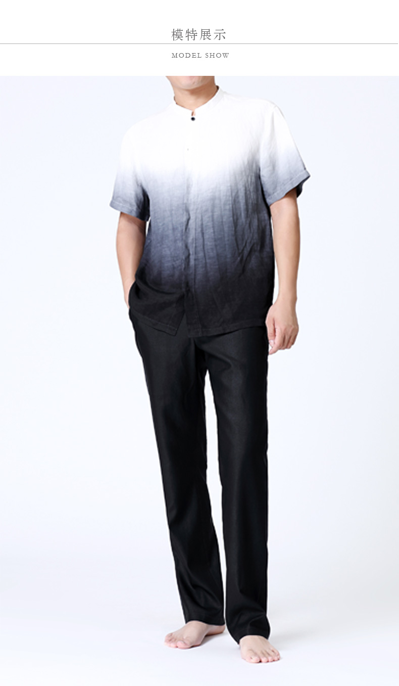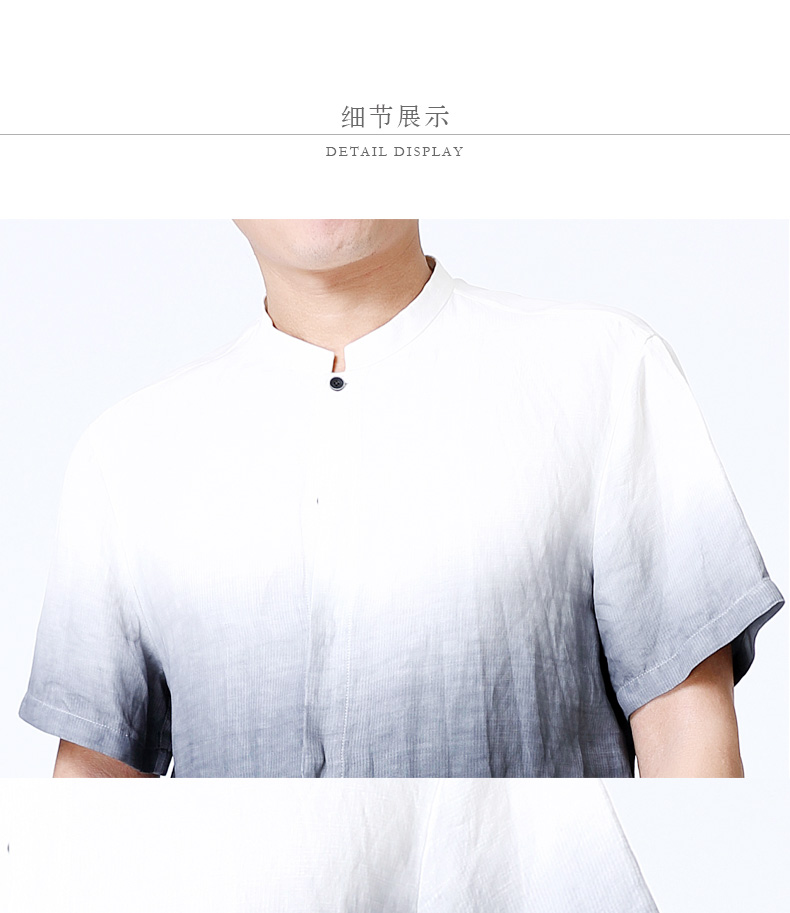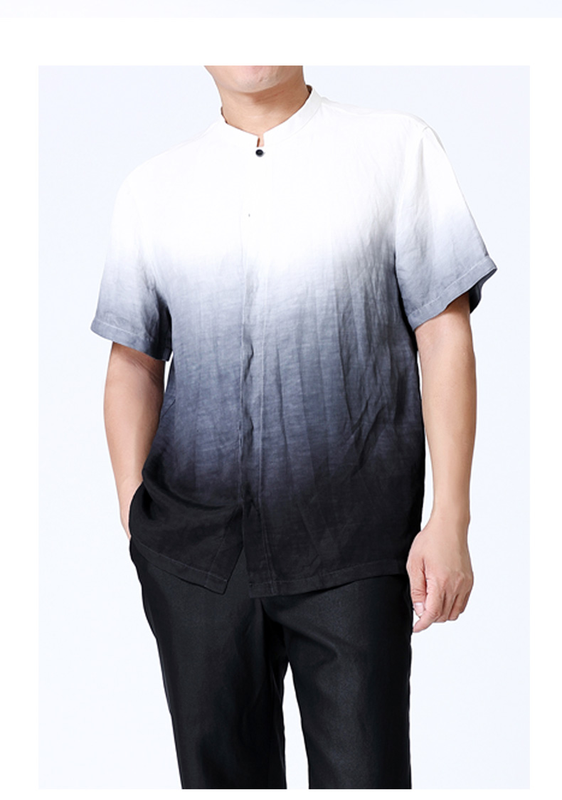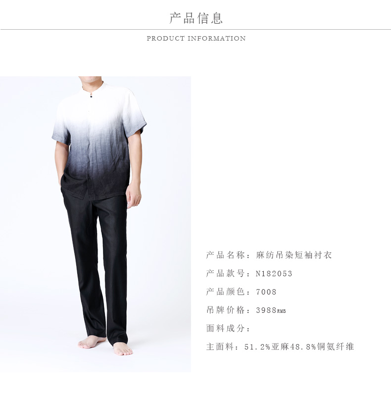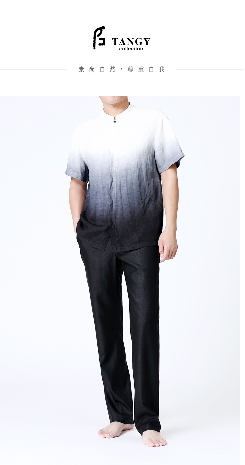 TANGY Collection/天意精品夏季新品听月系列男士麻纺吊染短袖衬衫