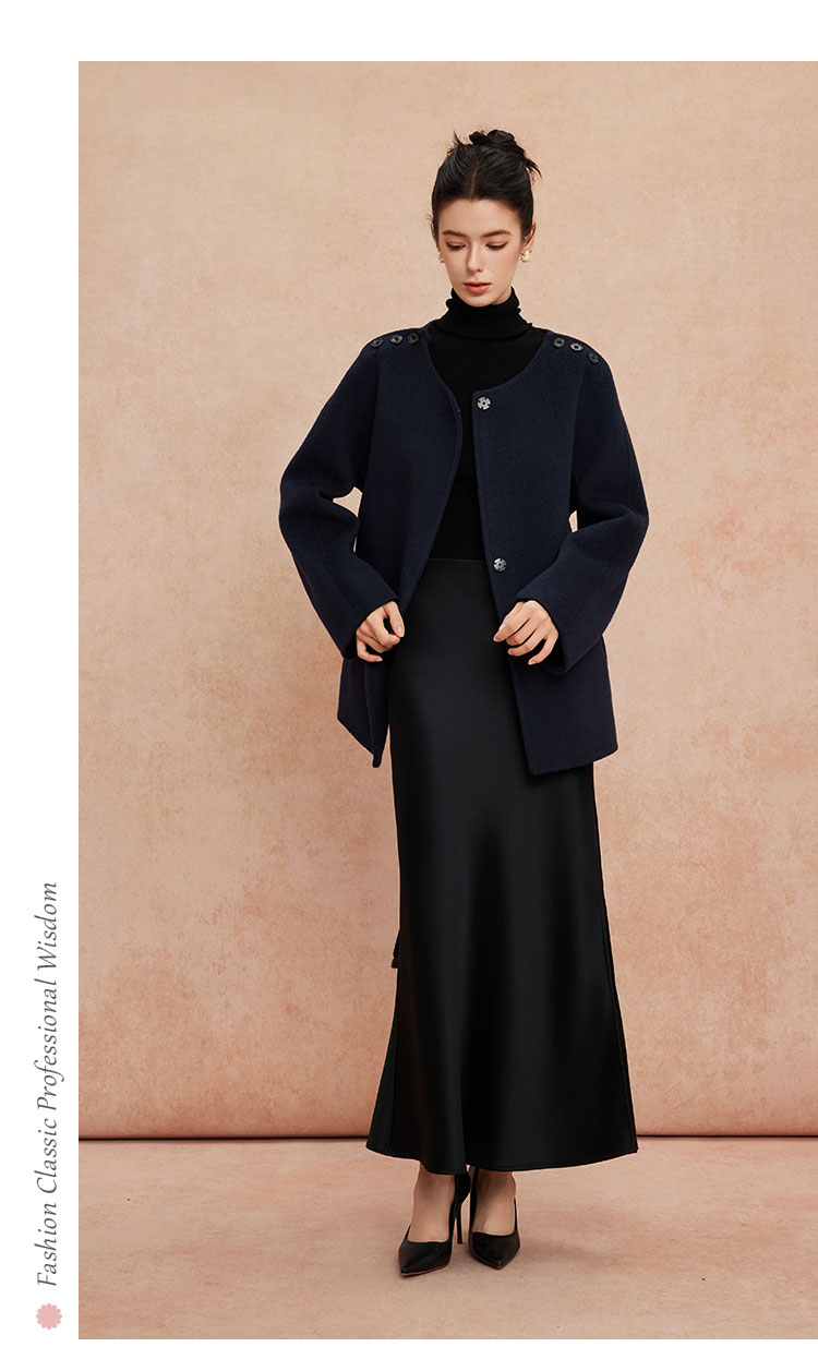QH959斯尔丽25新款高质韩系肩部显精神显瘦利落手工双面一手长大衣