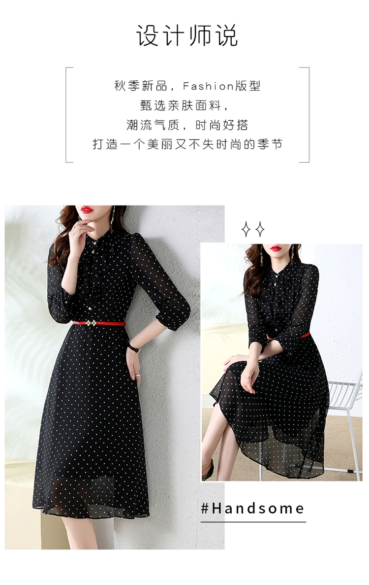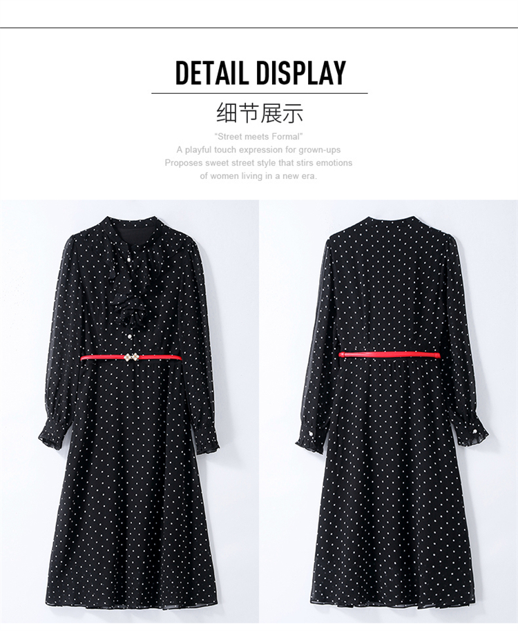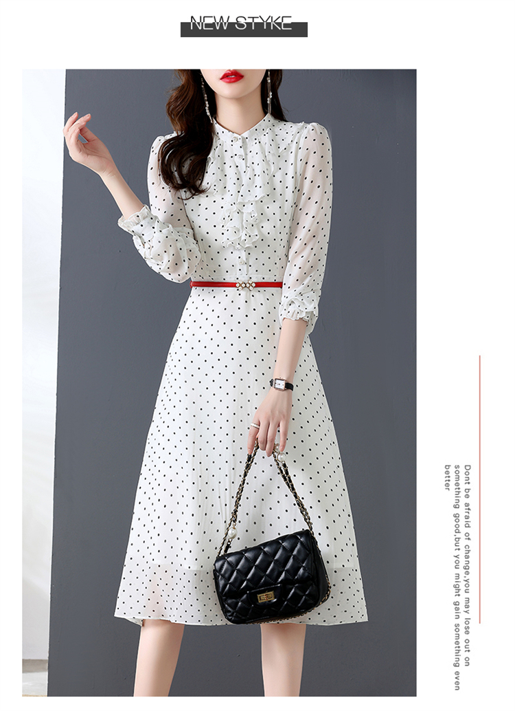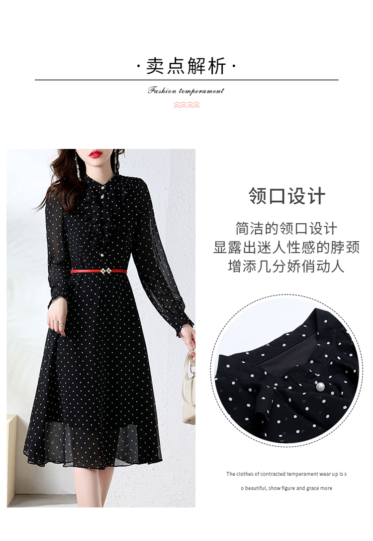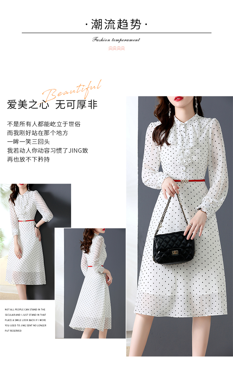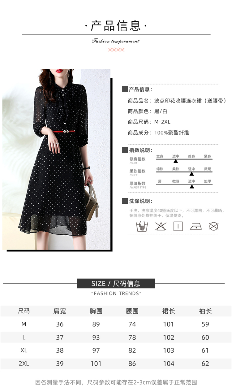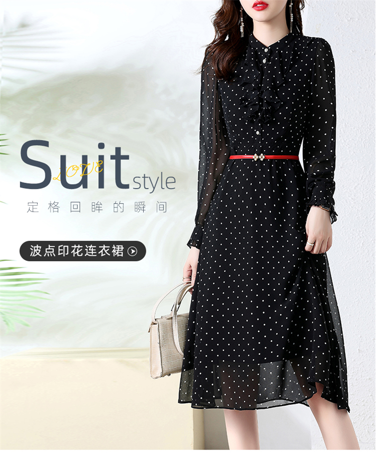 秋装新款,法式波点印花收腰连衣裙送腰带HR-CPYY22025