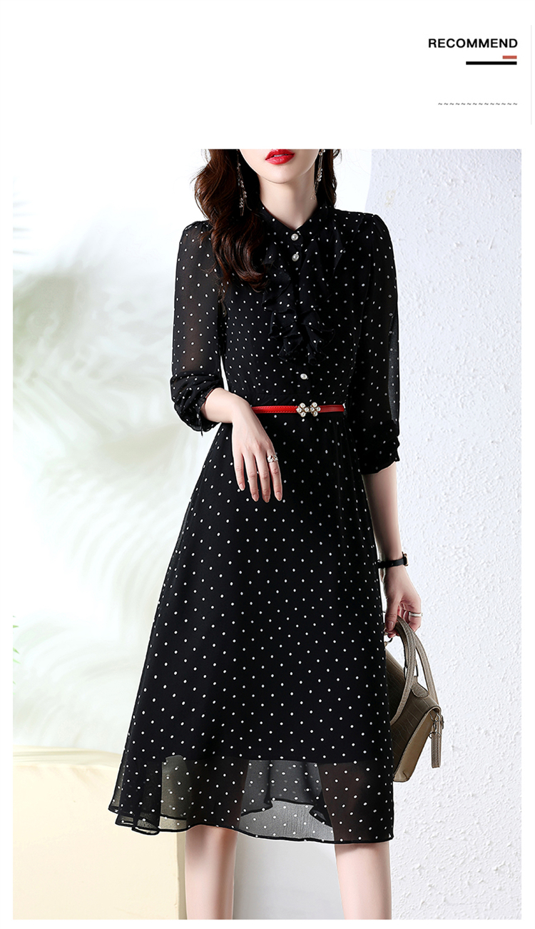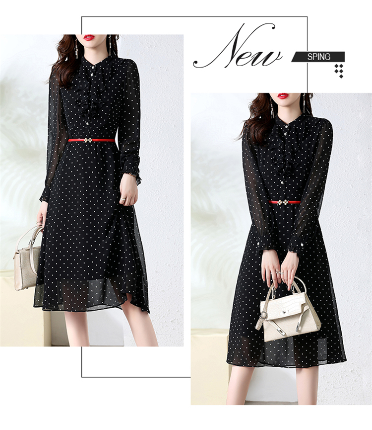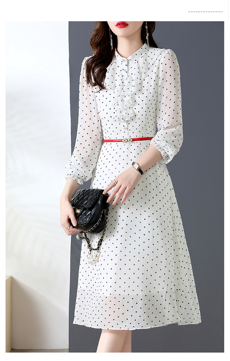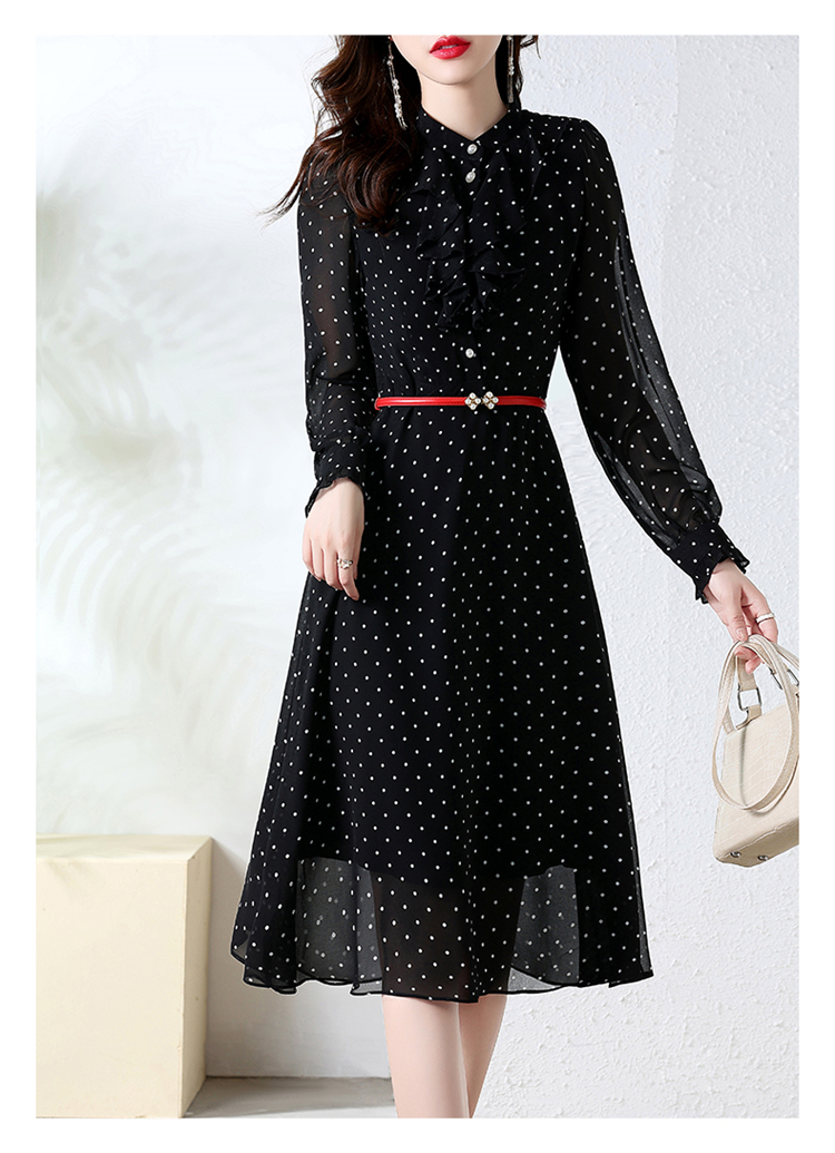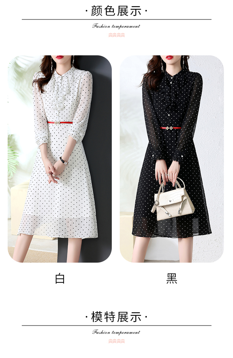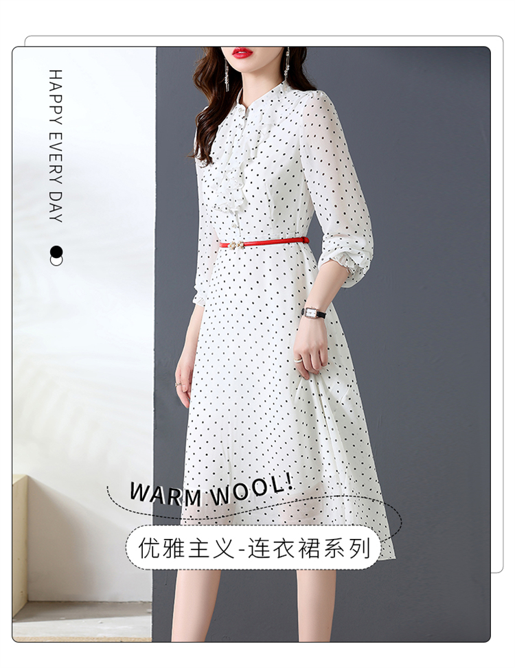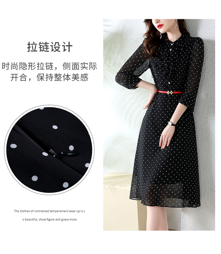 秋装新款,法式波点印花收腰连衣裙送腰带HR-CPYY22025