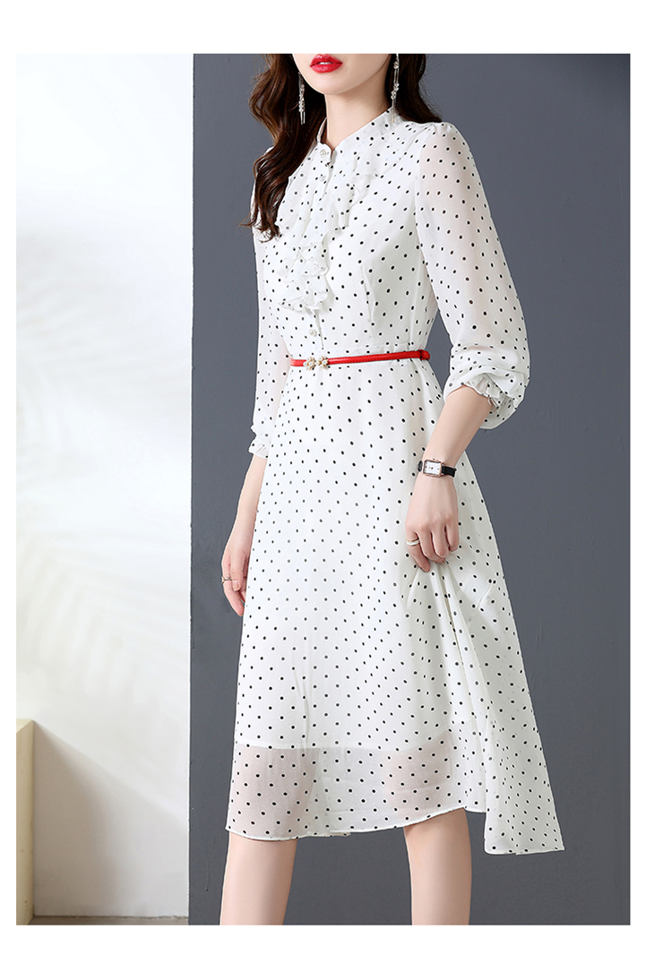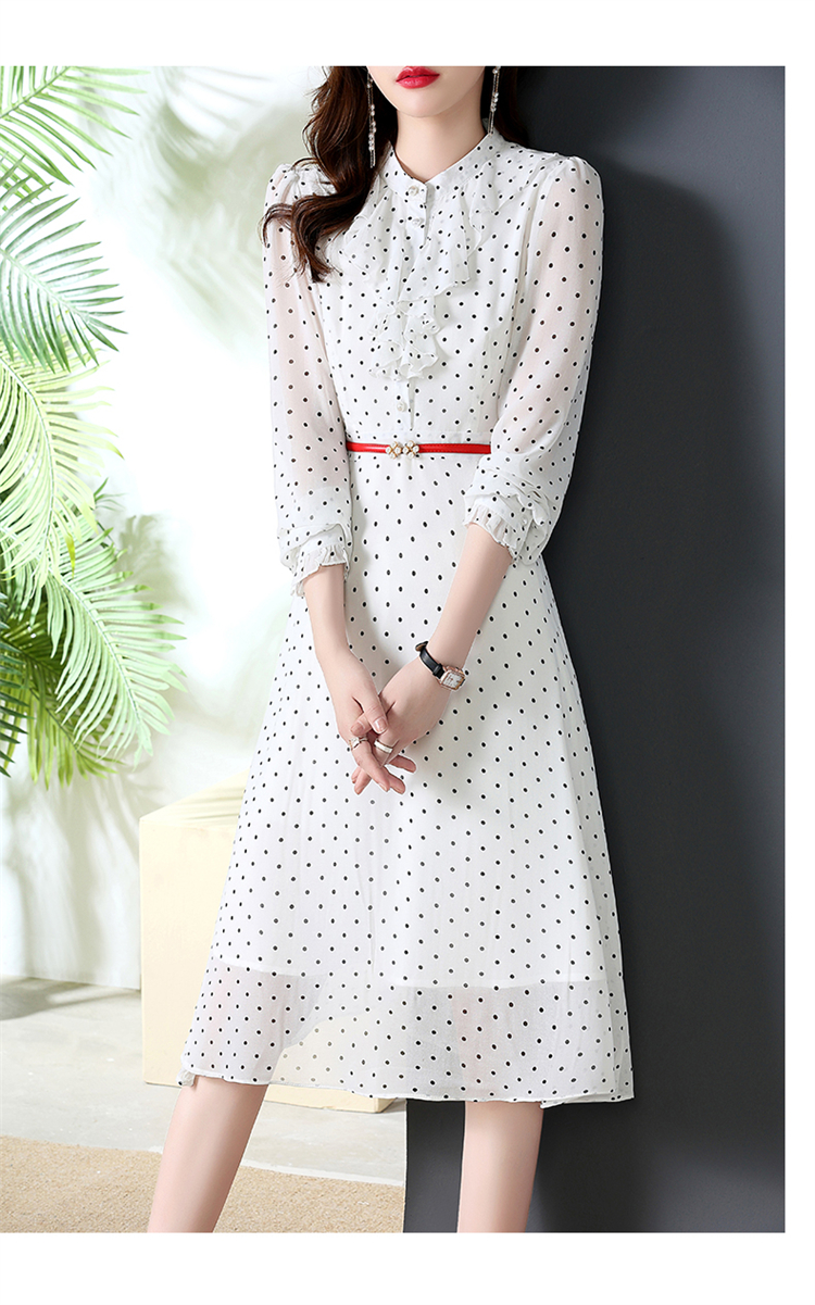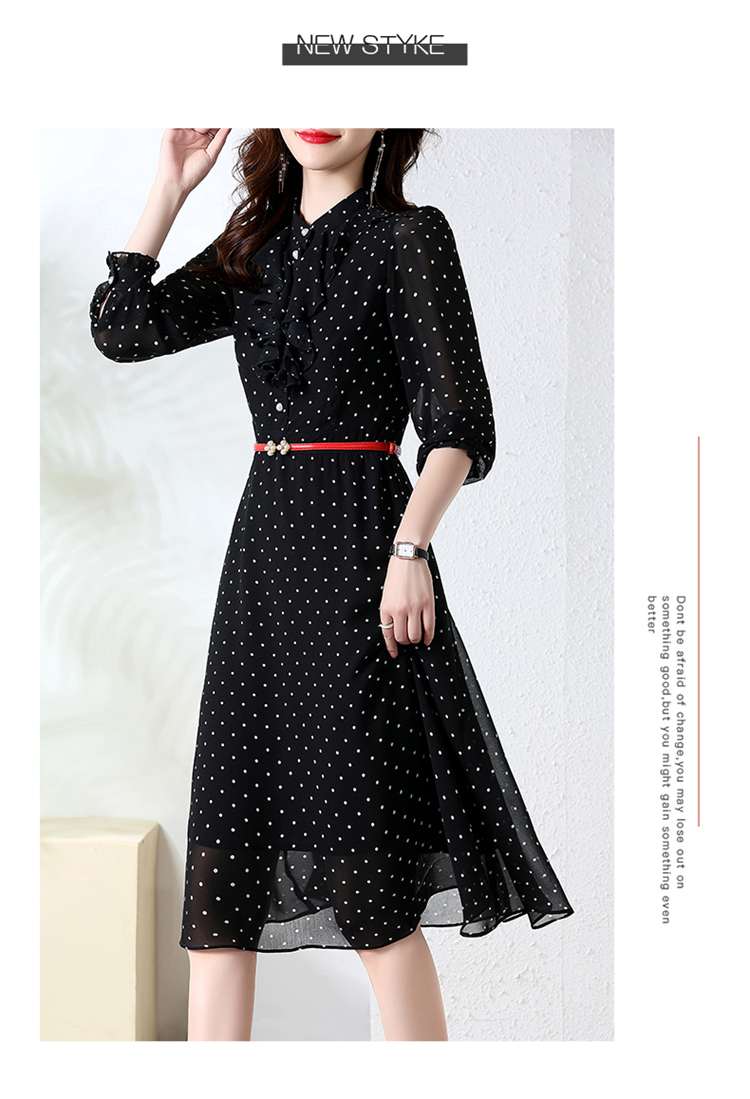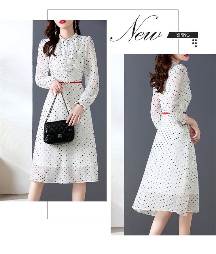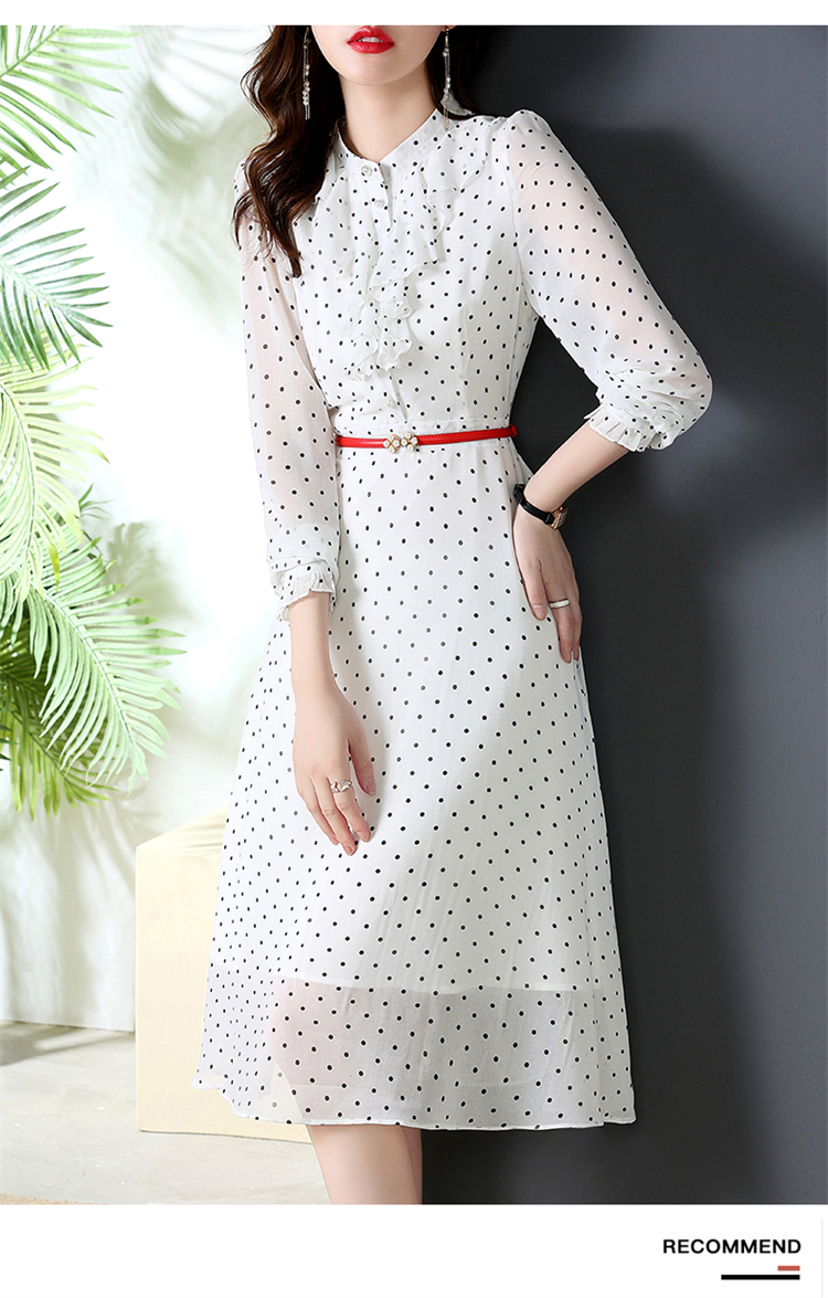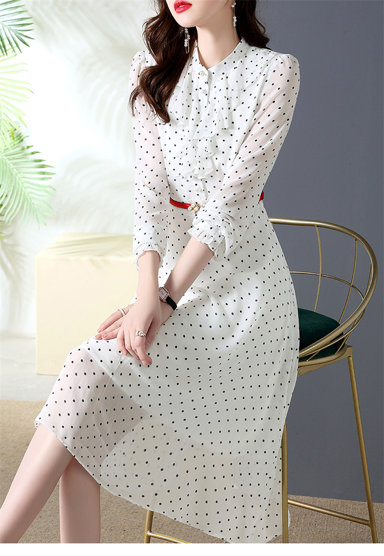 秋装新款,法式波点印花收腰连衣裙送腰带HR-CPYY22025