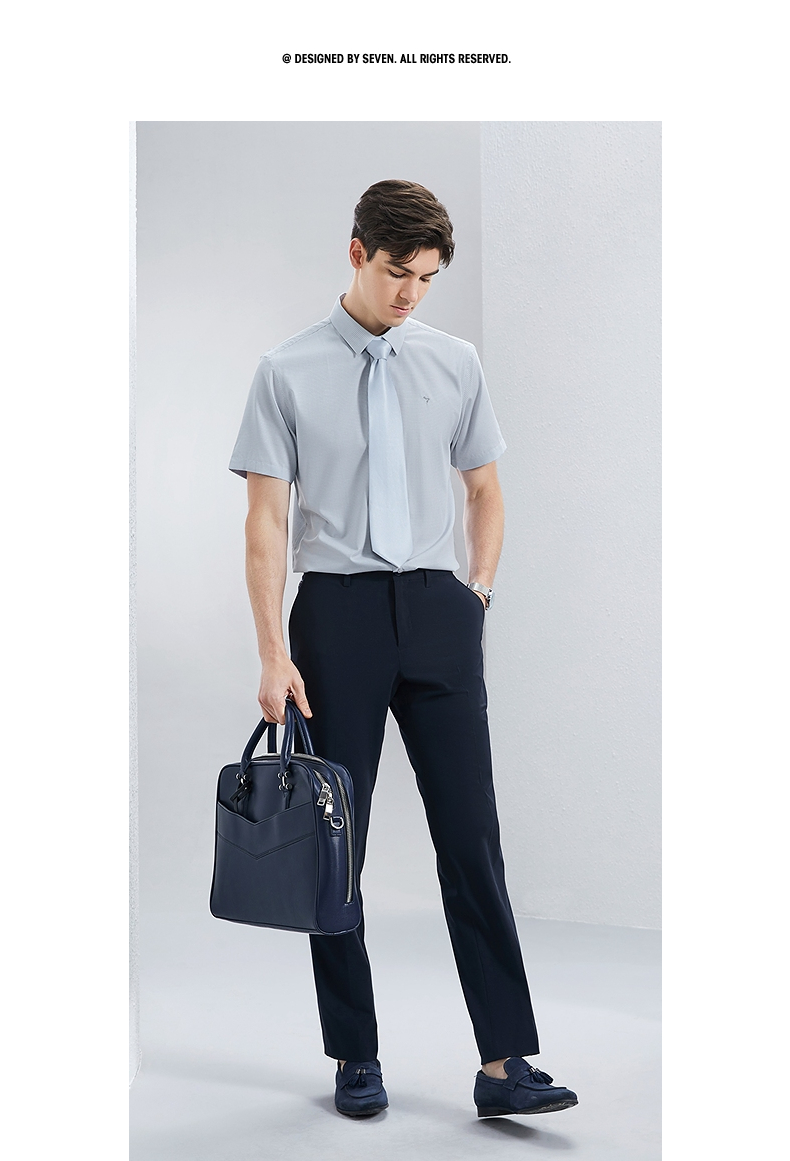 【竹纤维】柒牌男装短袖衬衫男2024夏季新款商务百搭透气翻领衬衣 126A70250