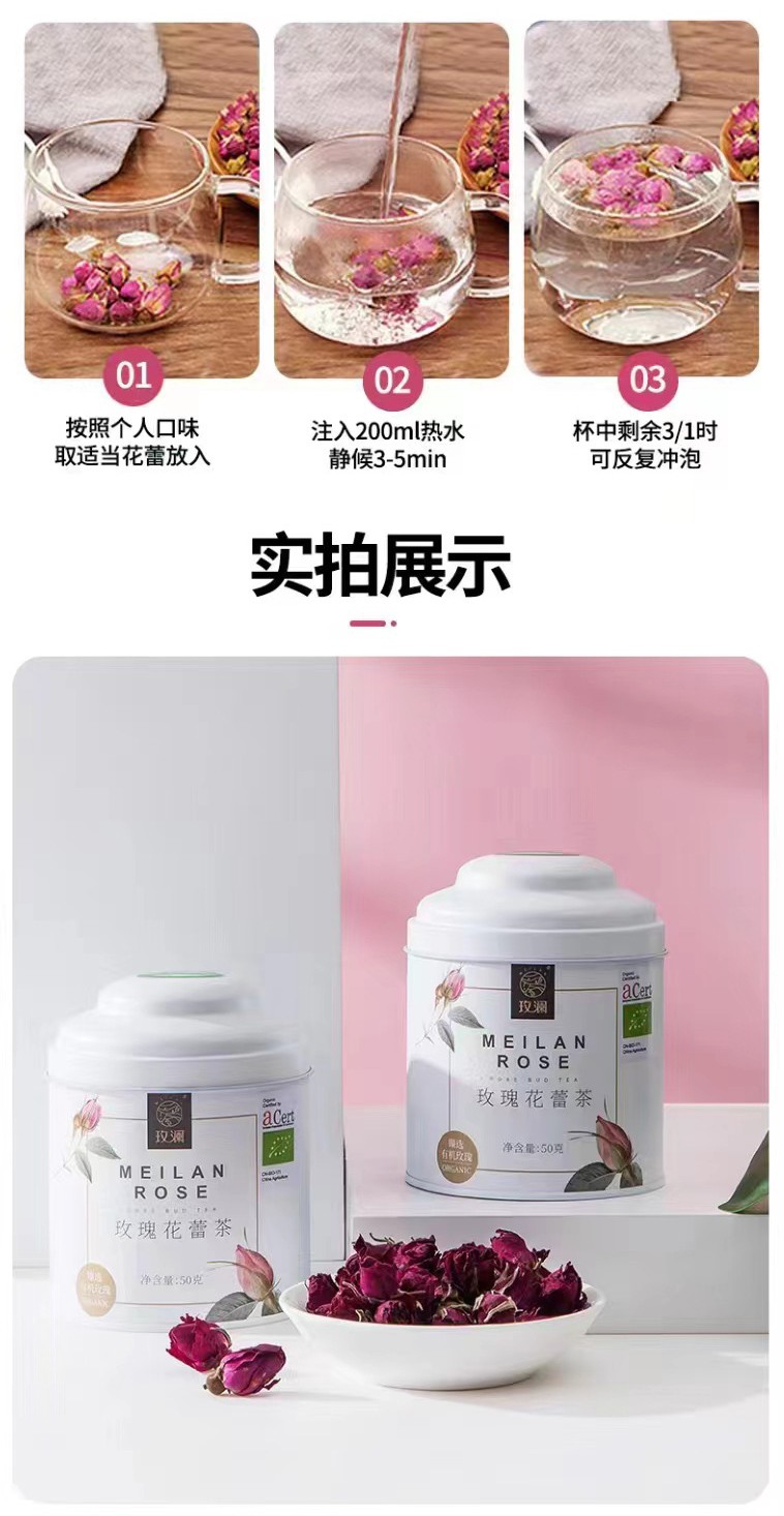 玫澜罐装有机玫瑰花蕾茶 52g/罐