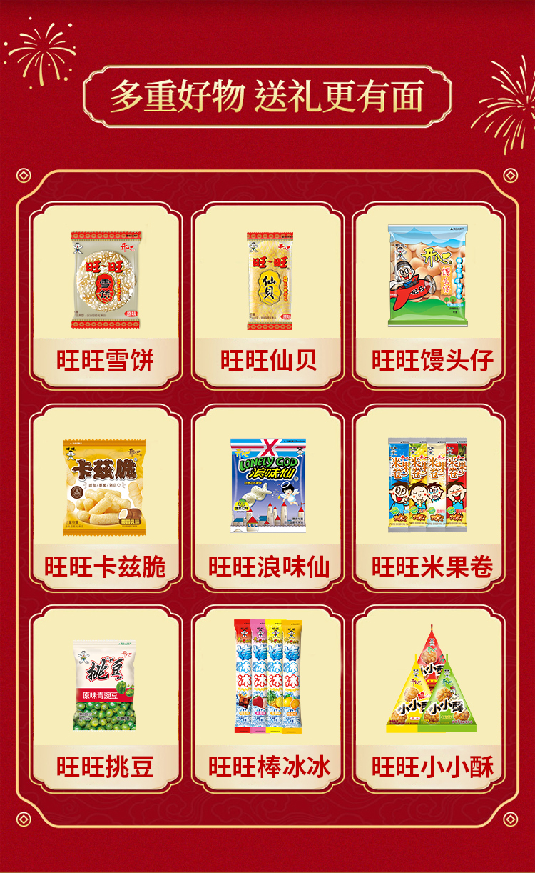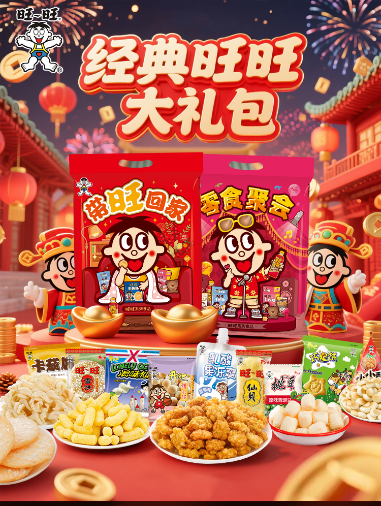 「旺旺大礼包 礼旺情更旺」年货送礼必备!旺旺年味礼包/礼盒 旺旺雪饼仙贝小小酥浪味仙卡兹脆小馒头