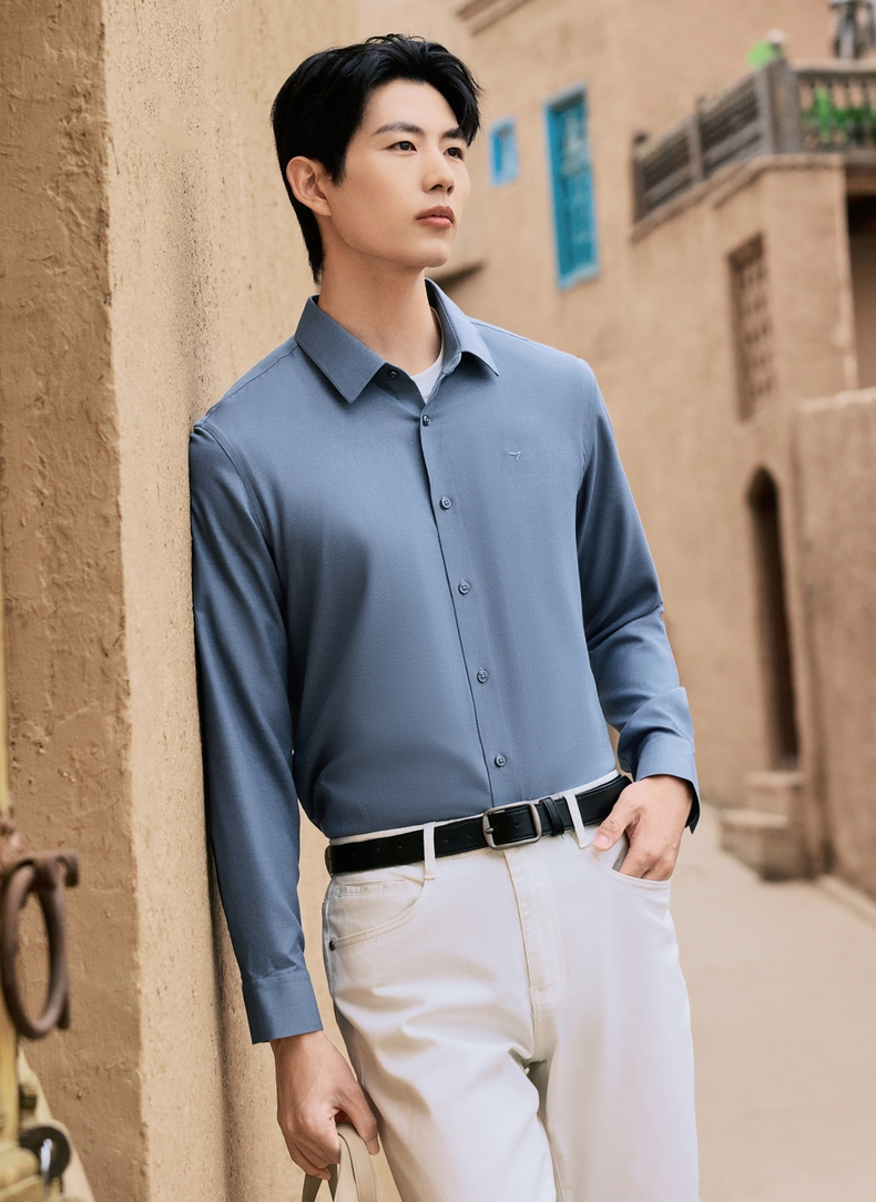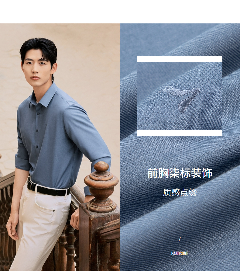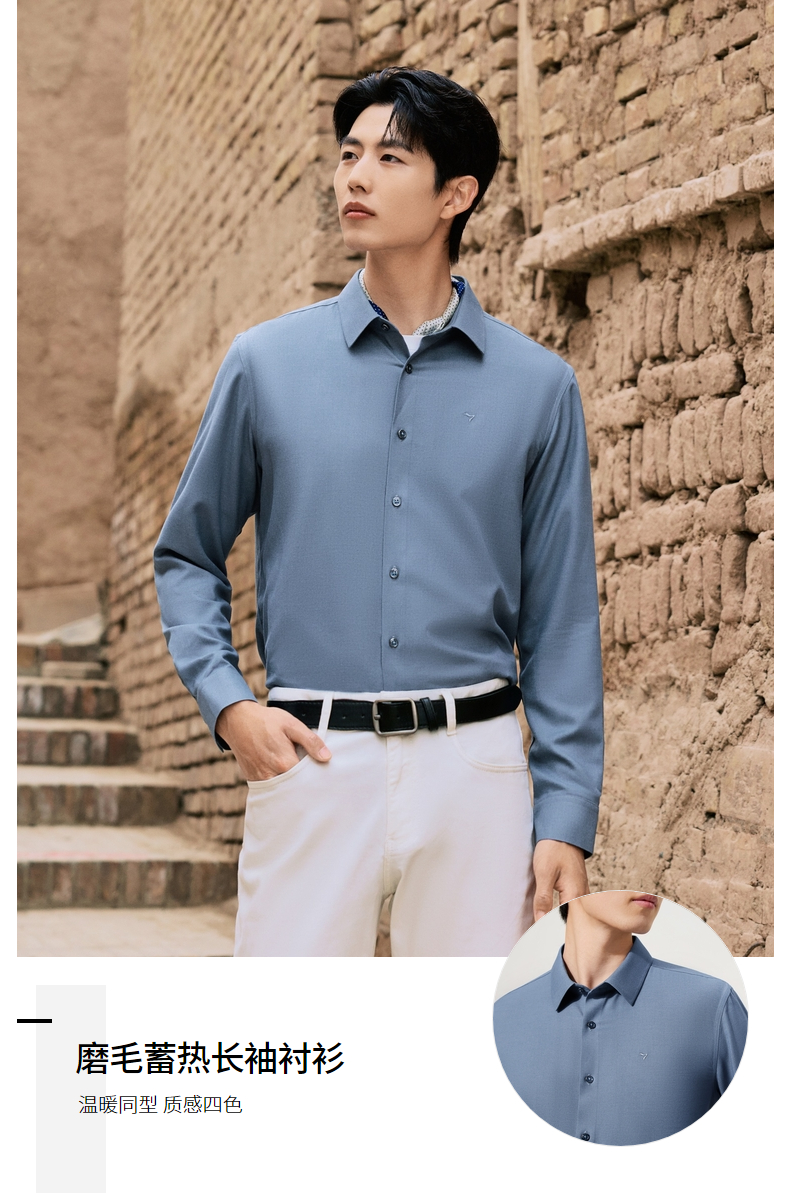 【索罗娜蓄热】柒牌男装2025秋季新品翻领微磨毛柔软商务长袖衬衫129A70660