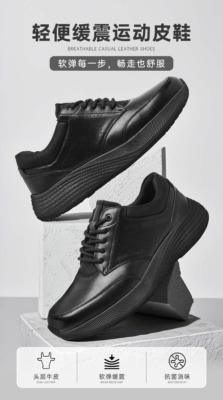【实付满399送保温杯】【轻便缓震运动皮鞋】商务通勤牛皮皮鞋休闲运动低帮鞋XT501