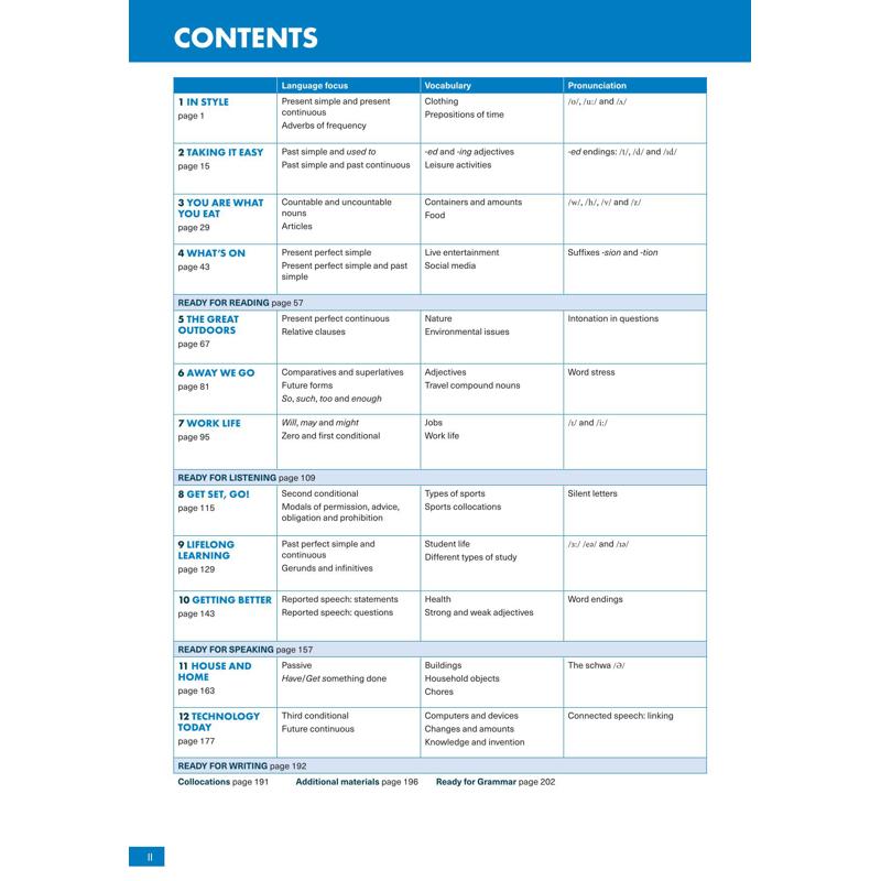 Grammar is made easy with thorough Ready for Grammar reference sections at the back of the book which give clear explanations and provide extra practice.