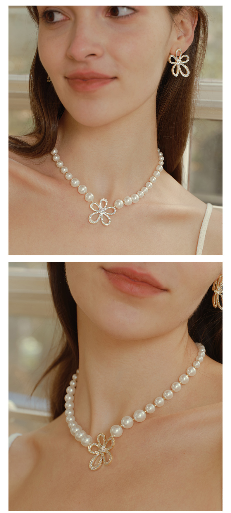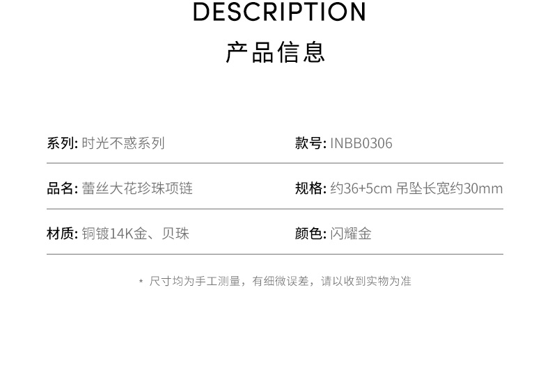 INBB0306 人间富贵花-蕾丝大花珍珠项链| INCH EDITION 时光不惑系列
