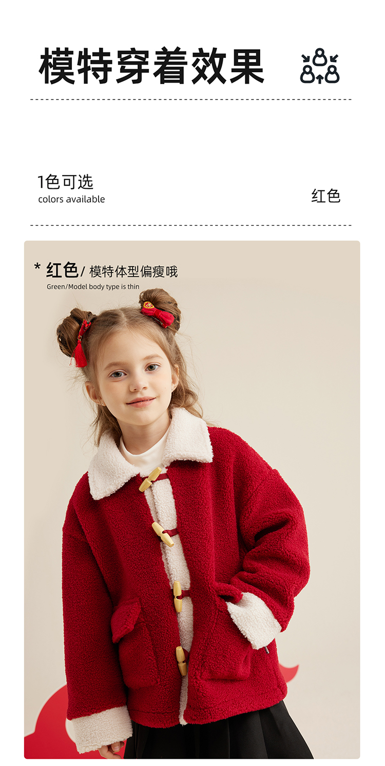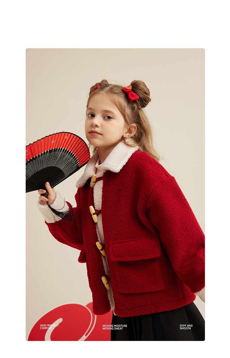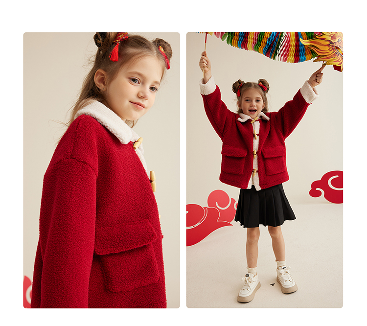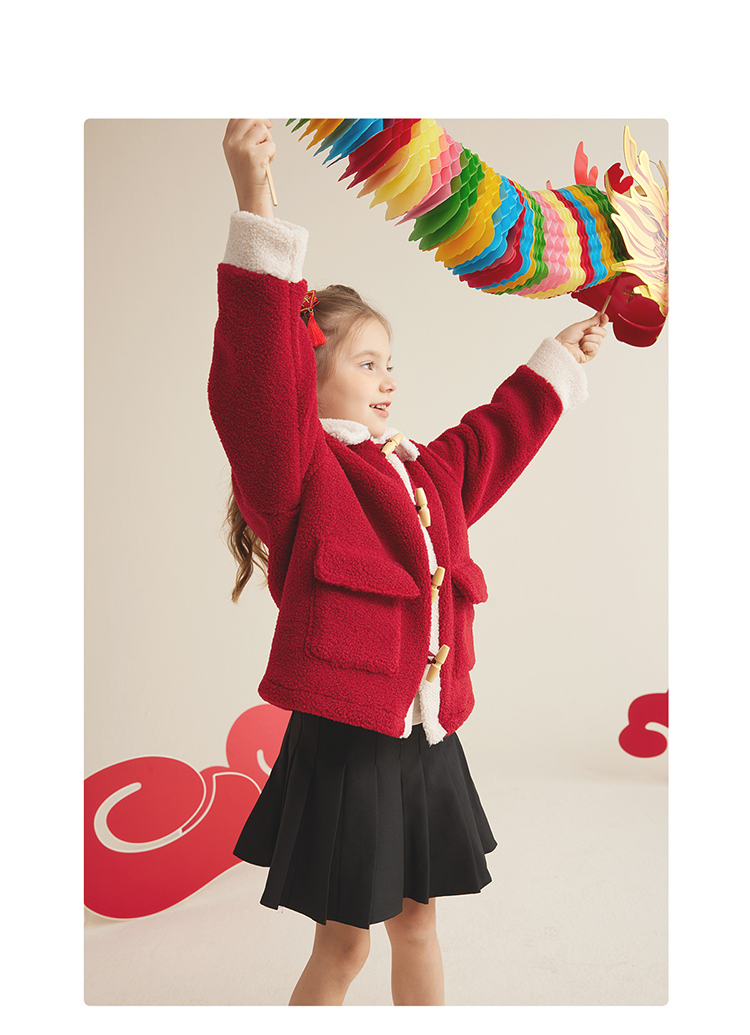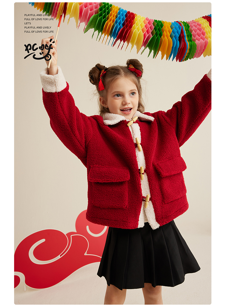 【拜年服 松软羊羔绒】儿童翻领加厚羊羔绒外套PDWT2334