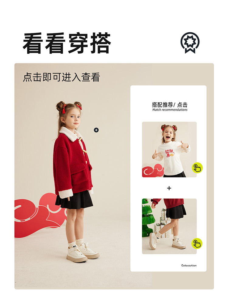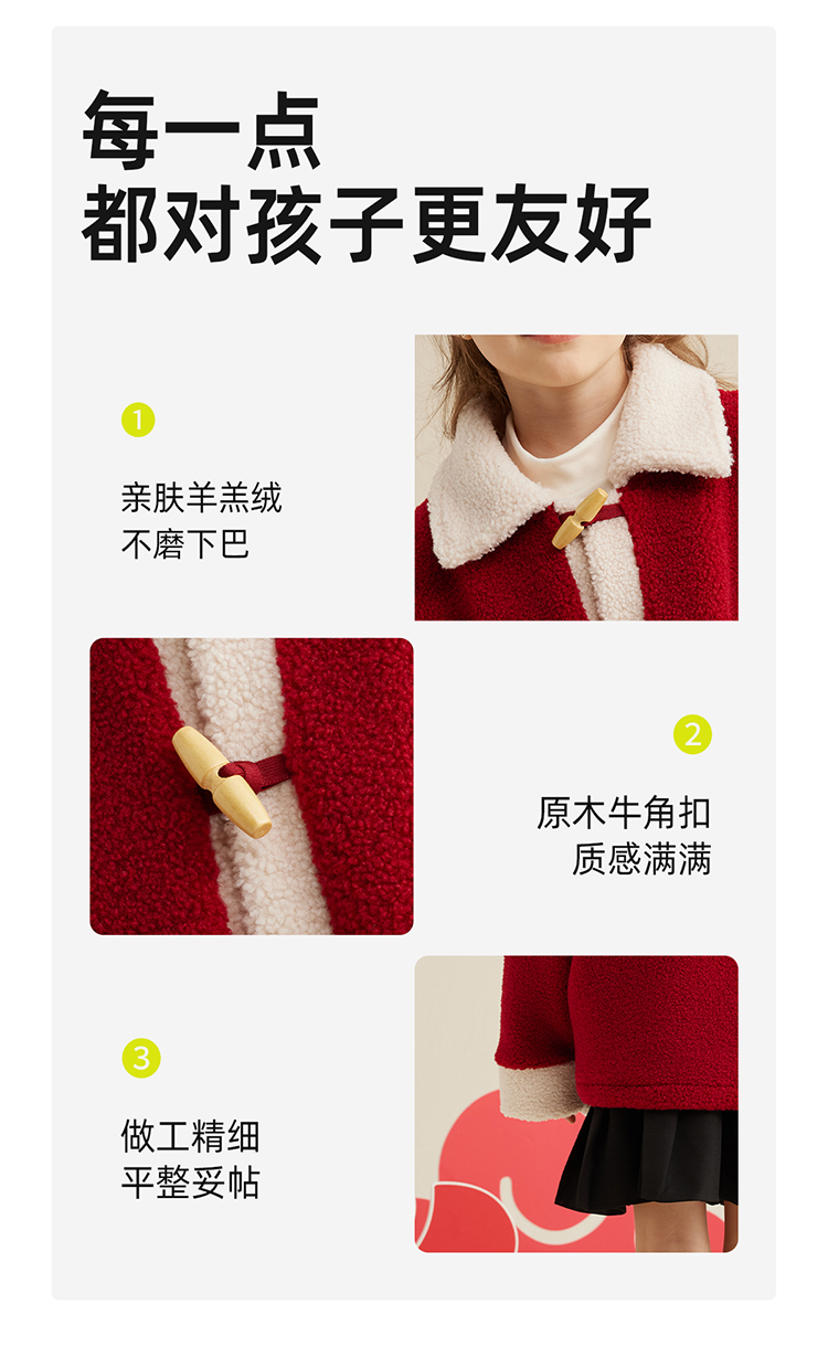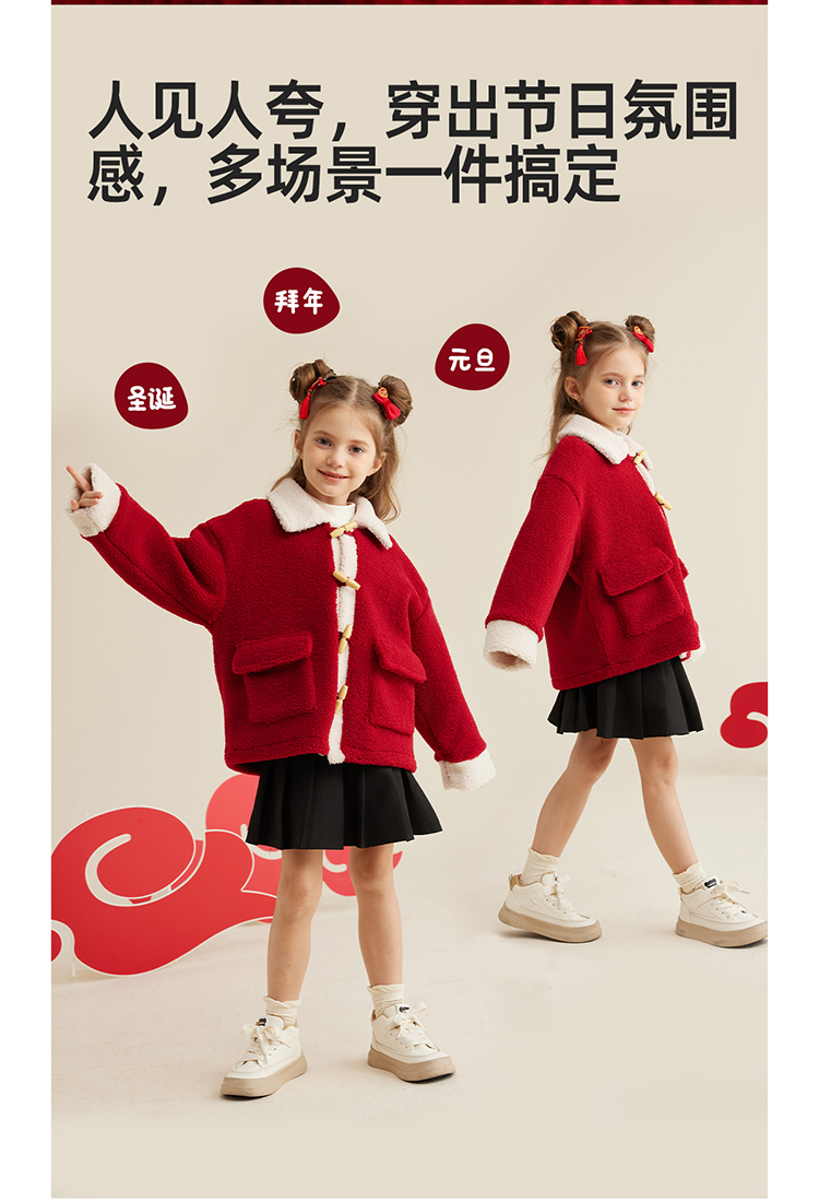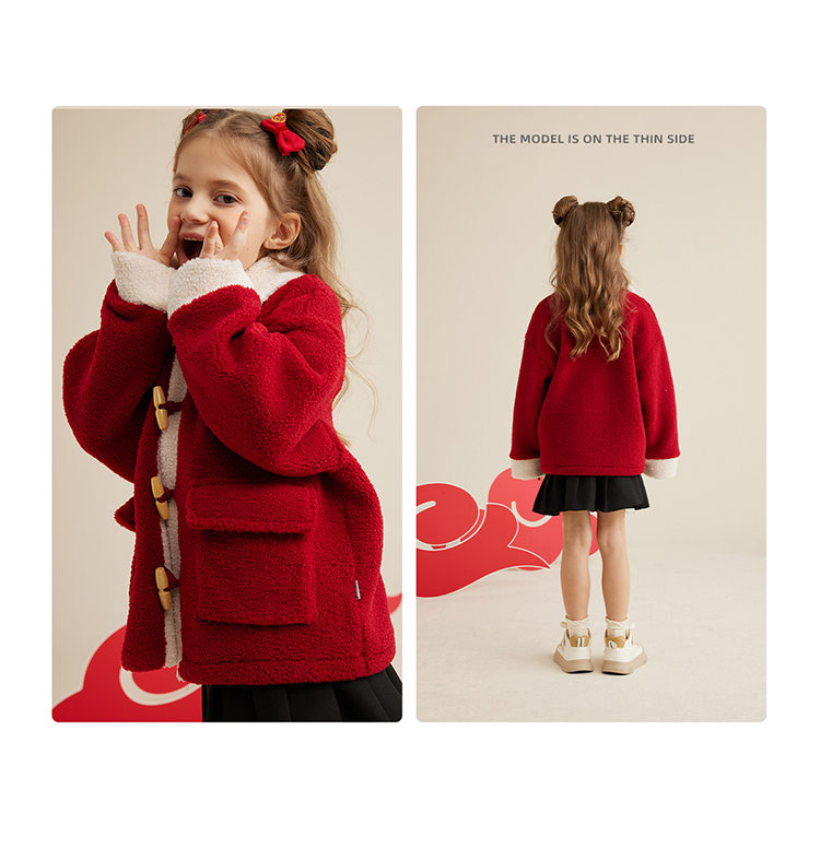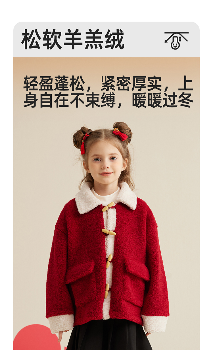 【拜年服 松软羊羔绒】儿童翻领加厚羊羔绒外套PDWT2334