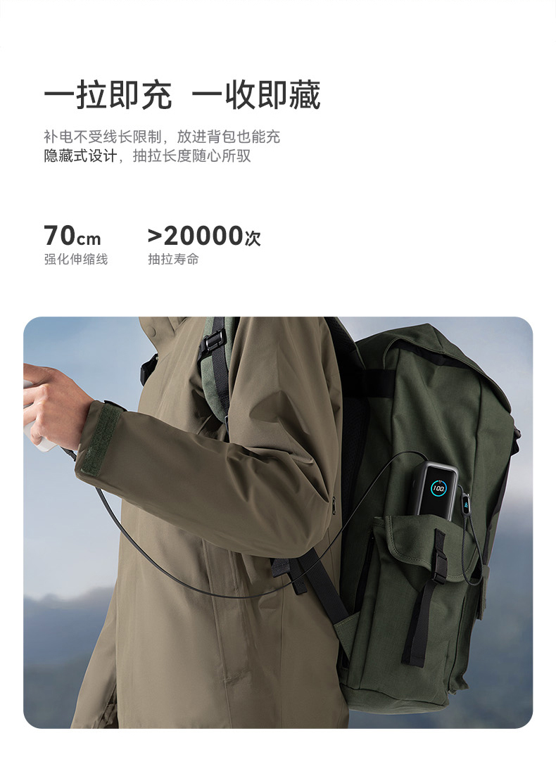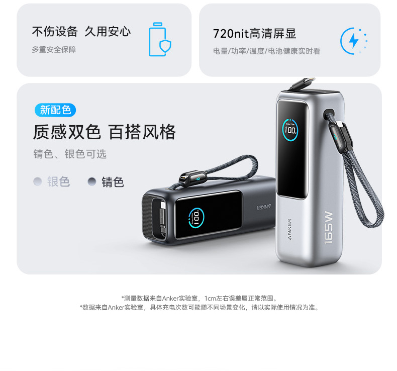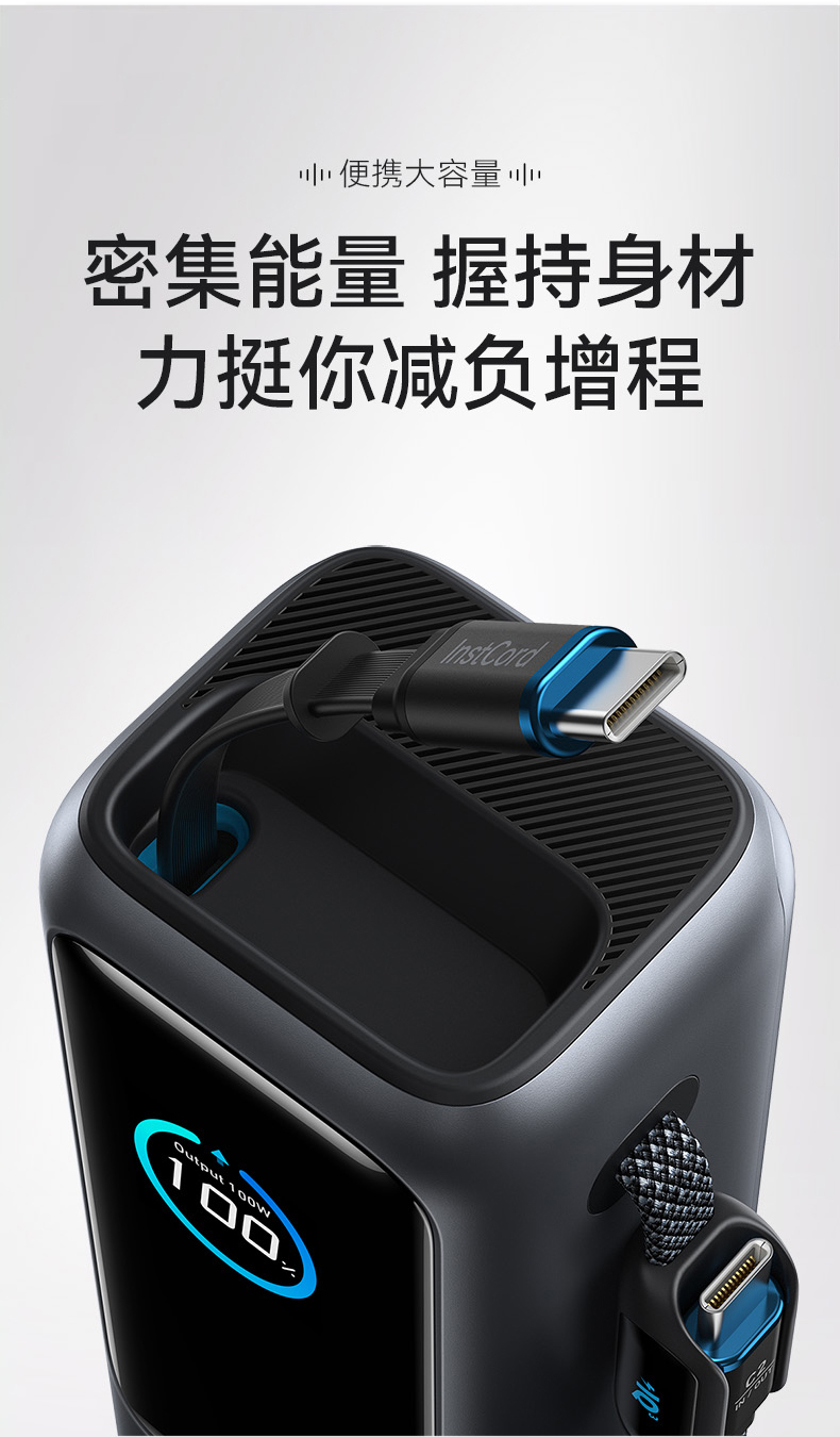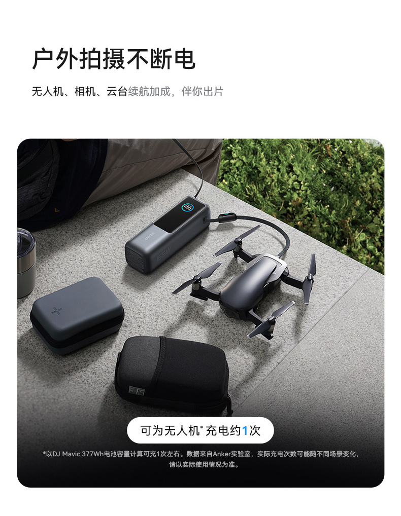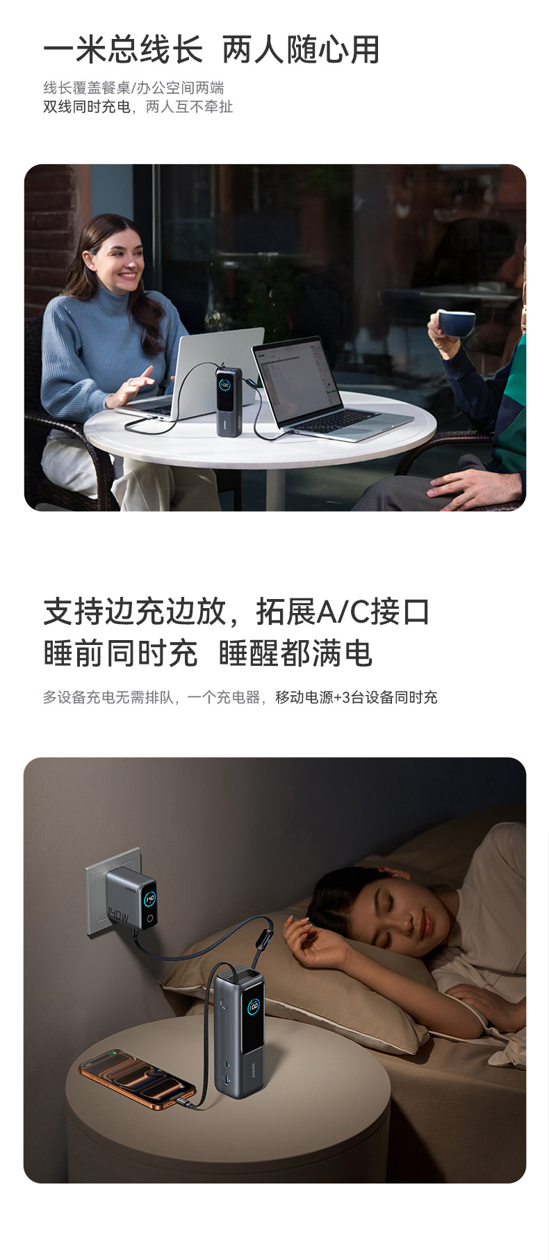 【热销】Anker安克 自带线伸缩25000mAh大容量移动电源165W大功率适配苹果17安卓笔记本可上飞机 A1695