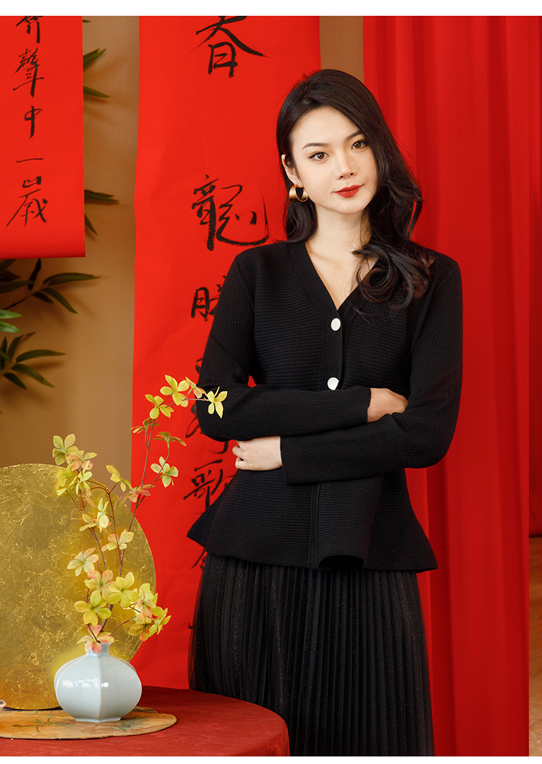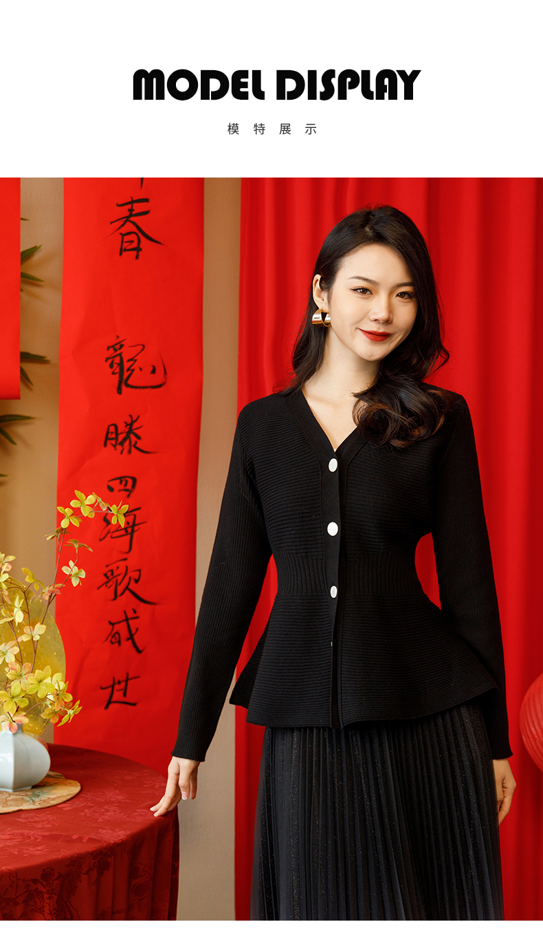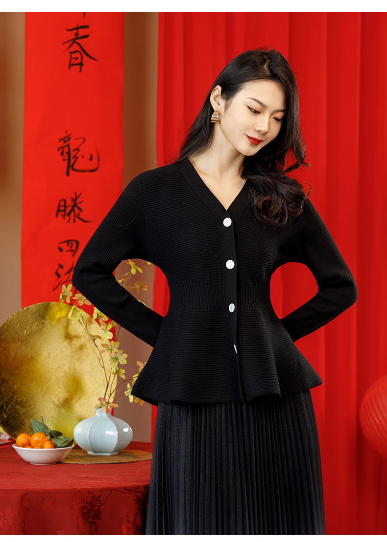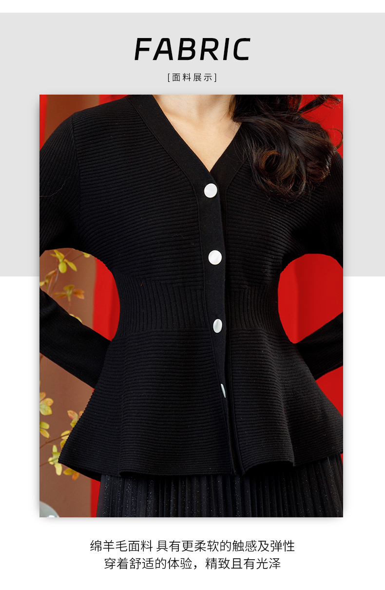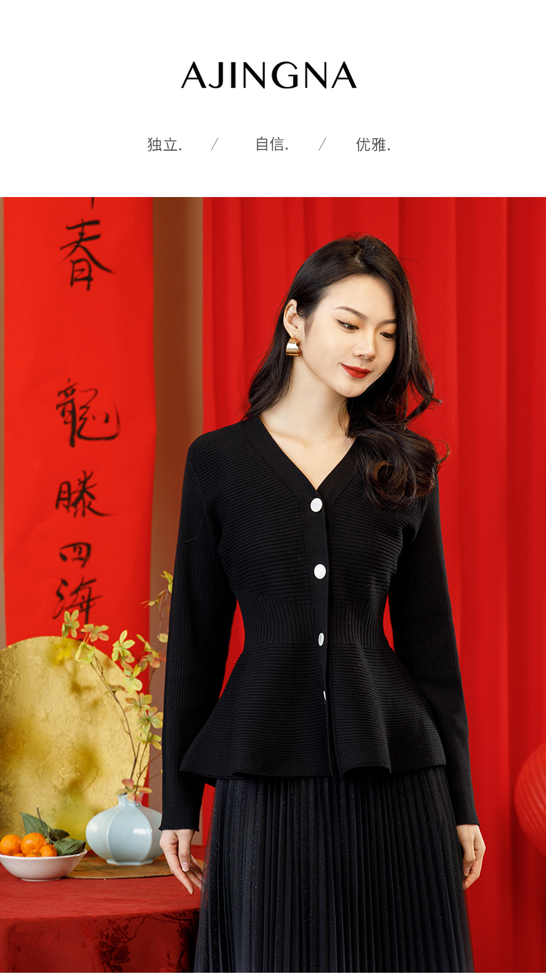 【商场同款】阿菁娜2024春夏新款收腰V领荷叶摆针织衫A29Q301056