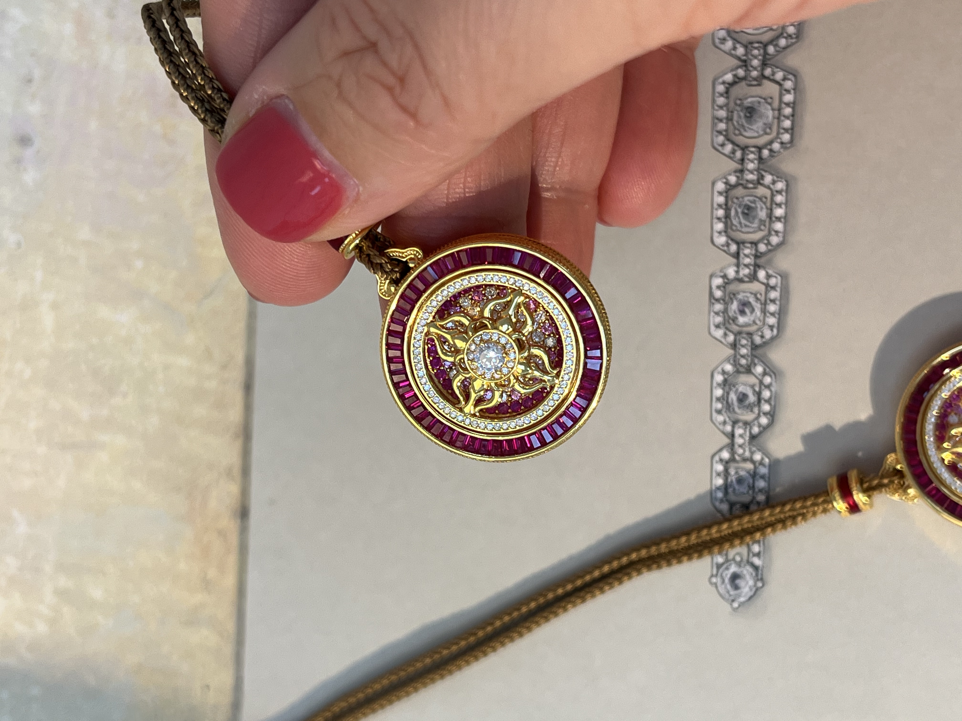 【开年鸿运首饰之‘币’定发财】红宝金刚杵罗盘 银镀金项链吊坠新年礼物(非质量问题不退不换)