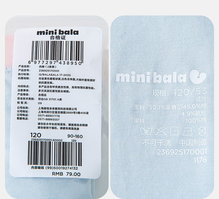 【2条装】迷你巴拉女童内裤柔软速干抑菌不夹pp宝宝四角短裤