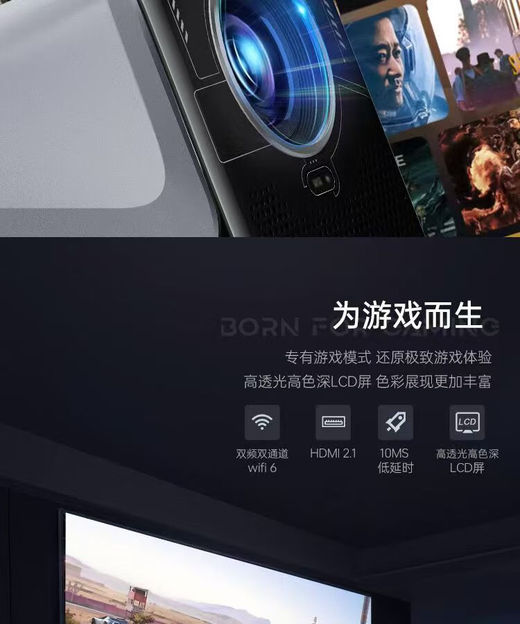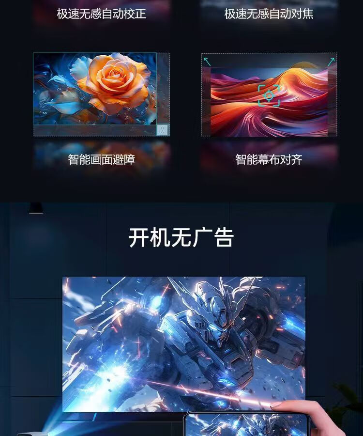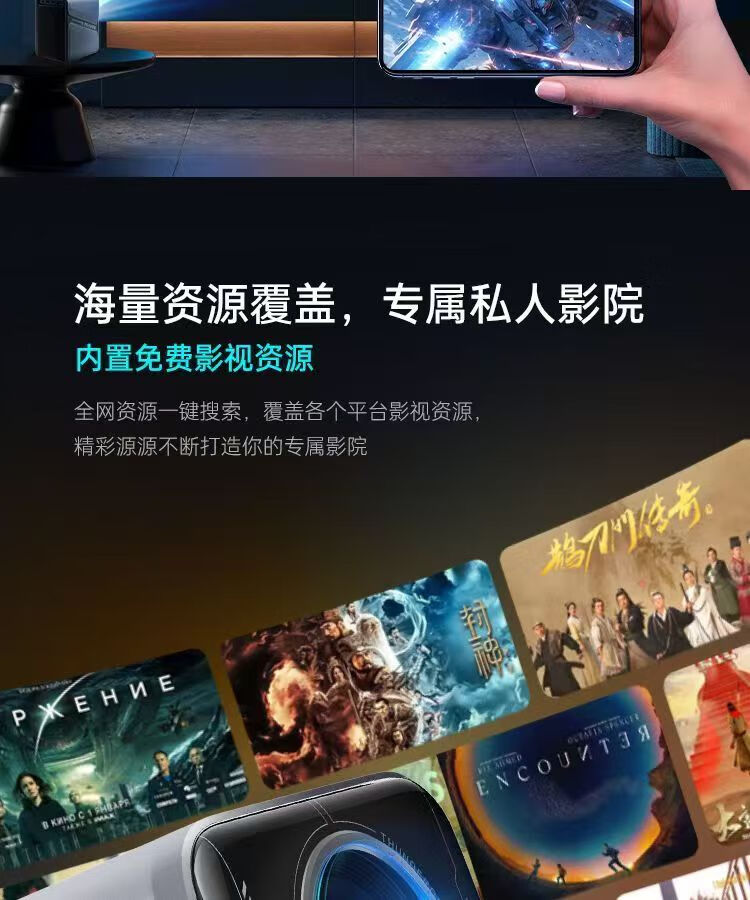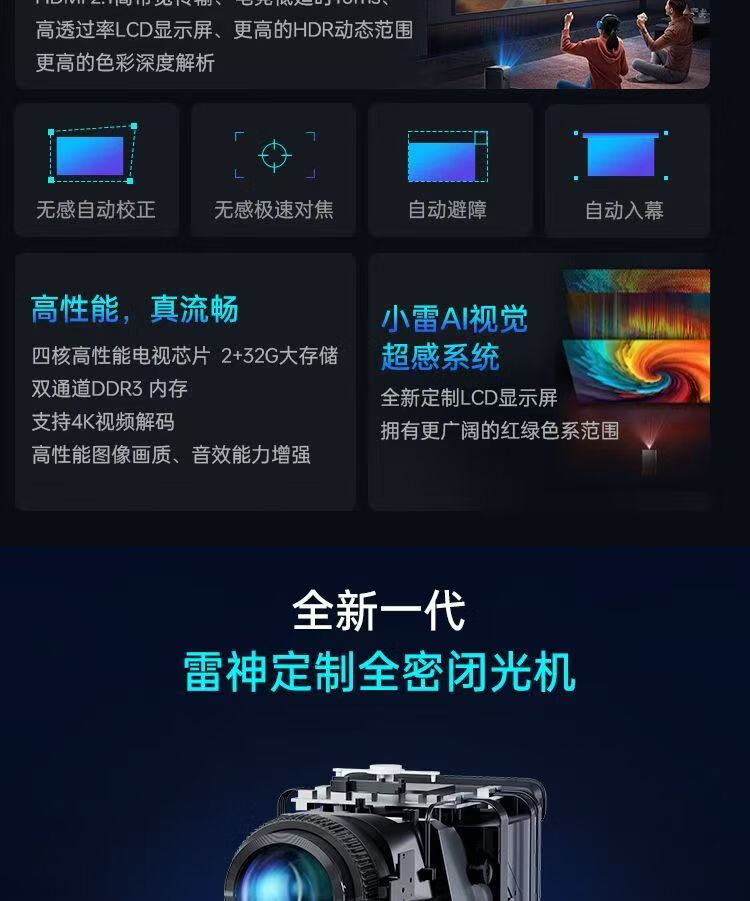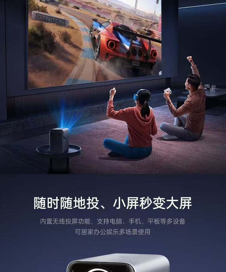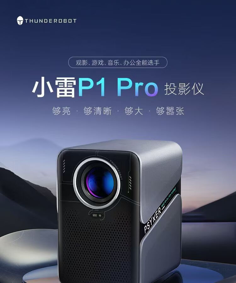 雷神P1Pro投影仪家无感极速对焦小型微型 AI视觉智能家用家庭影院办公一体5gwifi 高清兼容4k影音家庭观影投影仪