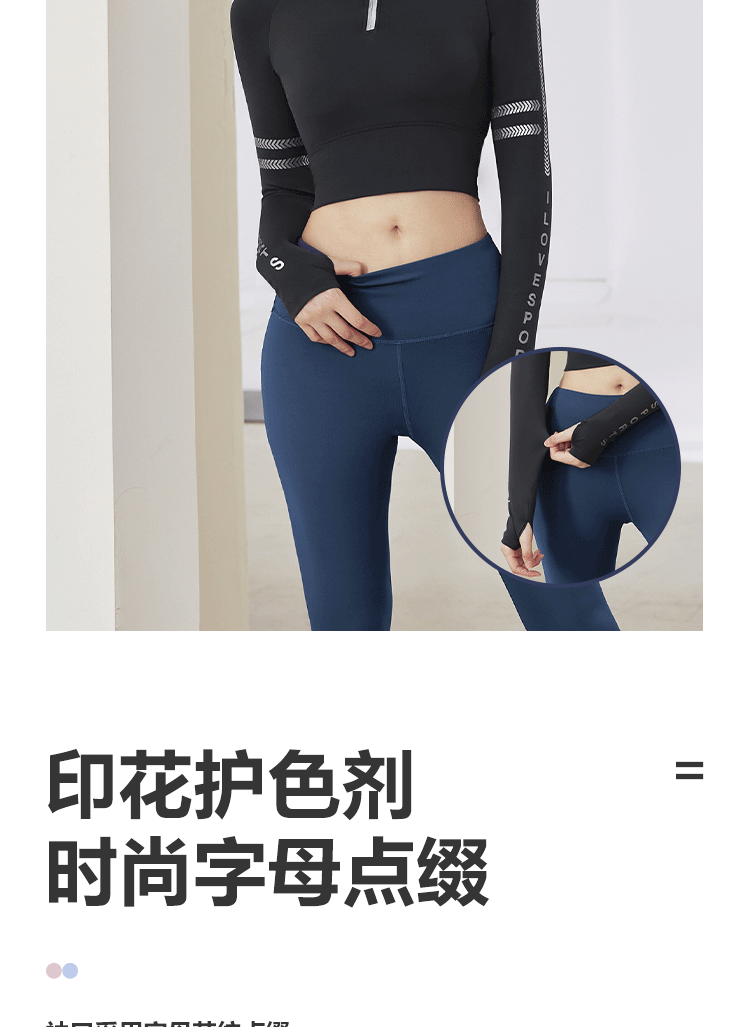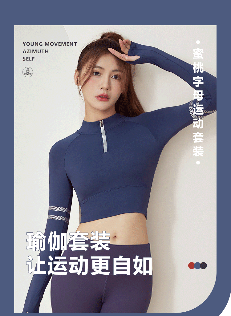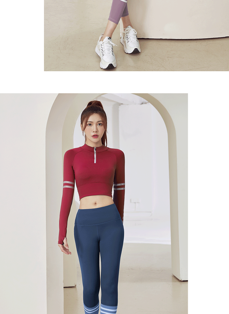 聚衣堂字母带胸垫半拉链修身显瘦瑜伽健身运动跑步长袖上衣瑜伽服