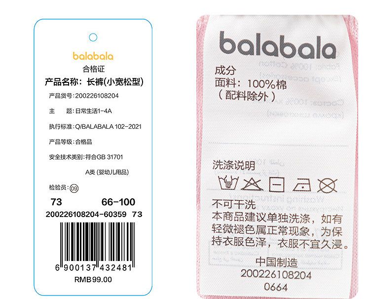 【商场同款】巴拉巴拉宝宝长裤婴儿pp裤2026新款夏装宽松舒适可爱
