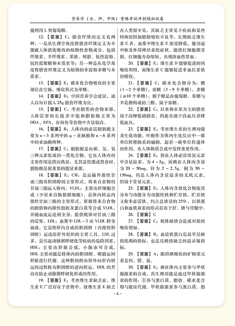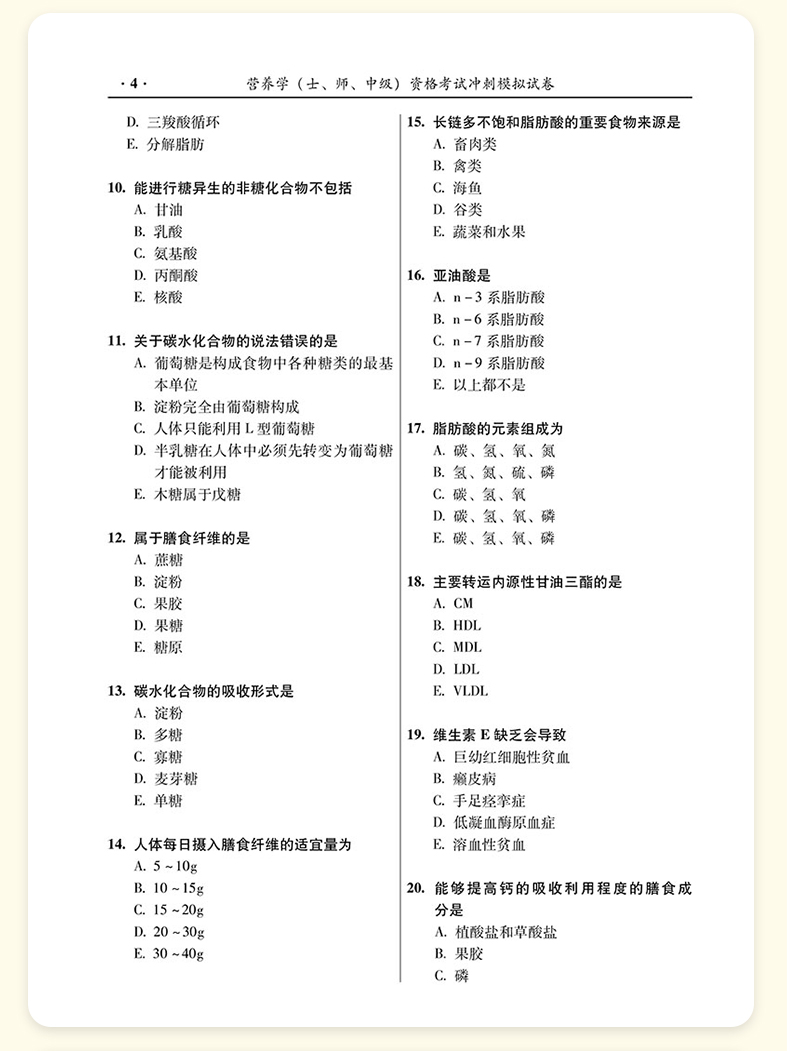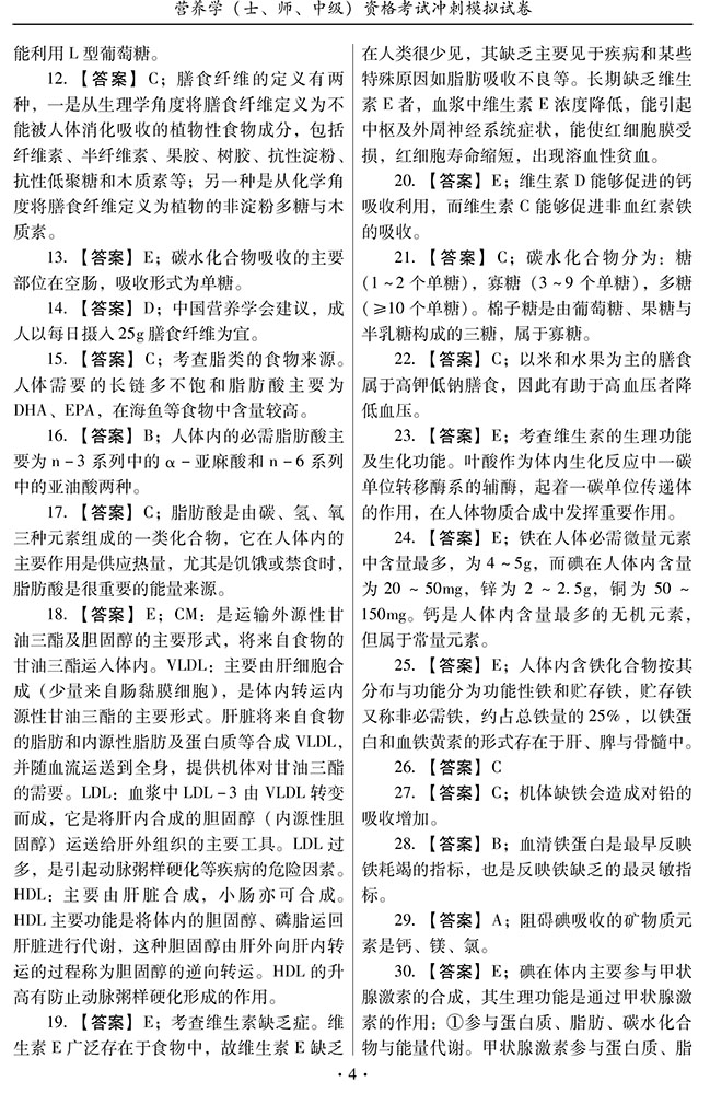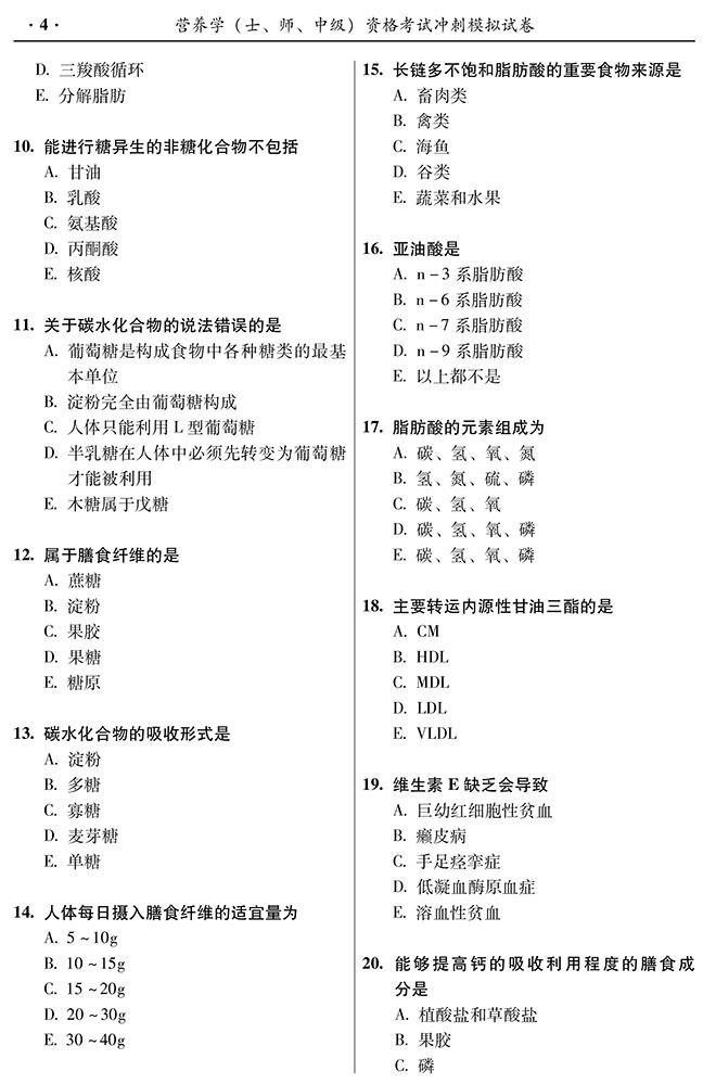 书名:2026营养学(士、师、中级) 资格考试冲刺模拟试卷