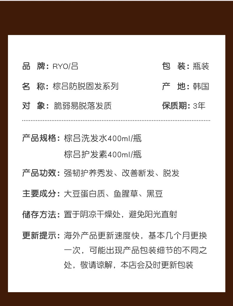 韩国 RYO吕 光耀滋润修护全系列 洗发水/护发素 550ml