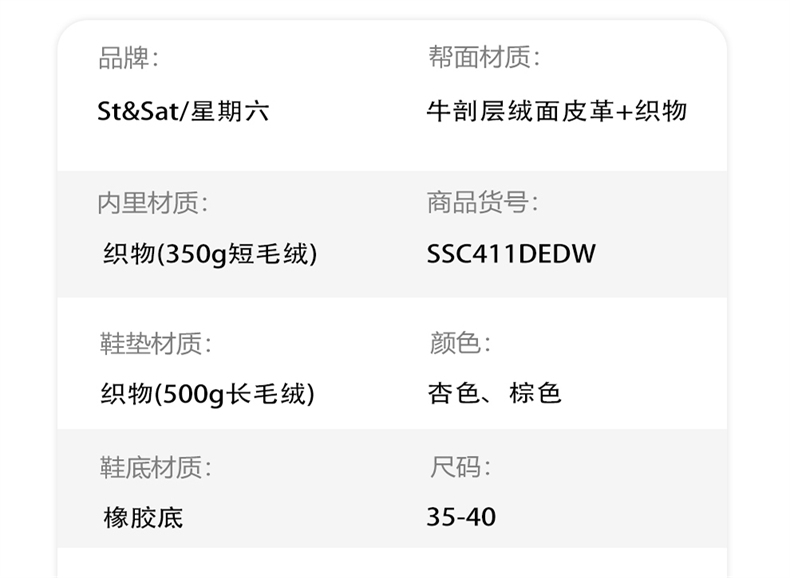 星期六复古百搭休闲舒适保暖毛毛鞋SSC411DEDW
