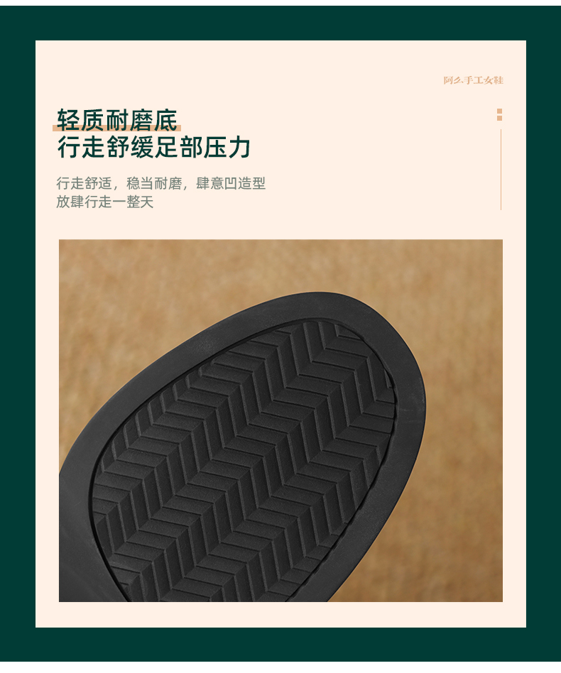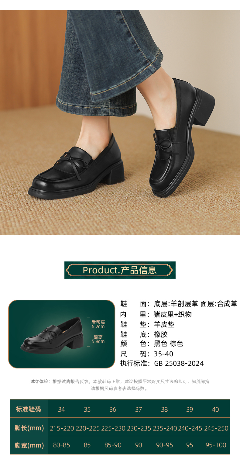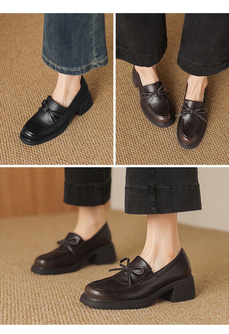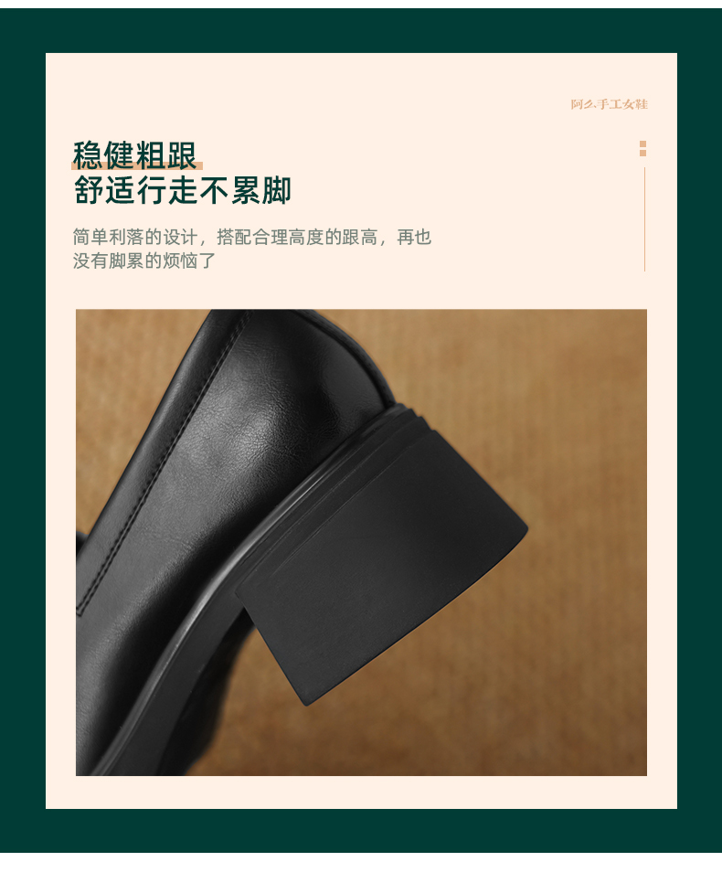 阿么手工女鞋蝴蝶结粗跟小皮鞋女款软皮软底真皮百搭乐福鞋5.8CM