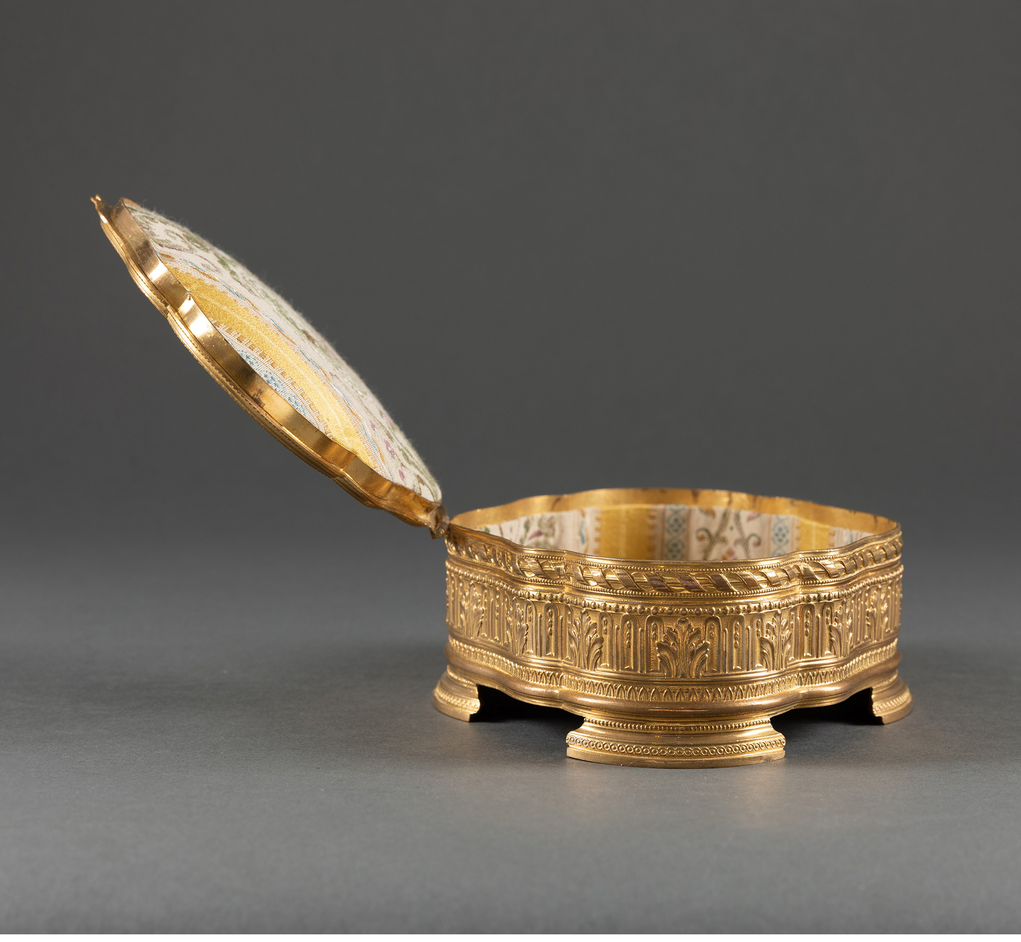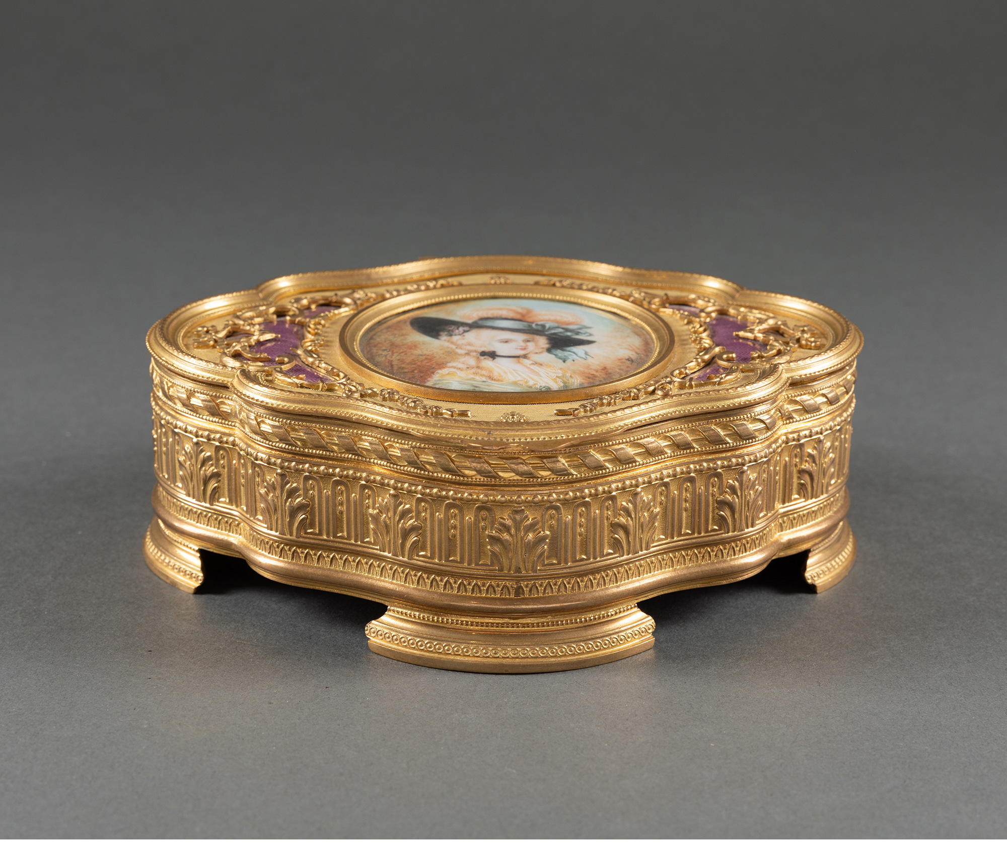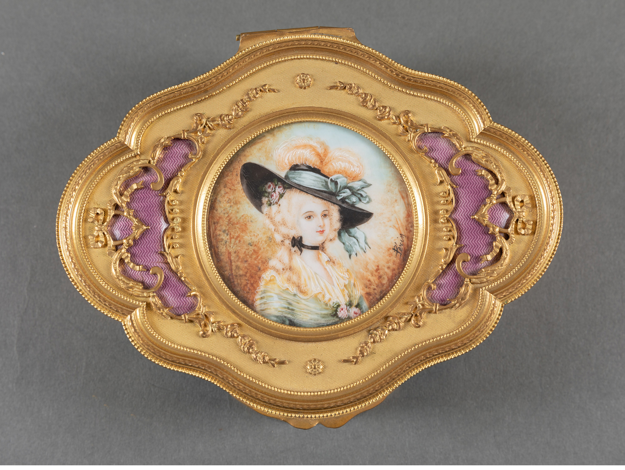 独角鹿西洋古董法国出品铜鎏金修饰淑女肖像细密画珍宝盒首饰盒