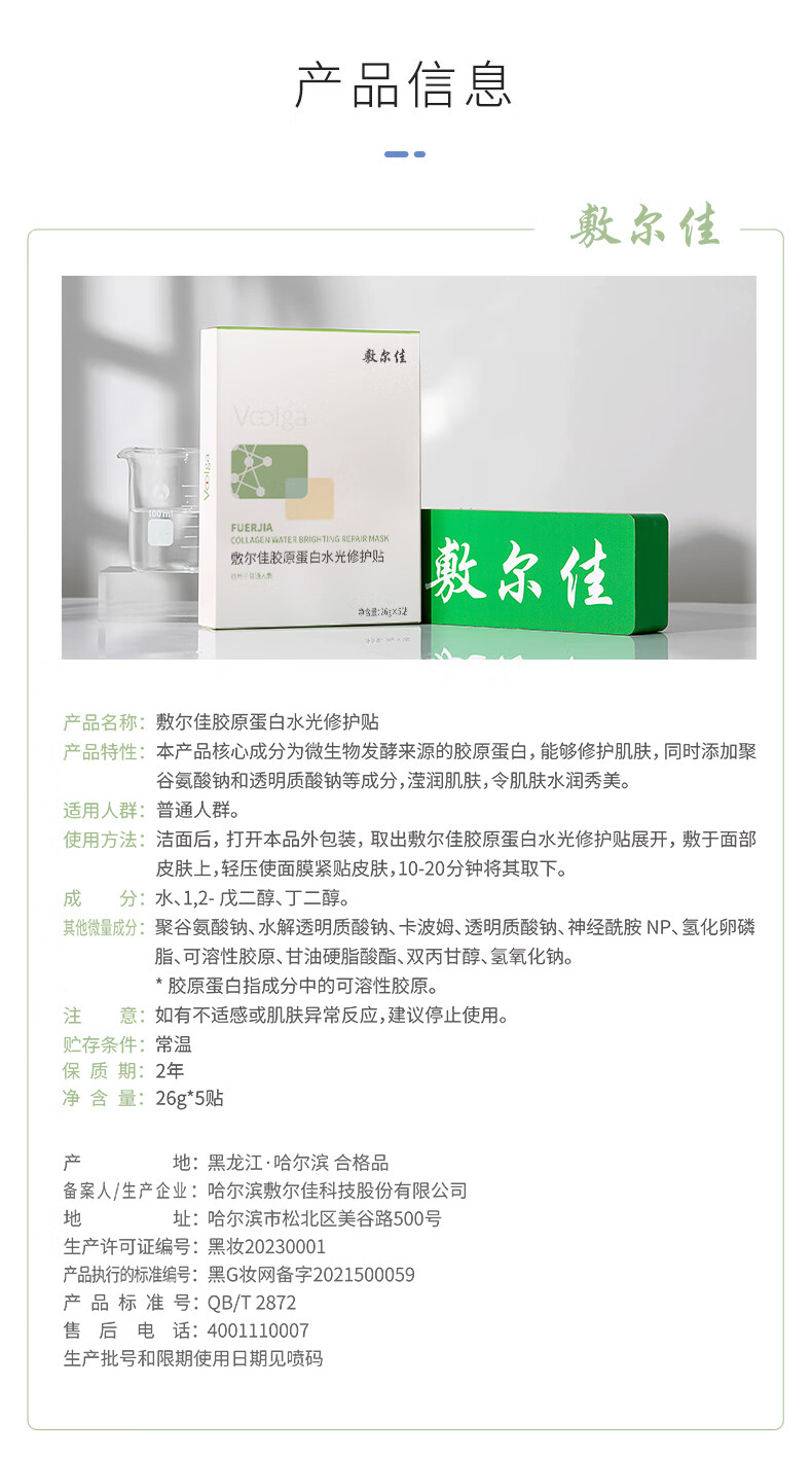 敷尔佳胶原蛋白水光修护贴26g*5贴/盒