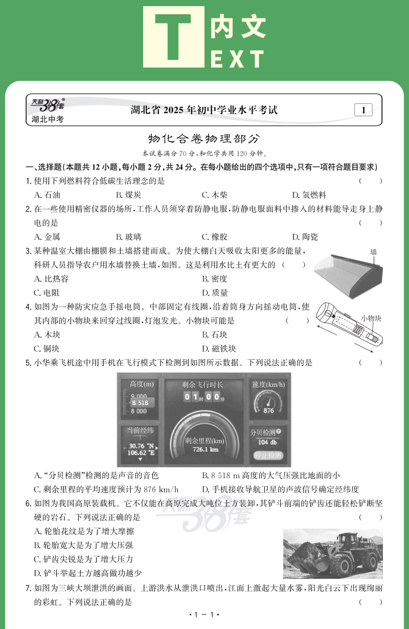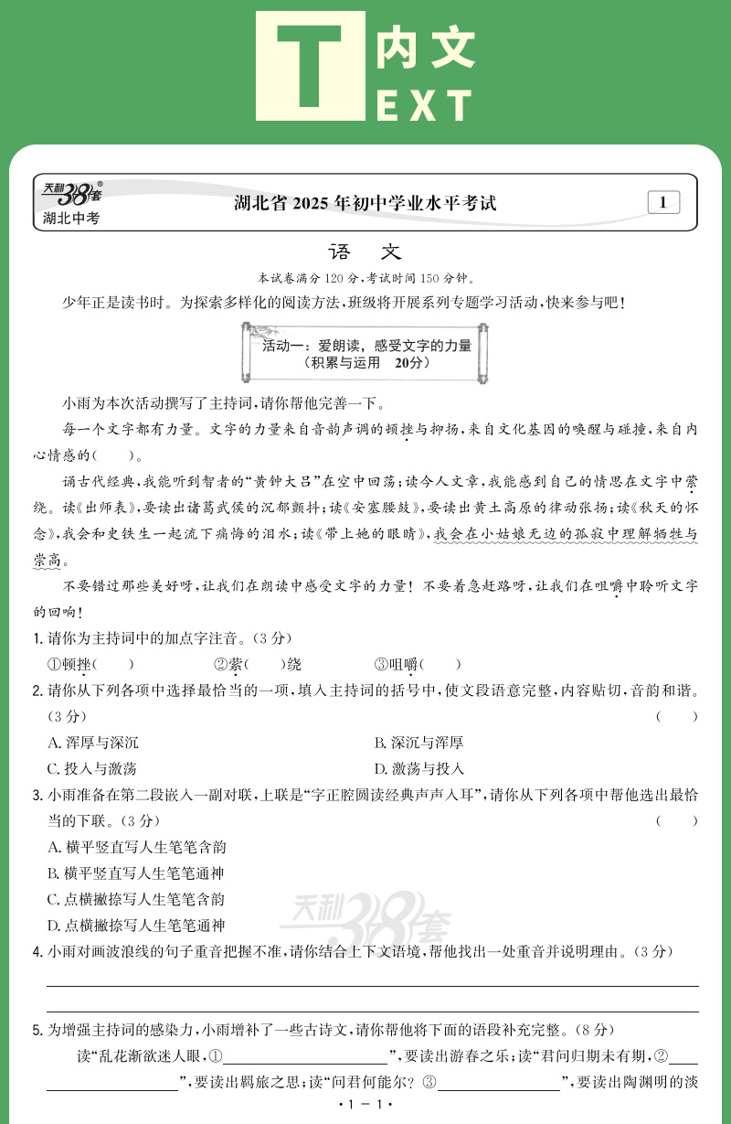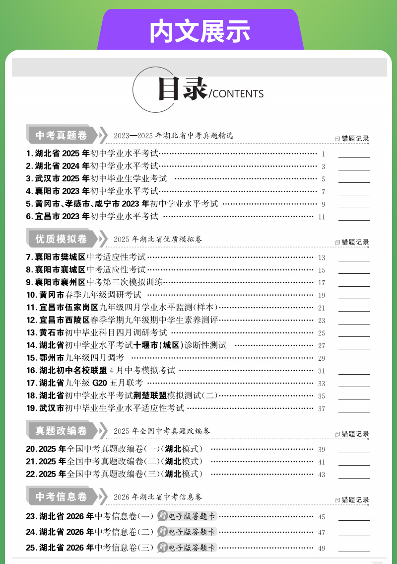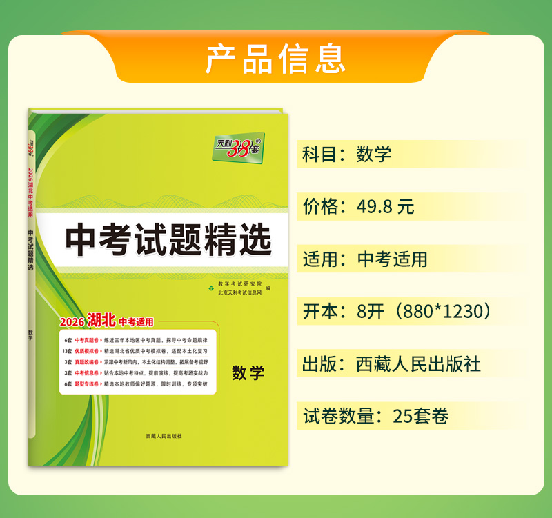 天利38套 2026湖北中考试题精选 语文 数学 英语 物理 化学 历史 道德与法治