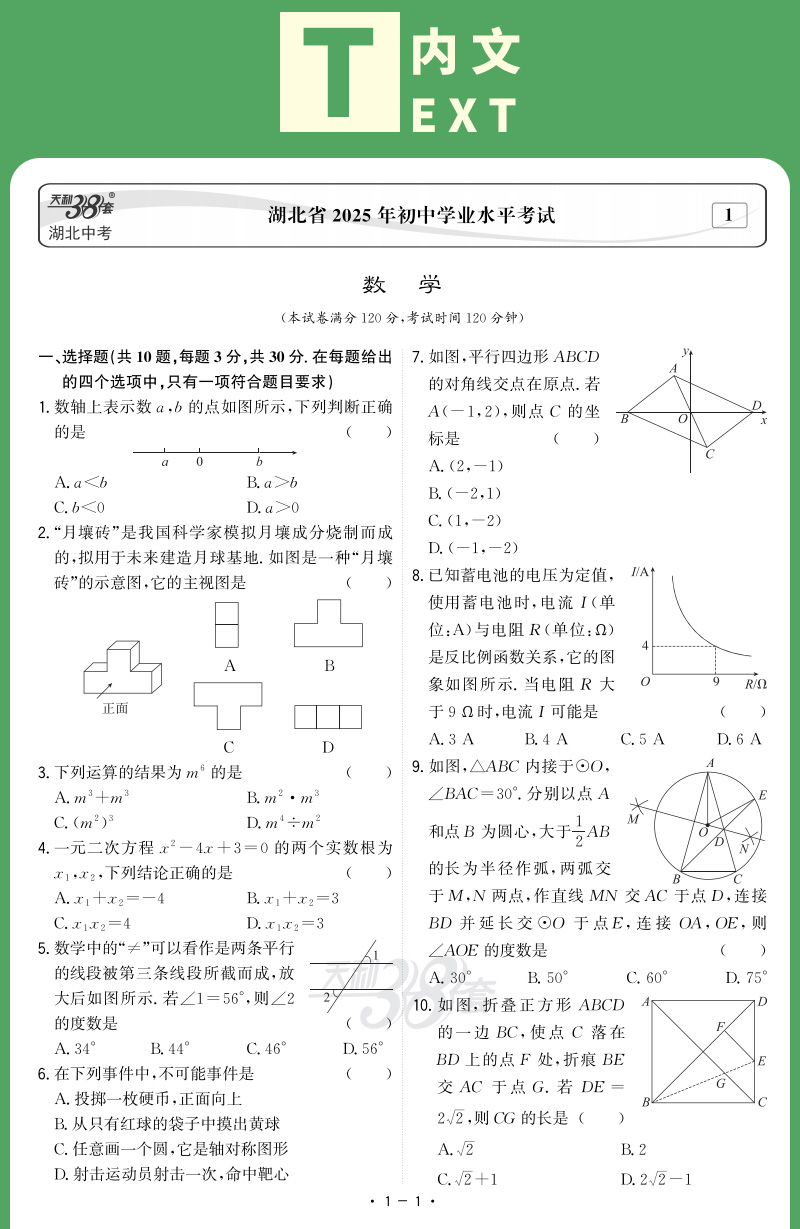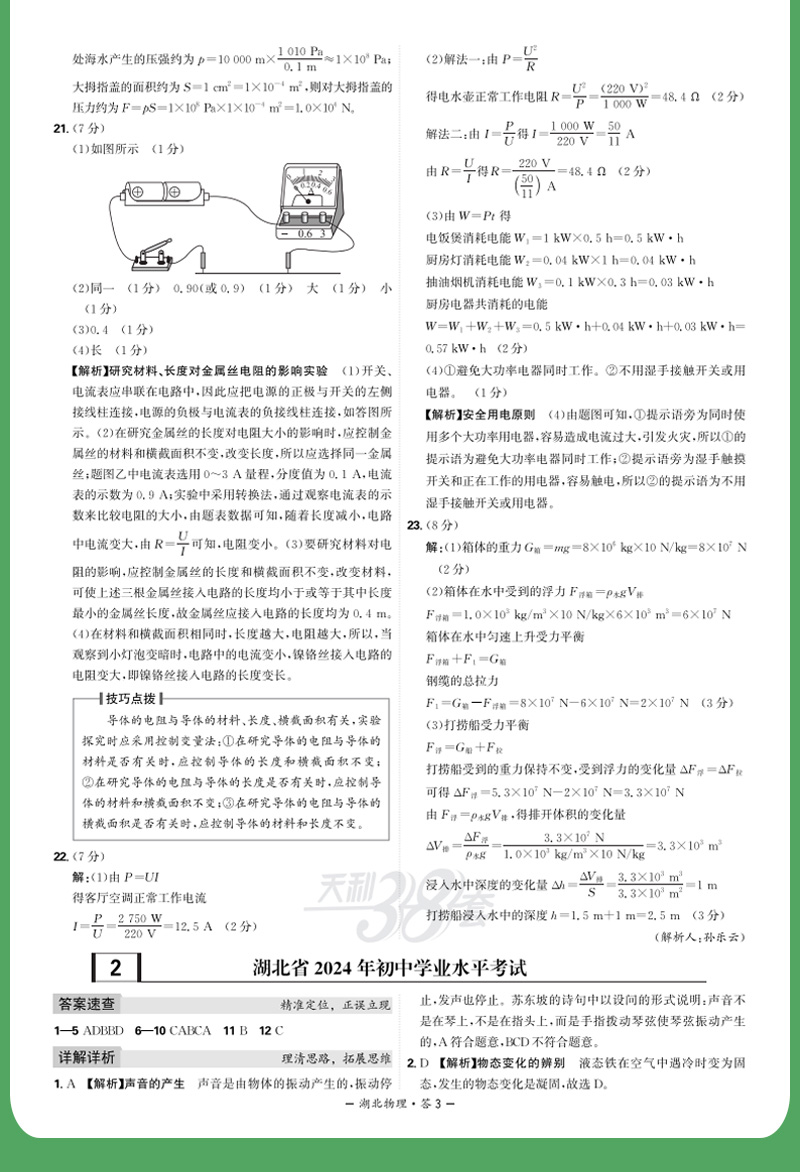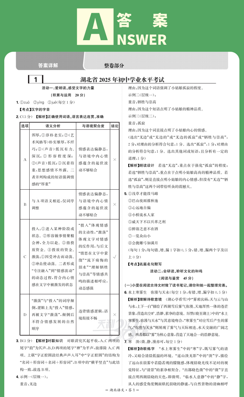 天利38套 2026湖北中考试题精选 语文 数学 英语 物理 化学 历史 道德与法治
