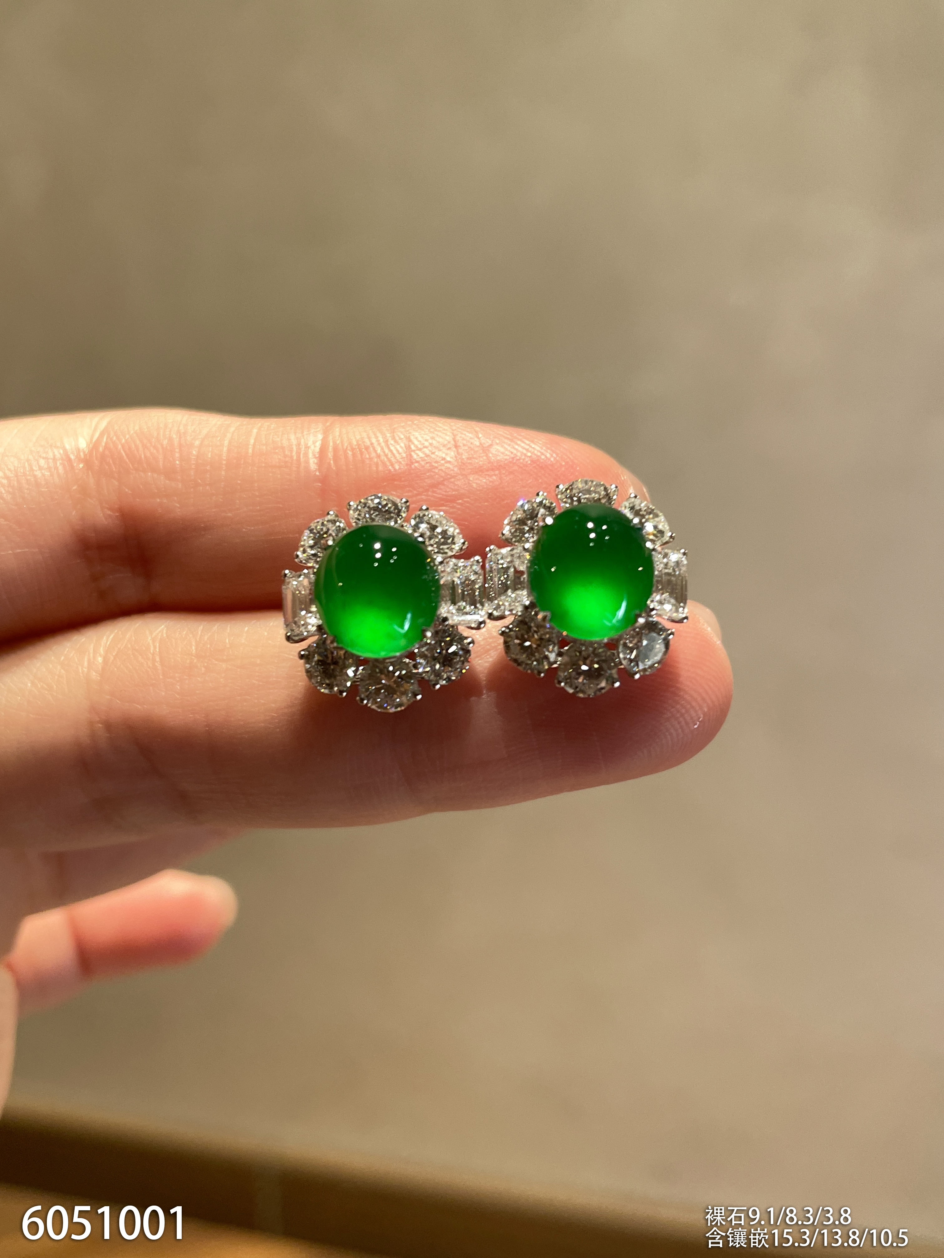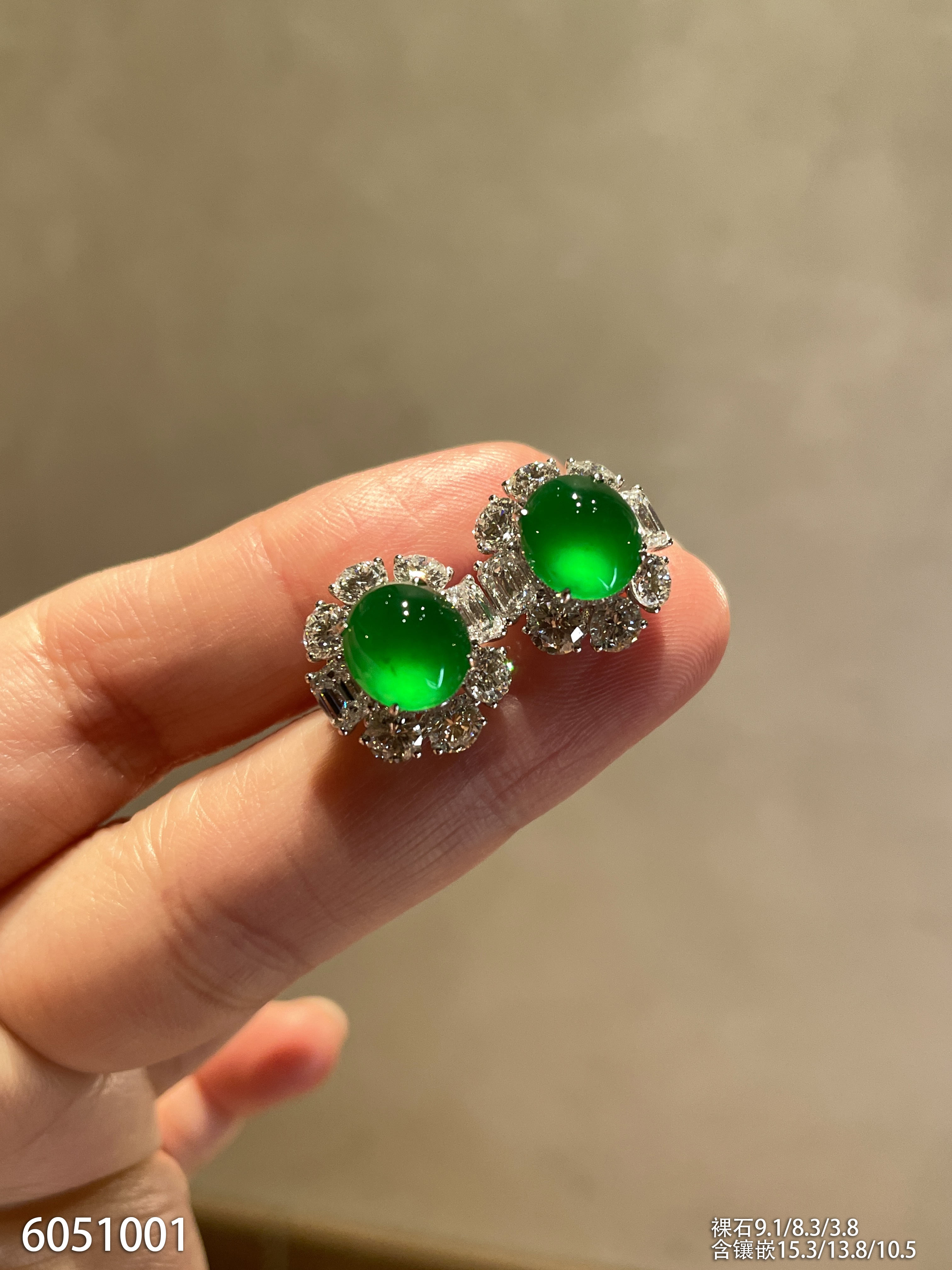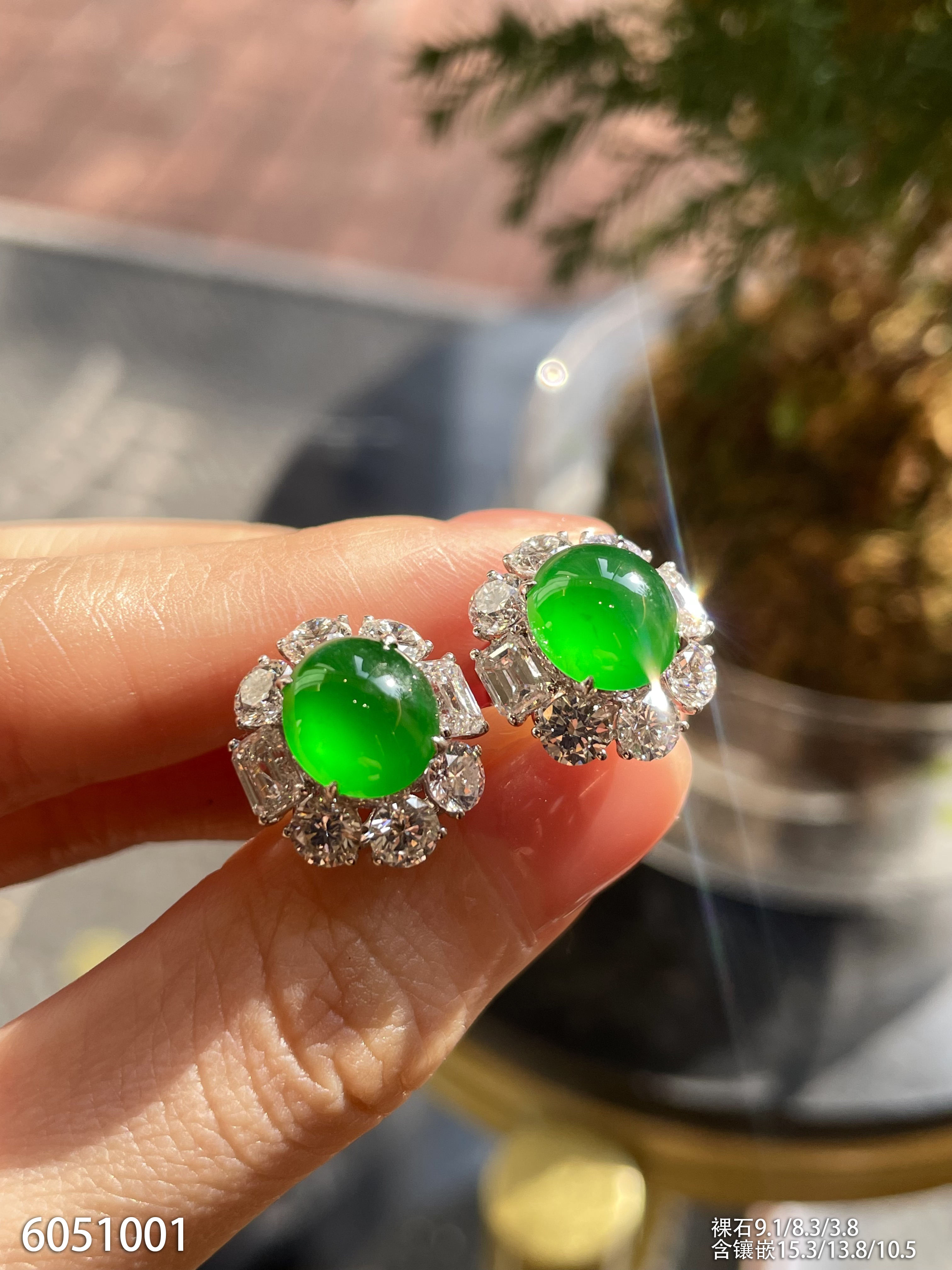 老坑玻璃种帝王绿蛋面耳钉【6051001】具体价格微信咨询