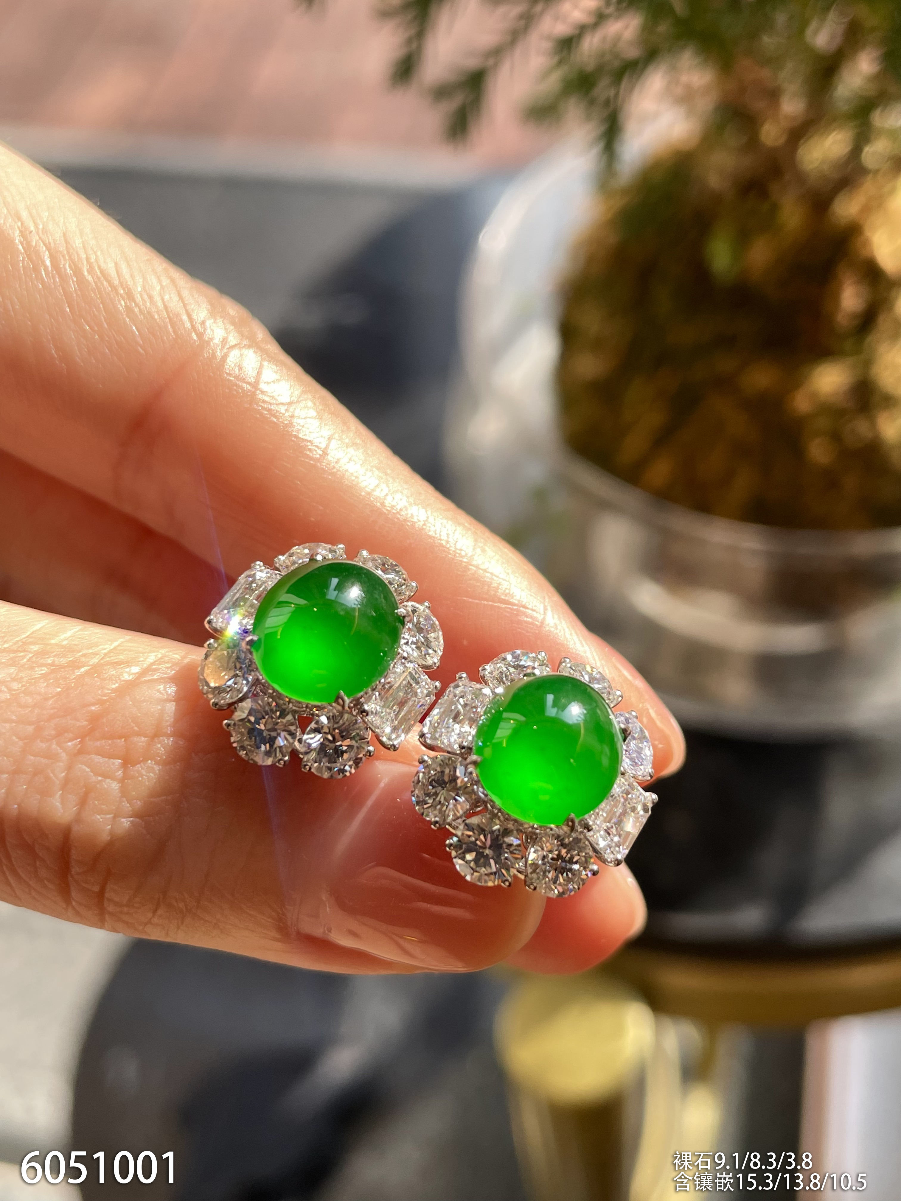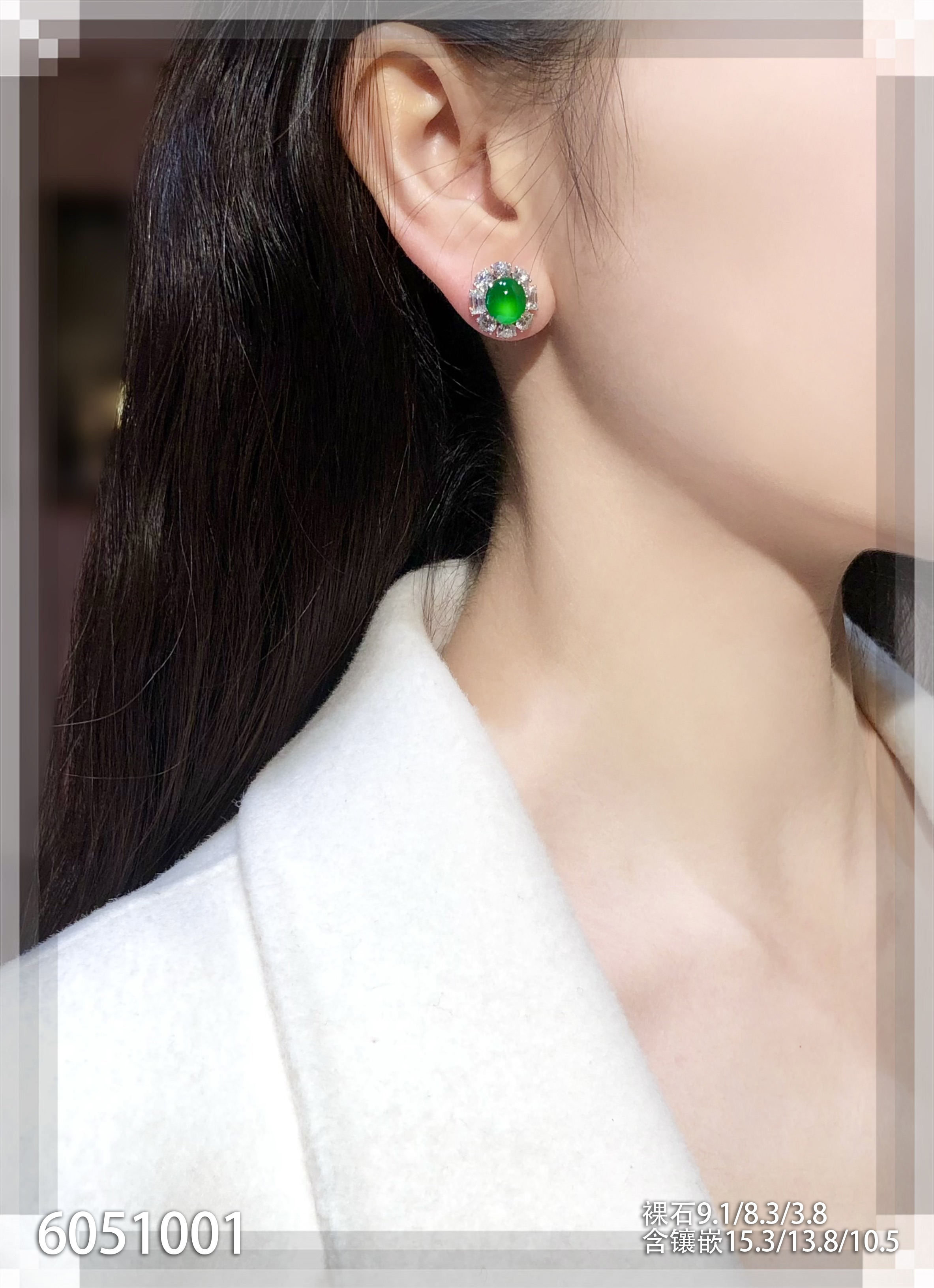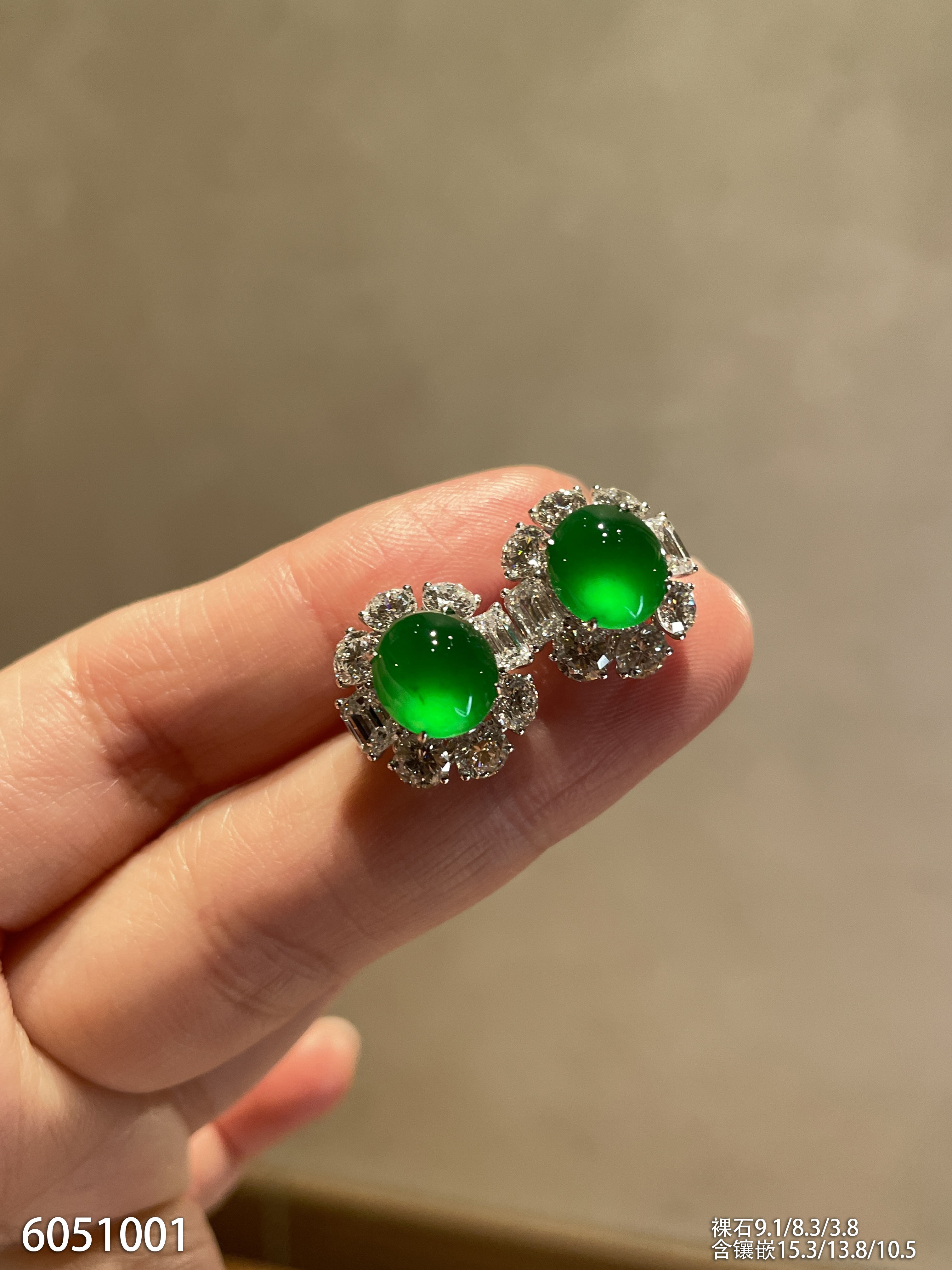 老坑玻璃种帝王绿蛋面耳钉【6051001】具体价格微信咨询