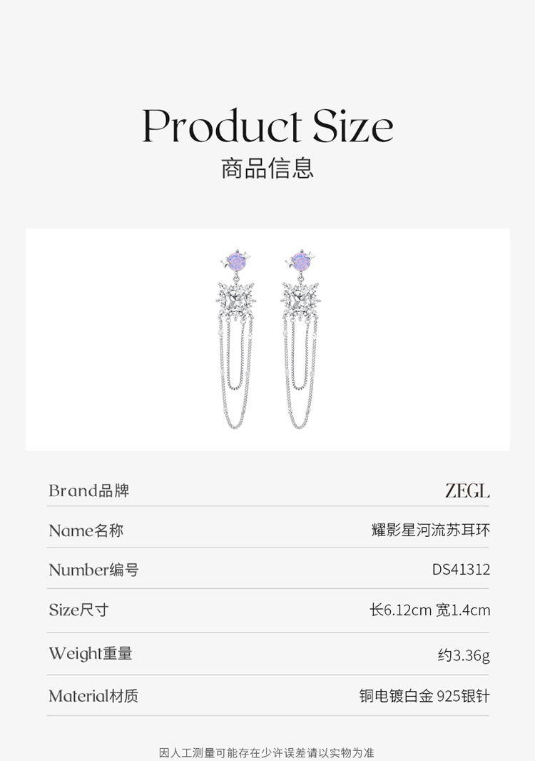 ZEGL设计师耀影星河系列流苏耳环女长款耳钉小众设计感银针耳饰品