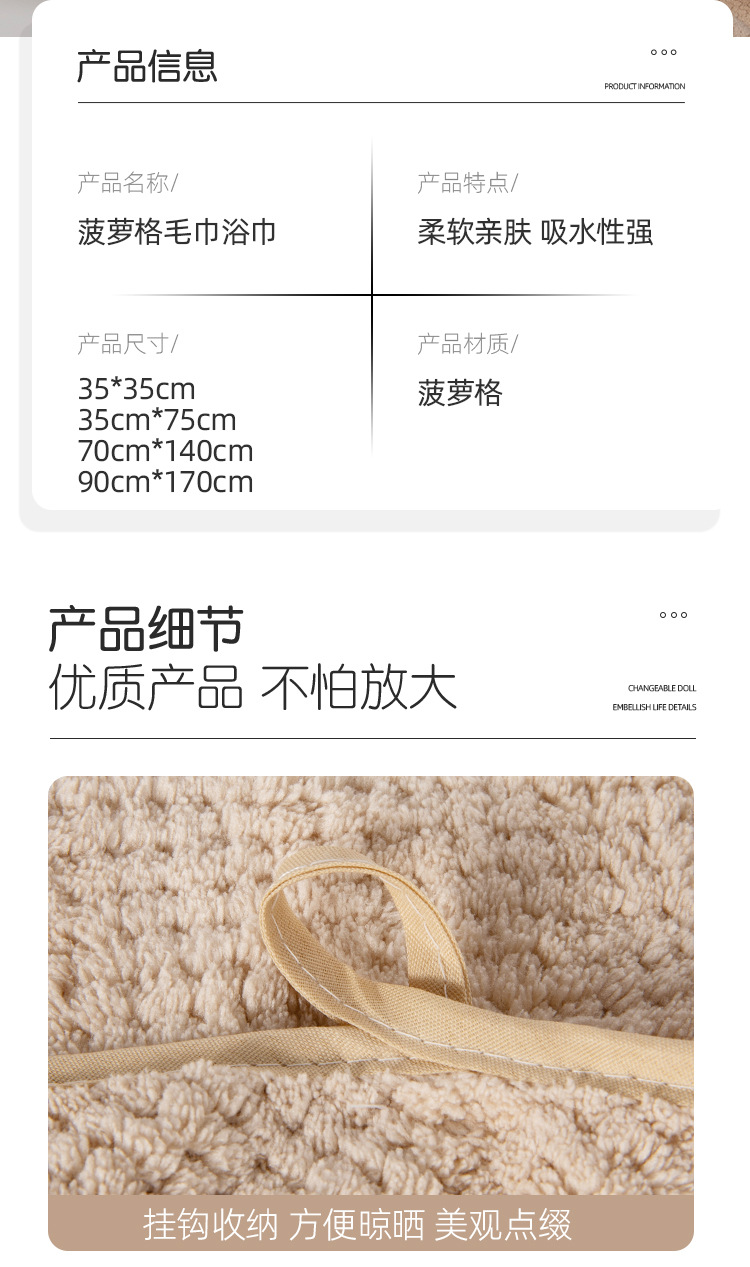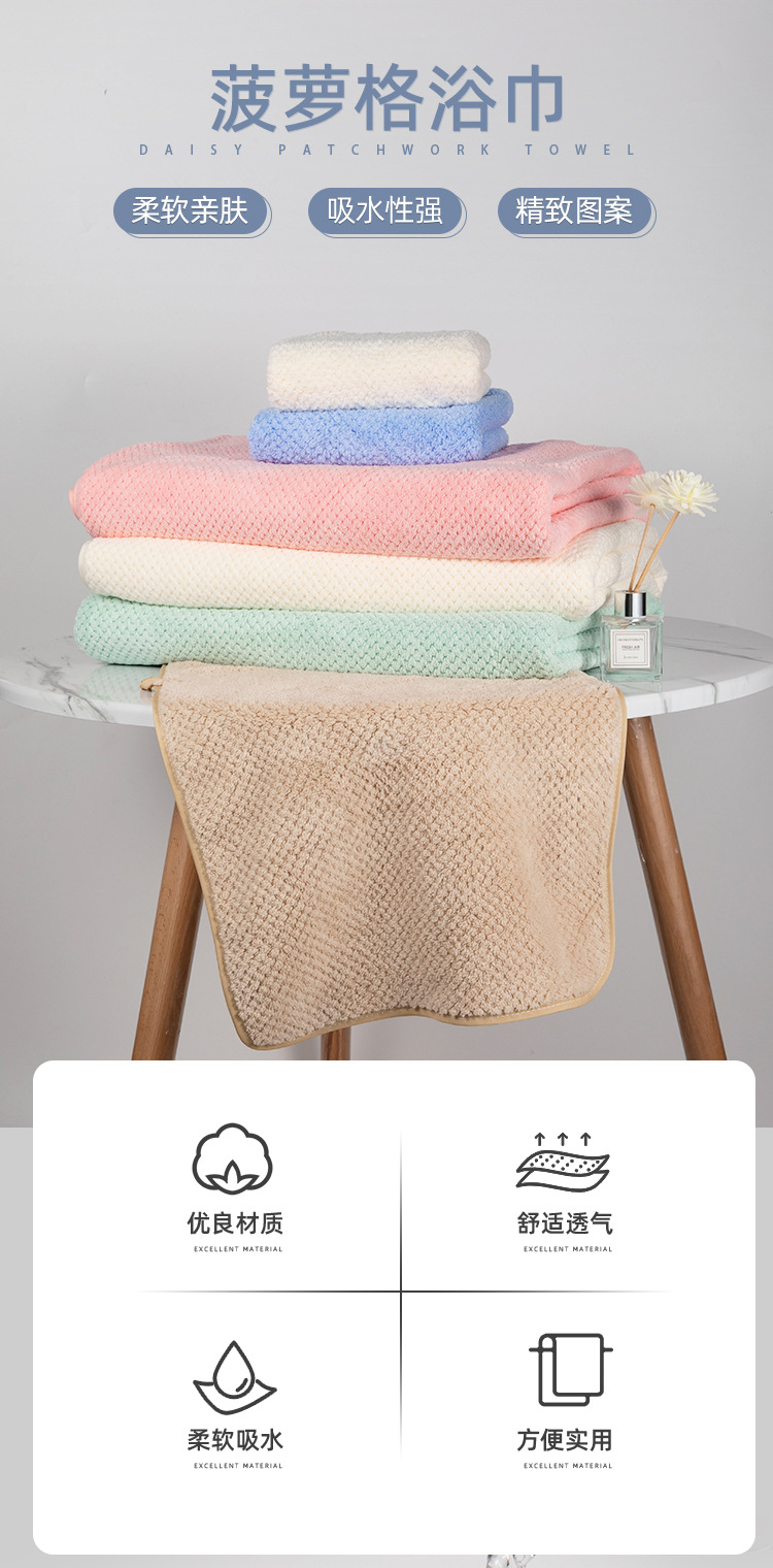 「毛巾+浴巾套装!数色可选」菠萝格浴巾90*170家用加大加厚吸水成人洗澡沙滩巾毛巾套装