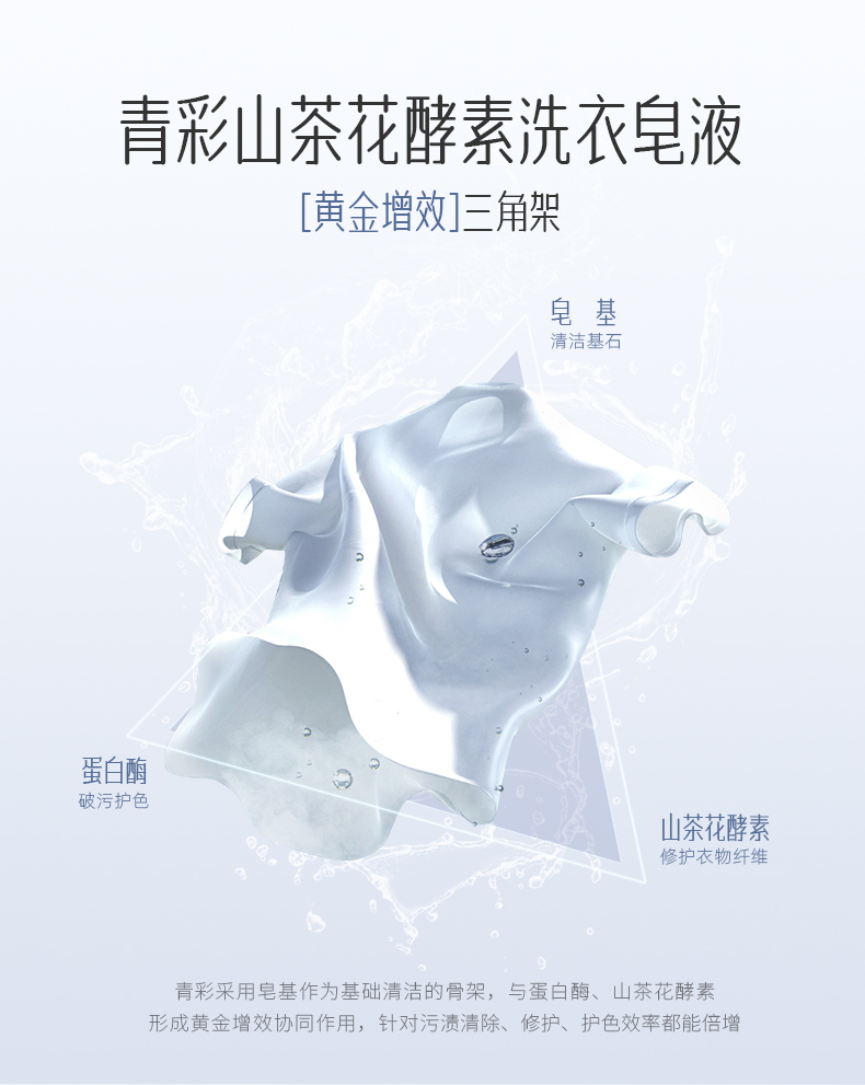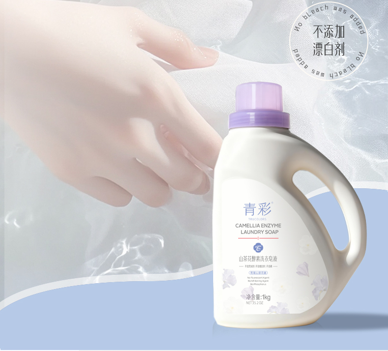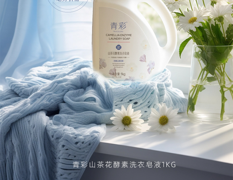 青彩山茶花酵素洗衣皂液 低泡分解油渍去污可洗内衣宝宝衣物 1kg/瓶