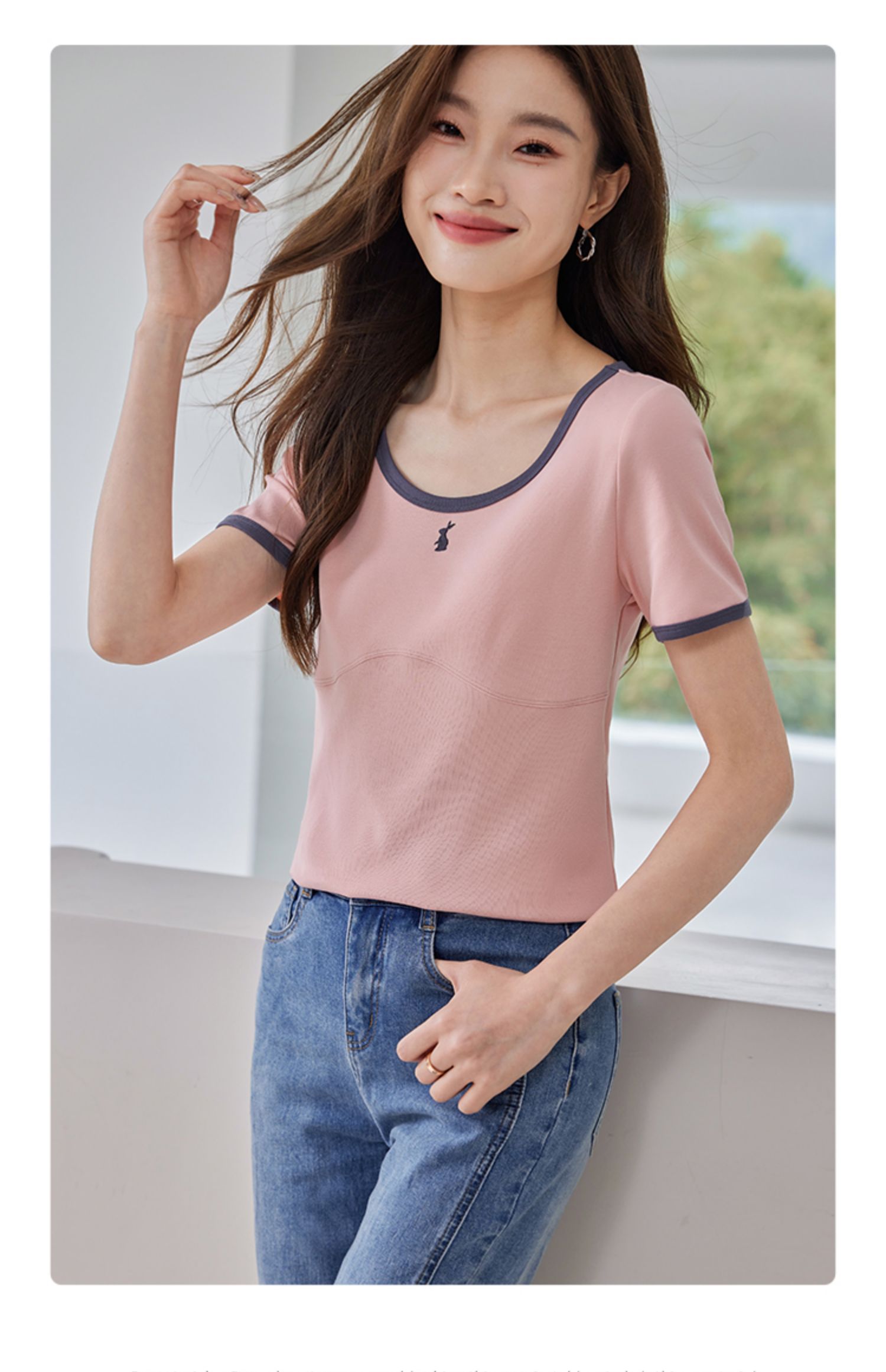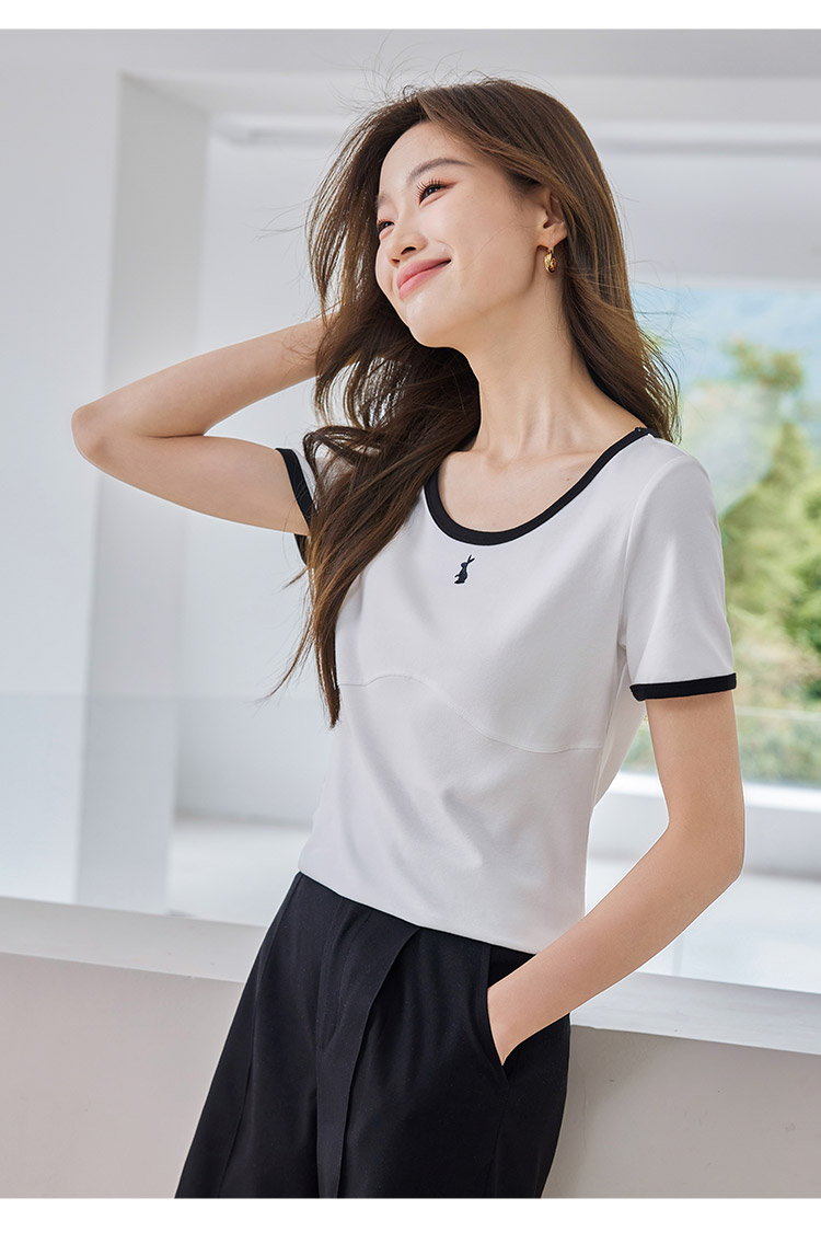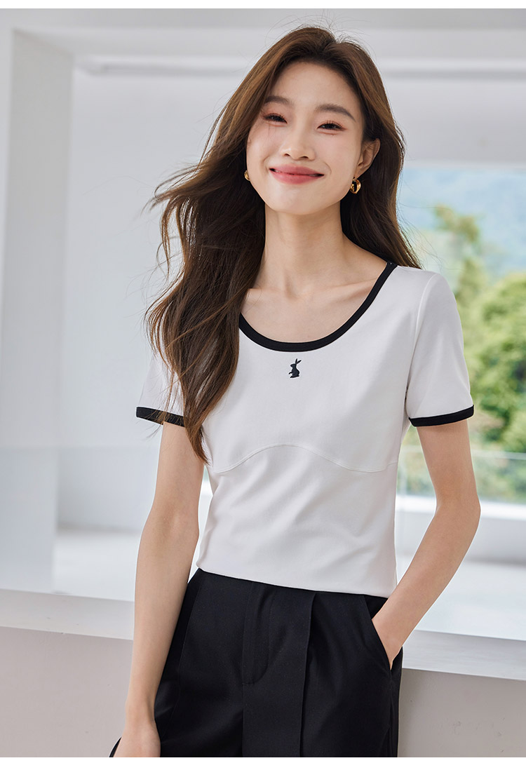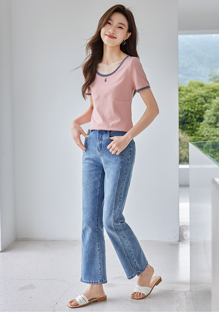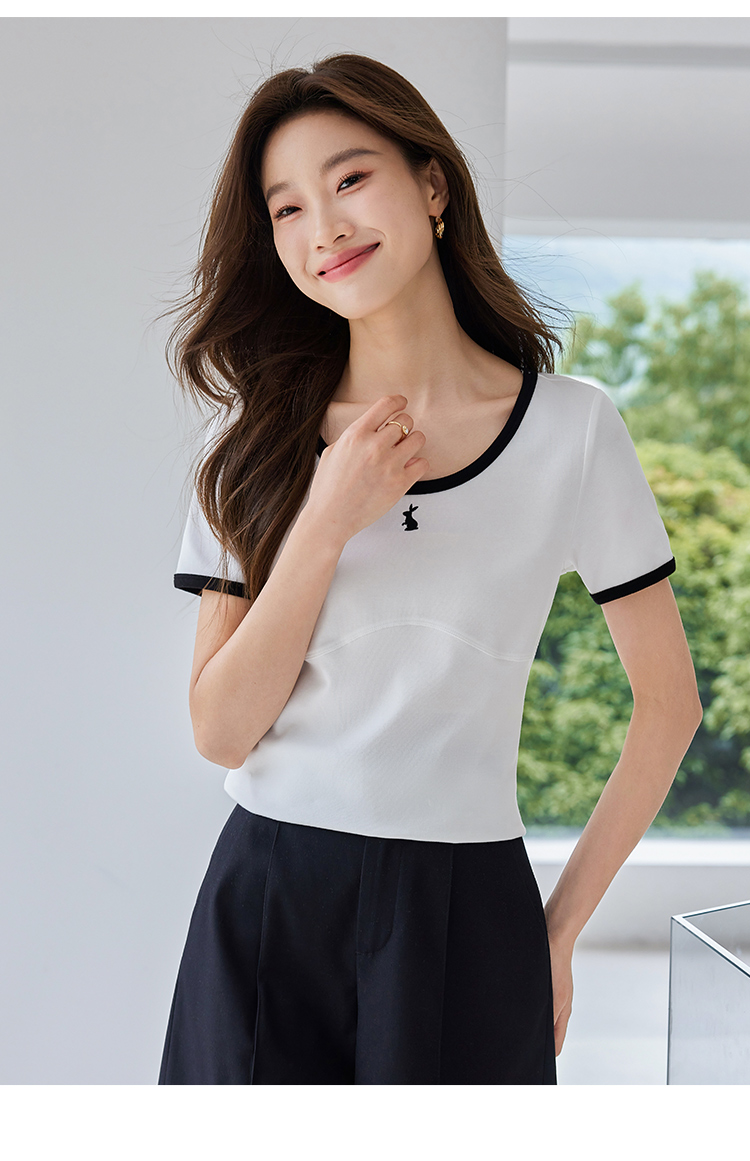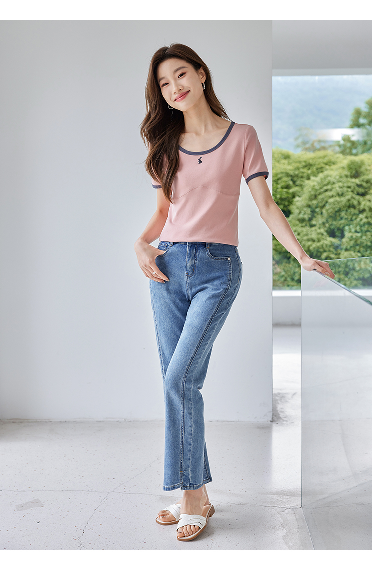 【专属特价】熙世界正肩刺绣短袖t恤夏2025新款宽松设计感小众法式粉色上衣