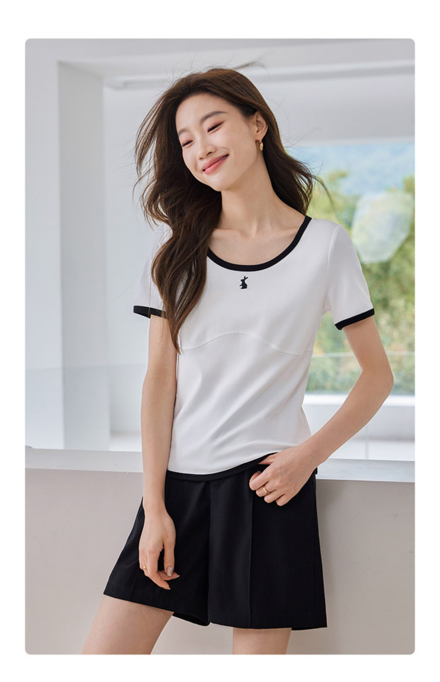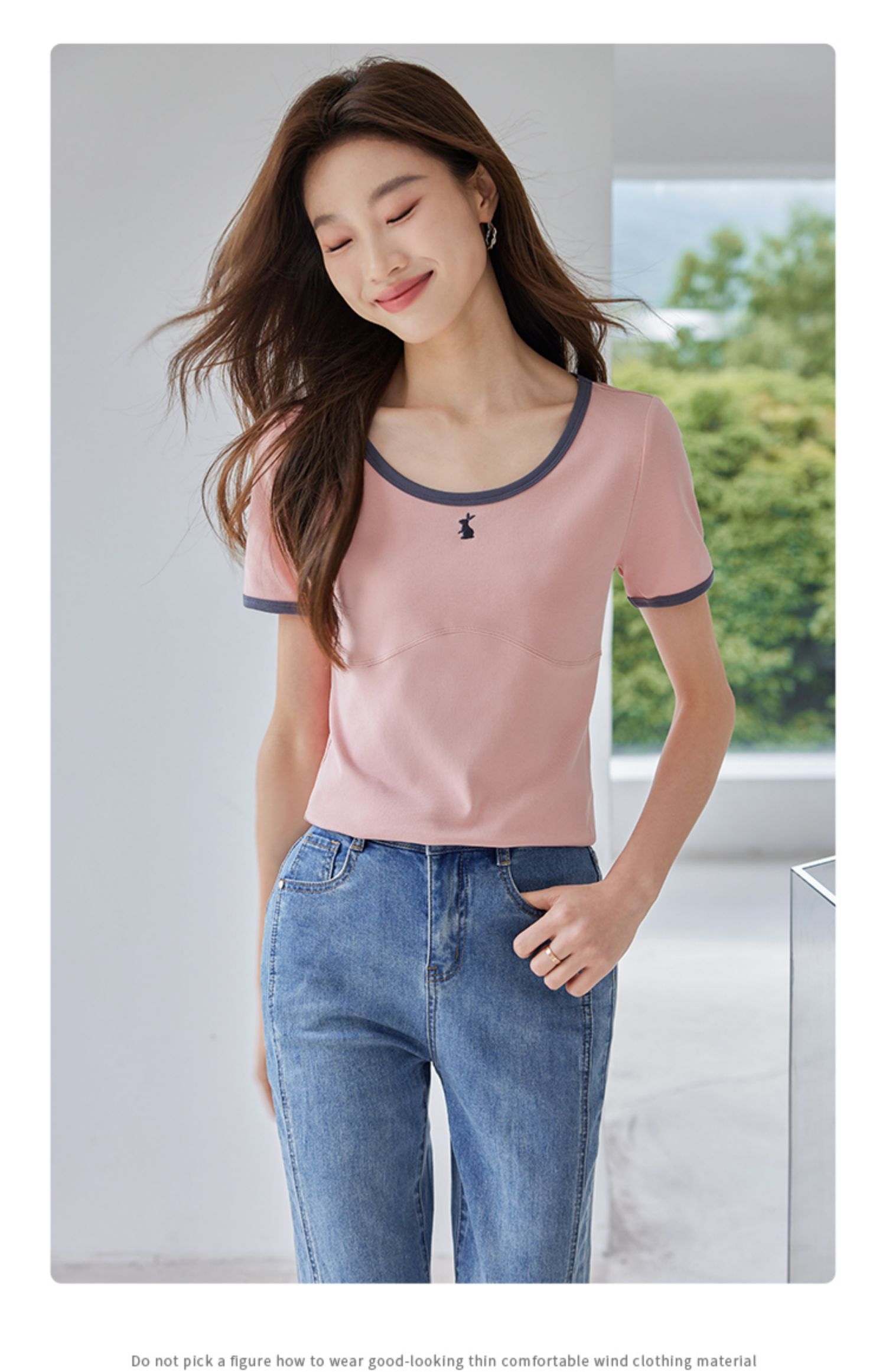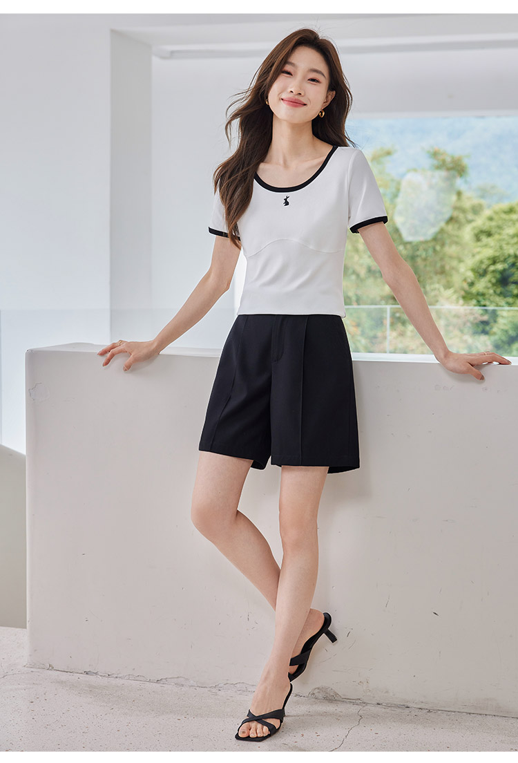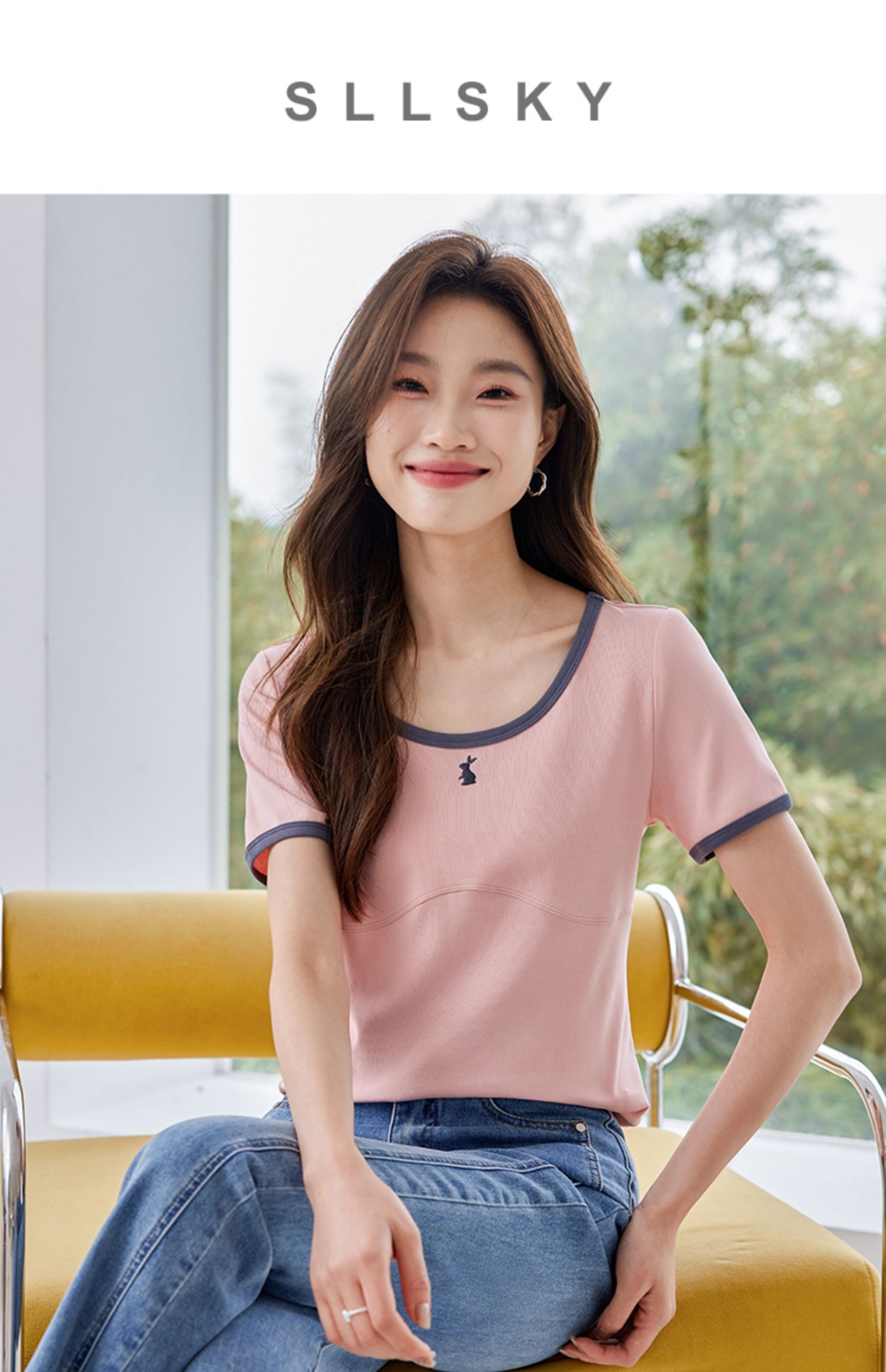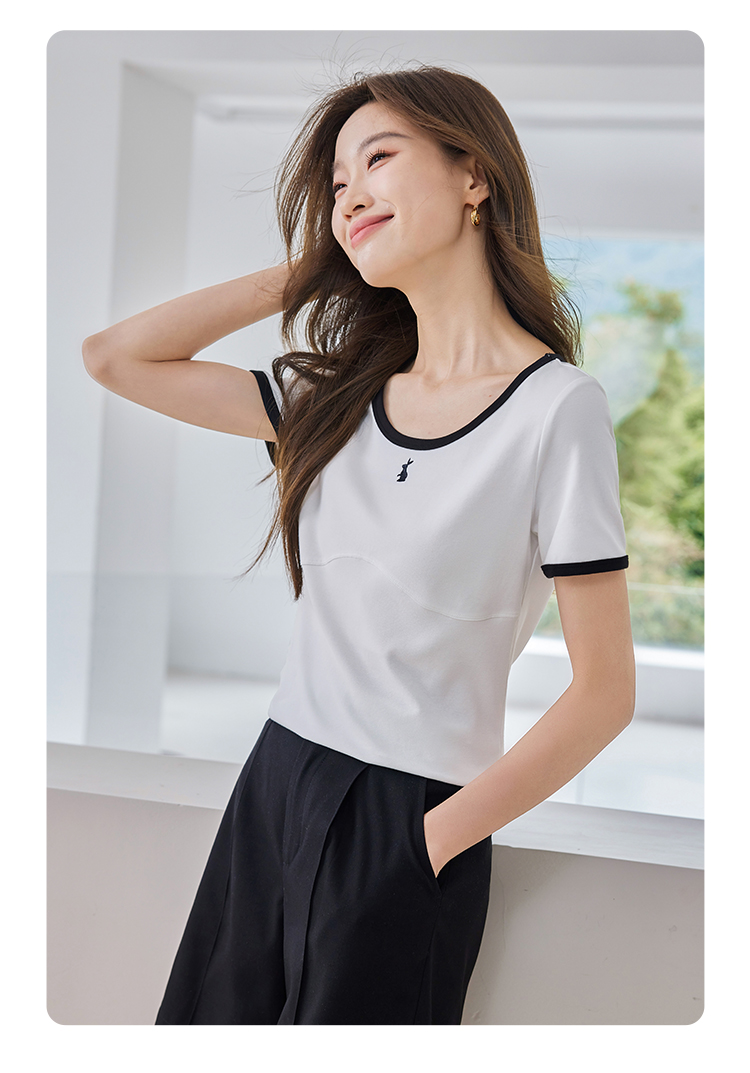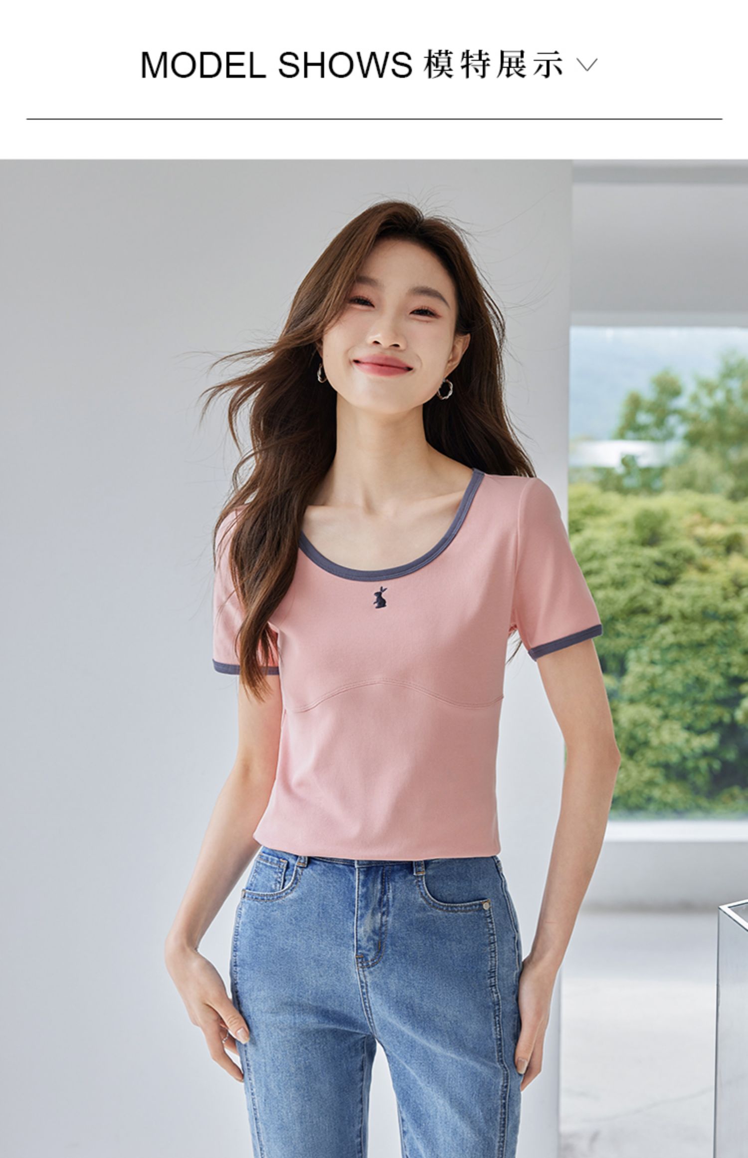 【专属特价】熙世界正肩刺绣短袖t恤夏2025新款宽松设计感小众法式粉色上衣