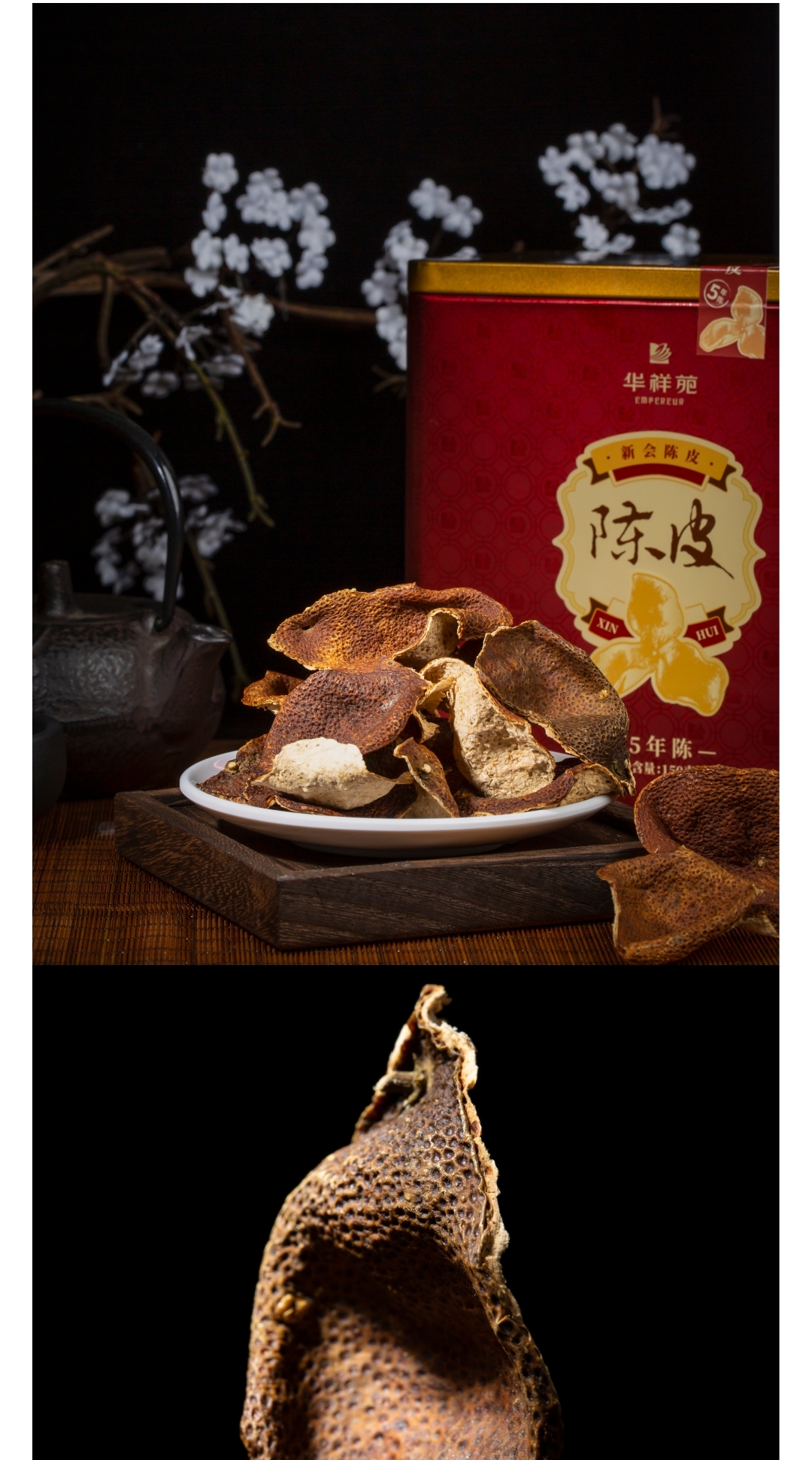 华祥苑 新会五年陈皮茶叶 五年陈皮桔柑茶150g送礼礼盒装